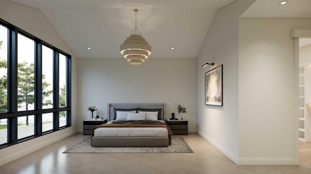 An artisanal masterpiece awaits, steps to Confederation Park, where every detail has been meticulously curated by a builder renowned for impeccable taste. Approaching the home, a large covered front patio welcomes you, setting the tone for a residence that is truly a cut above. Inside, the open~concept main floor is designed for both grand entertaining and everyday living. The front formal dining area features an adjacent wine display and a hidden butler’s pantry, both encased in elegant white oak feature walls, while a tucked away hidden home office seamlessly blends sophistication with functionality. The expansive kitchen with panel ready JennAir appliances blends effortlessly into the living room at the back. Anchored by a striking stone cast gas fireplace hearth and complemented by a discreet powder room and spacious mudroom, this main floor leaves nothing to be desired. Ascending to the upper floor, the master suite impresses with an 18~foot vaulted ceiling and 12~foot double sided stone gas fireplace, offset by a freestanding tub. The ensuite exudes a moody, indulgent vibe with accent lighting, a large steam shower with body jets, and a raindrop shower head. The walk~in closet is the size of a secondary bedroom, filled with natural light from a skylight, lit accent cabinetry and a glass countertop valet stand. Two additional bedrooms, each with tray ceilings, starlights, and backlit crown moulding, also feature their own walk~in closets and ensuites. With a conveniently located (and magazine worthy) laundry room completing this space. The lower level continues the theme of refined living, offering a large living area with projector and screen, a wet bar with island, and an additional versatile home office space with glass wall detailing. A private large fourth bedroom for a family member or guests, includes a massive walk~in closet ideal for additional home storage. Even the mechanical room is a statement piece, finished with diamond checker plate walls and epoxy floors. Throughout the home, thoughtful features abound. The oversized garage is also heated and fully finished with epoxy flooring, and the upper bathrooms are connected to an instant hot water system, All closets are finished in a thermally fused laminate material, complemented again by fully installed air conditioning system, and speaker system throughout. This is a home that marries unparalleled craftsmanship, intelligent design, and luxurious finishes at every turn. From the moment you arrive to the final detail in the basement, this home is a true reflection of bespoke elegance. Est completion May 2026.