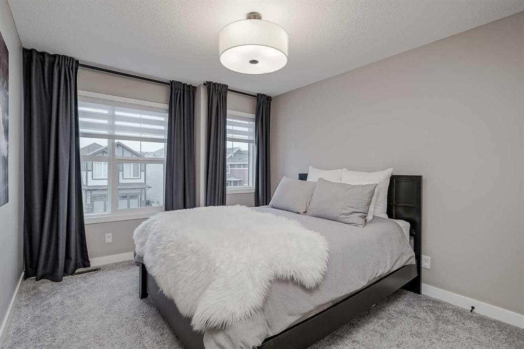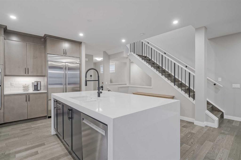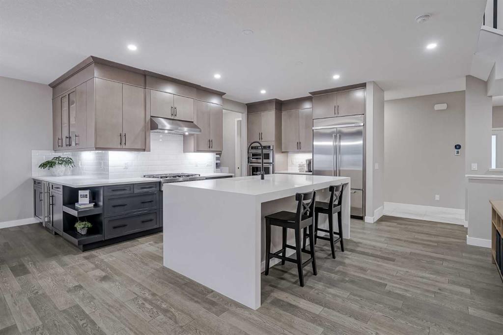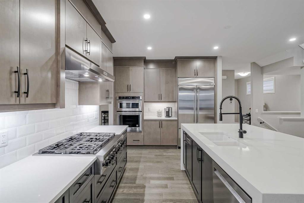 OPEN HOUSE Sunday Dec 7 (12:00-2:00pm). Welcome to this stunning executive home on a quiet street in the highly sought-after community of Mahogany, just a short walk to the lake. Built by Jayman Homes, this property offers 2,662 sq. ft. of impeccably designed above-grade living space and exceptional energy efficiency with six installed solar panels. The main floor impresses with rich hardwood flooring, recessed lighting, and a gourmet kitchen featuring high-end stainless steel appliances, dual ovens, a professional six-burner natural gas cooktop, and a dedicated wine fridge. The kitchen flows seamlessly into the dining area, warmed by a stylish electric fireplace. Upstairs, the layout is ideal for family living and privacy, offering four generously sized bedrooms and a spacious bonus room. This level is enhanced by central air conditioning and upgraded plush carpeting for year-round comfort. Modern mechanical systems include dual high-efficiency furnaces and an HRV system for optimal air quality. Outside, enjoy the beautiful cedar deck overlooking a level lot. The unfinished basement, with its large windows, provides excellent potential for future development. This is a truly turn key, premium property in one of Calgary’s most desirable lake communities. Short drive to the Brookfield Residential YMCA in Seton!
