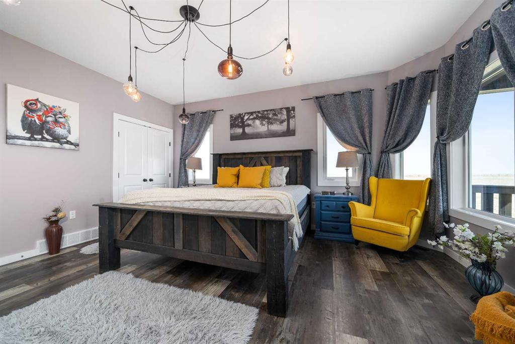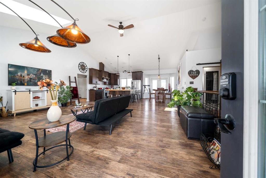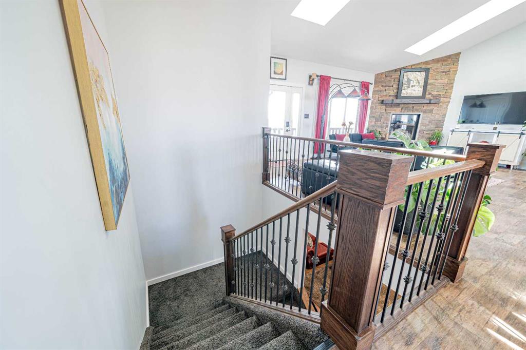 A rare opportunity for private country living just minutes from town! This stunning acreage has been thoughtfully designed with expansive decks that capture breathtaking prairie views to the impressive 1,800 sq ft heated shop. The bright and welcoming main floor boasts vaulted ceilings, skylights, and large windows that flood with natural light. The living room is warm and inviting, with a focus on the beautiful wood-burning fireplace. The open-concept kitchen is a chef’s dream, featuring granite countertops, custom cabinetry, a butcher-block island, and an impressive walk-in pantry. The dining area is ideal for entertaining and offers seamless access to the back deck for indoor-outdoor living. The primary bedroom provides a peaceful retreat with double closets and abundant natural light. A full bathroom with a classic clawfoot tub offers the perfect place to unwind, while a second bedroom, main floor laundry, and a spacious mudroom with outdoor access complete the main level. The fully developed lower level features 9-foot ceilings, in-floor heating, a large family room, three additional bedrooms, a full bathroom, utility/storage space, and a storm shelter/cold room. So much room for the whole family, inside and out. Outside, you’ll find everything you need to enjoy acreage living: a garden area, storage buildings, ample parking, and a cozy firepit space with swing seating. The barn has a walk in cooler, thats insulated, stainless steel sheeted and rails with a temperature controlled refrigeration system. Water for the yard is provided by a well and the house is serviced by a 5500 gallon cisternThe attached heated shop is a standout feature, complete with in-floor heat, 220 power, an 18-ft overhead door, and a 3-piece bathroom. Enjoy peaceful mornings on the covered front deck with sunrise views, and unwind in the evenings on the spacious back deck. This home does not disappoint. With school bus pickup right at the driveway, this property offers quiet country living with unmatched convenience—less than 15 minutes northwest of Redcliff. Contact your local neighbourhood REALTOR® today!