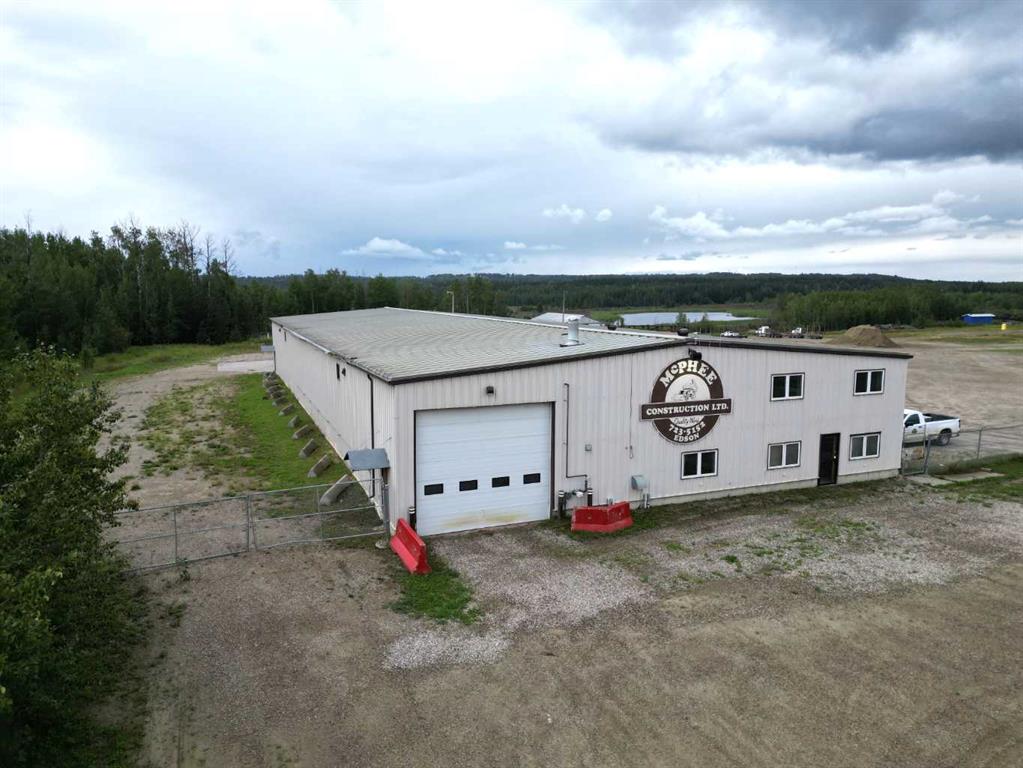 14,000+- sq/ft Commercial/Industrial Building on 26 acres located on the West side of the Town of Edson, 2 klms from Downtown with great exposure bordering Hwy 16 East. The property includes a 12,000 sq foot shop space consisting of 6 - 24x50 BAYS w/ 14ft doors, 16ft ceiling height at the doors and 19 in the center, plus an additional 19x168 drive through back bay. In addition to the shop, there are 4 offices, a front reception area, lunchroom, 3 bathrooms and a large open boardroom area on the 2nd level with a separate office and mezzanine area! This property is securely fenced with plenty of parking, power outlets along the back of the building, used oil containment available, overhead radiant heat and has a 26 acre well packed gravel yard space to accommodate heavy trucks and equipment. This property also houses a 1994 3-bedroom, 2-bathroom mobile home set up to accommodate surveillance for the maintenance, security and safety of the primary establishment.