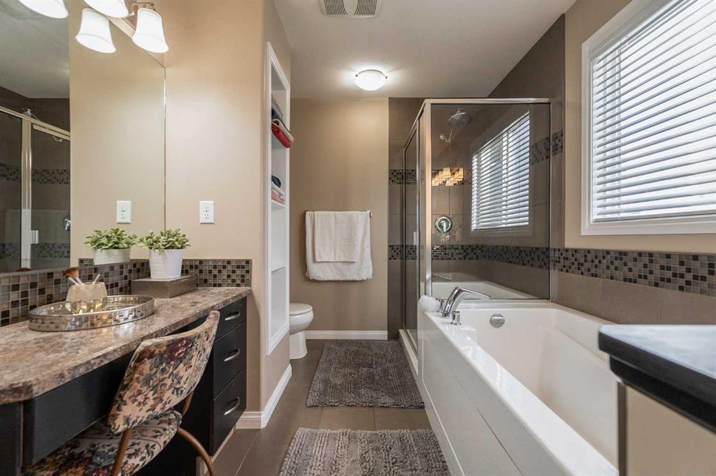 This exceptional 6-bedroom, 3.5-bathroom two-storey in the highly desirable Copperwood neighbourhood of Lethbridge offers over 3,000 sq. ft. of beautifully finished living space on a rare 9,000+ sq. ft. lot! The main floor features soaring 9’ ceilings, hardwood flooring, a cozy gas fireplace, granite countertops, and a dedicated office—perfect for working from home. Upstairs you’ll find FOUR spacious bedrooms, including a private primary suite with ensuite, along with a versatile movie/media room ideal for family nights. The fully finished basement adds two additional bedrooms, a full bathroom, and a large recreation space suitable for a gym, games area, or extended family living. Outside, the property truly shines with a 20’ x 40’ concrete sports pad perfect for basketball and outdoor activities, a 20’ x 20’ detached wired carpenter’s shop that can double as a workshop or man cave, a greenhouse with an automated watering system, storage shed, expansive entertaining deck, and mature trees offering privacy and natural beauty! Ideally located near schools, parks, the YMCA and other nearby amenities, this one-of-a-kind home perfectly blends space, comfort, and functionality for today’s modern family in one of Lethbridge’s most sought-after neighbourhoods!