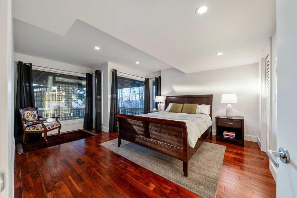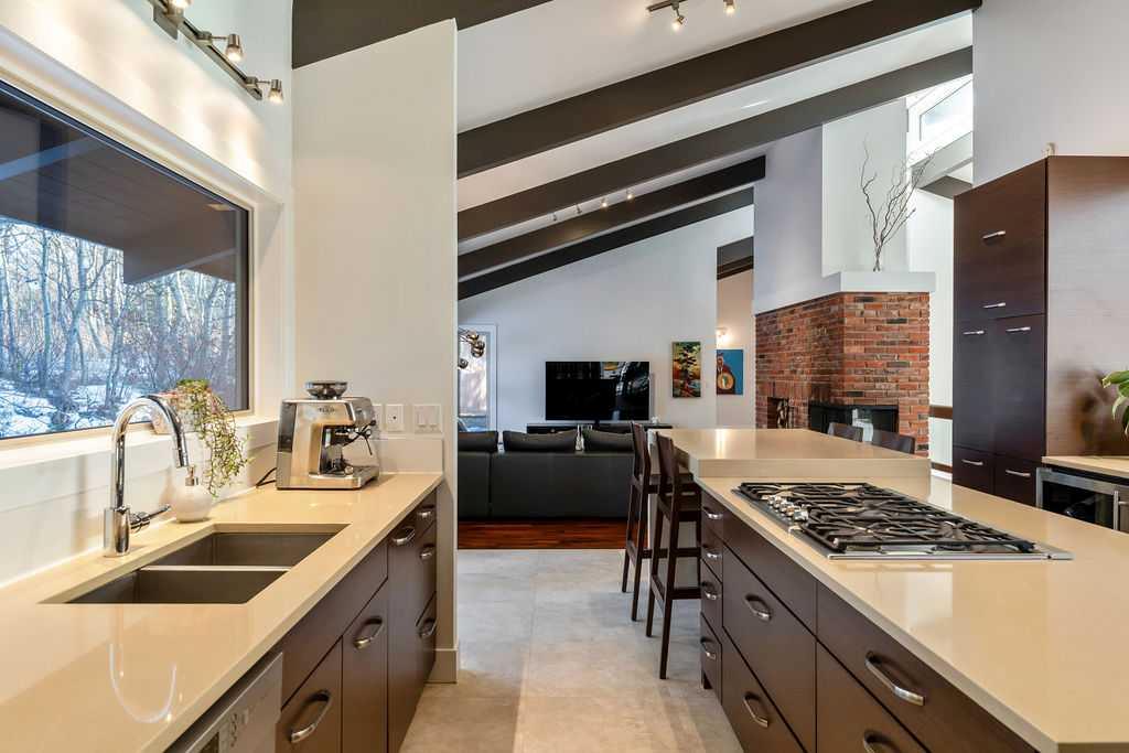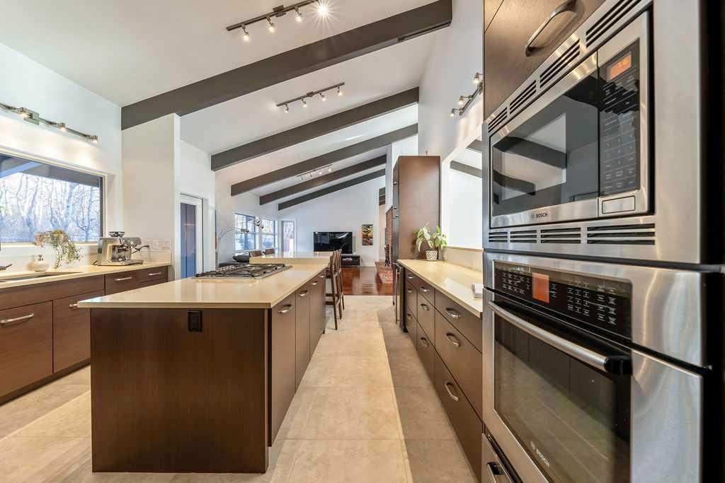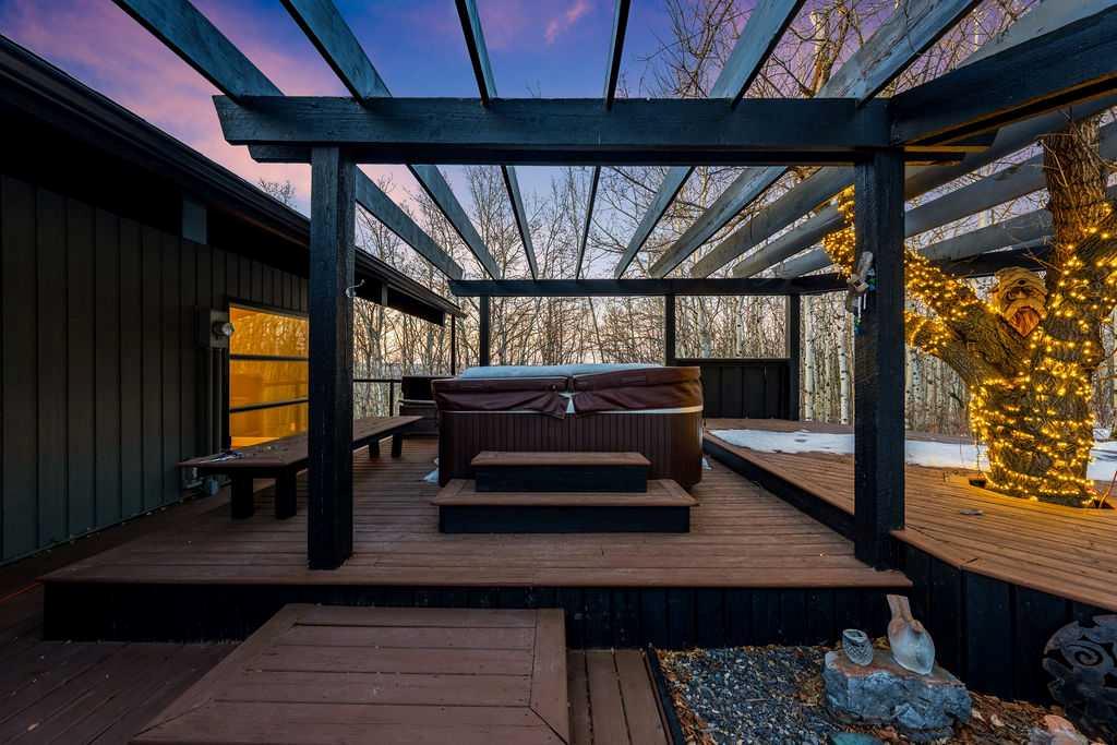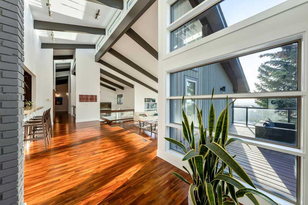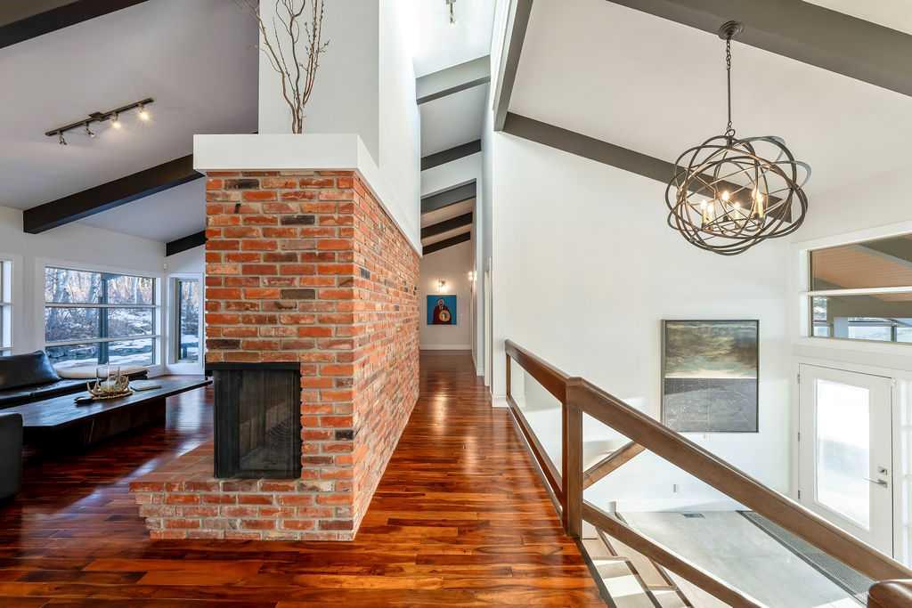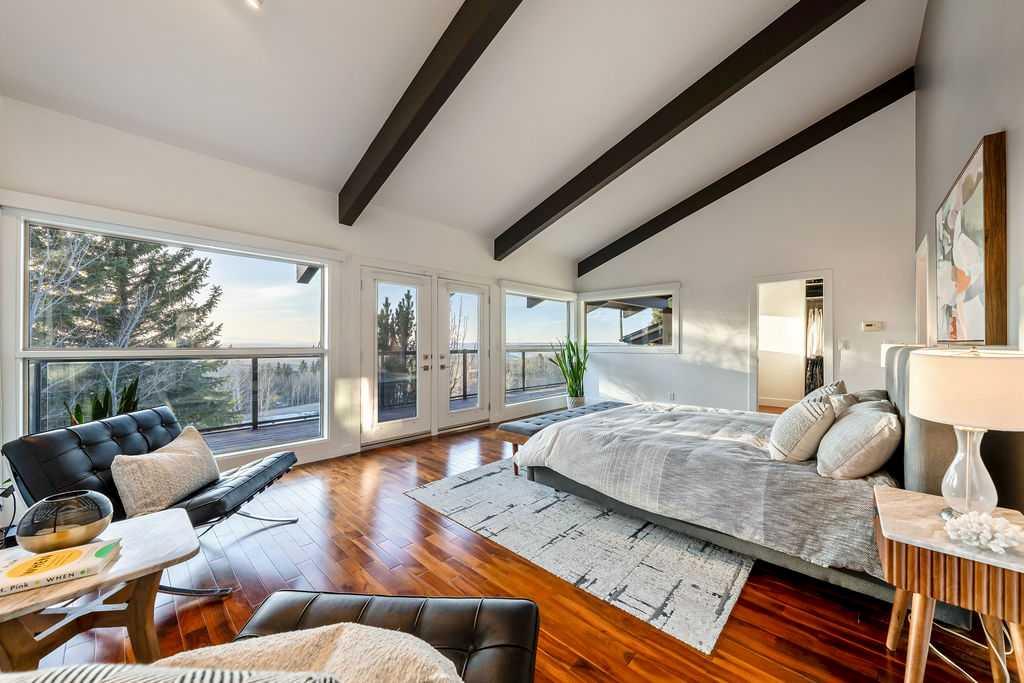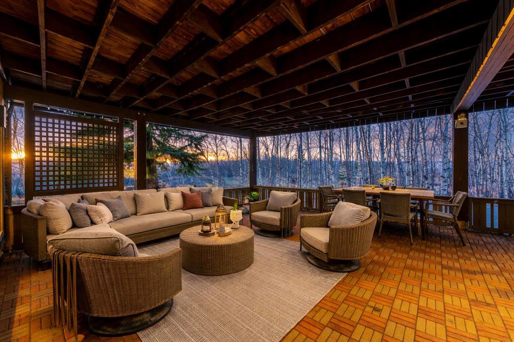 Perched on one of the most picturesque view lots in the area, this remarkable 5,497 total sq ft walkout bungalow home offers a rare opportunity to enjoy country privacy just minutes to Calgary and only 20 minutes to downtown. With quick access to shopping, restaurants & Stoney Trail, you can enjoy modern convenience without compromising the peace & charm of rural living. Built in an era when craftsmanship mattered and thoughtfully renovated over the years, this home beautifully blends timeless character with carefully selected modern updates. Follow the paved driveway to the heated triple car garage & appreciate the abundance of parking. Step inside and take a moment to absorb what surrounds you. From the new tile in the entrance & kitchen to the carefully curated finishes throughout, every detail has been considered. As you make your way to the main level, the views immediately take centre stage. The living room invites you to sit & stay awhile, offering breathtaking Rocky Mountain views, sweeping river valley vistas & unforgettable sunsets. The kitchen is positioned perfectly as the heart of the home, with views in every direction. Featuring Bosch appliances including a gas cooktop and warming drawer, it is a space designed for both everyday living & entertaining. The generous dining area ensures there is plenty of space for good food & good conversation. The family room is anchored by a striking wood burning fireplace that extends from the basement to the ceiling, creating warmth & presence throughout the home. A versatile bedroom on this level is ideal for a child’s room or a private home office. The main floor also offers a beautifully designed laundry room and a well appointed three piece bathroom for guests. The primary suite is exactly what you would hope for. Wake up to incredible views each morning and unwind in a space designed for comfort. The large walk-in closet offers ample storage, while the ensuite features a deep soaker tub, double sinks & a spacious jetted shower. Notice the adorable ladder? Peek into the loft and let your imagination run wild, ideal for study, meditation, or a quiet retreat. The lower level continues to impress. A bright front flex room sits at grade level, adding to the functional living space. Three additional large bedrooms share two full bathrooms, while a generous games room and gym provide flexibility for growing families. With three brand new furnaces, shingles replaced in 2025 & two newer hot water tanks, and many other upgrades, this home is truly move in ready. Outdoor living spaces surround the home with endless possibilities, whether you envision a garden, a hockey rink or a place for a friendly family game of football. The school bus picks up at the end of the driveway, taking kids to the best public and private schools Calgary has to offer. A property like this is rarely offered, combining unforgettable views, thoughtful updates & an unbeatable location close to the city yet a world away.