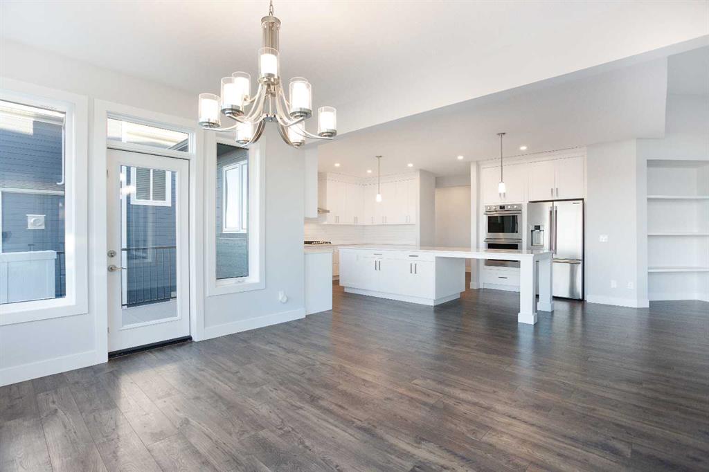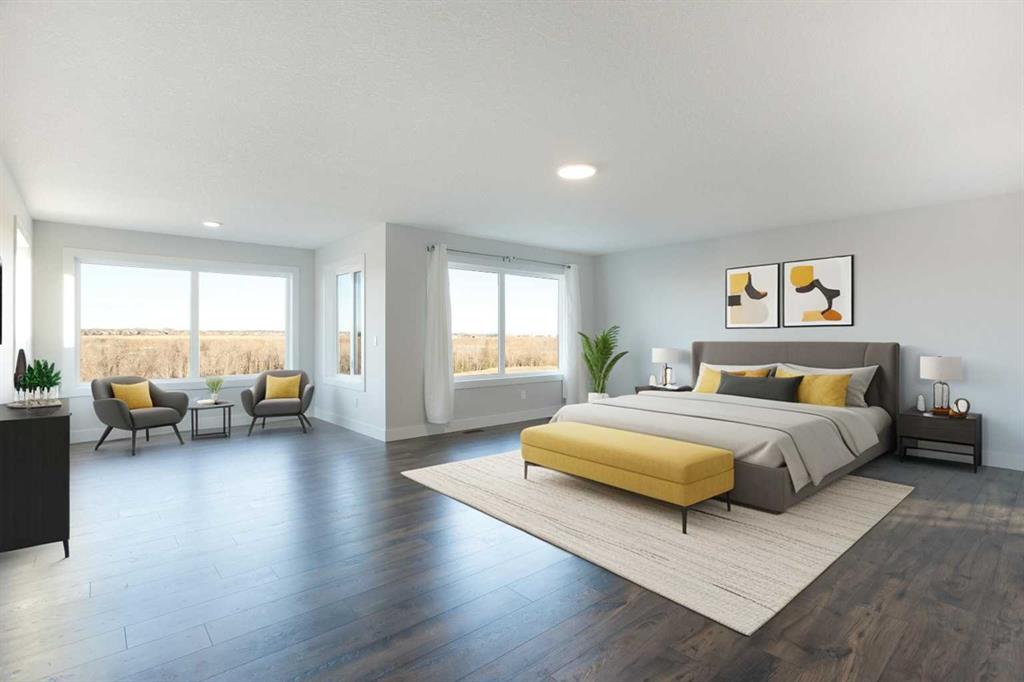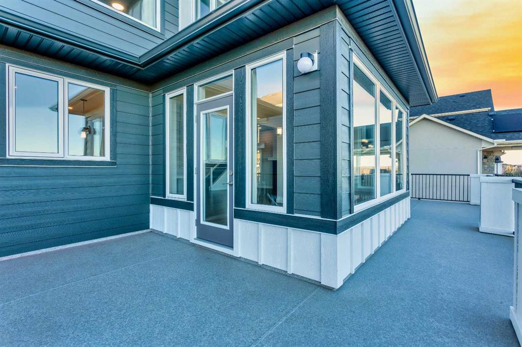 Welcome to 74 Cimarron Estates Drive — a showpiece of craftsmanship and thoughtful design in one of Okotoks’ most prestigious communities with some of the best views in town! Built by Fifth Avenue Homes, this property delivers over 4,600 square feet of beautifully finished living space and stands out for both its quality and versatility. The main level offers an immediate sense of volume and warmth, highlighted by soaring ceilings, massive windows, and a great room centered around a stunning gas fireplace with custom built-ins. The dining area opens to a full-width deck overlooking the backyard, making it perfect for hosting friends or relaxing in the evenings. The kitchen is the heart of this home — anchored by a large quartz island and finished with professional-grade stainless steel appliances, a walk-through butler’s pantry, and plenty of workspace for those who love to cook or entertain. On the main level, you’ll also find a large office and an additional bonus space, providing flexibility for families who need multiple work zones or a main-floor bedroom option. A well-appointed mudroom with direct garage access and a designer powder room complete this level. Upstairs, the primary suite feels like a private retreat, complete with a cozy sitting area, a luxurious five-piece ensuite, and an impressive walk-in closet. Two additional bedrooms, a four-piece bath, and a large laundry room with extra storage make the upper floor as functional as it is elegant. The fully developed walk-out basement extends the living space with a bright recreation area featuring a second fireplace and a wet bar, ideal for movie nights or hosting guests. There’s also a soundproofed fitness or music room, a full bathroom, and additional storage. Recent upgrades add tremendous value, including over $50,000 in exterior concrete work, Gemstone lighting, a tankless water heater, and dual high-efficiency furnaces. The exterior features durable composite siding and 30-year shingles, ensuring long-term peace of mind. Located in Cimarron Estates, this home is surrounded by walking paths, open spaces, and is just minutes from schools, shopping, restaurants, and the Sheep River. With Calgary’s South Health Campus only a short drive away, you’ll enjoy the best of both worlds — small-town charm with city convenience.