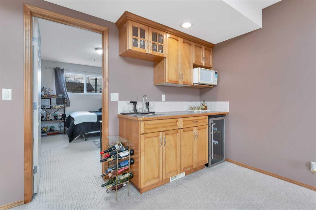 Fantastic walk-out modified bi-level on a quiet close in Fox Run, just steps from schools and walking trails, thoughtfully designed with generous space and flexibility to suit your lifestyle. This great family home offers room to grow with an open floor plan highlighted by a central family room that creates the perfect gathering space for both everyday living and entertaining, along with a functional kitchen featuring a pantry, eating bar, and plenty of quality cabinetry, plus a beautiful deck just off the kitchen ideal for BBQ’ing or relaxing on warm summer evenings. A bright and sunny front office provides an excellent work-from-home option or study space, while two bedrooms complete the main level. The private primary retreat is set on its own level and includes an ensuite and walk-in closet for added comfort and privacy. The fully developed lower level offers a massive family room with great amenities including a wet bar and cozy fireplace, perfect for entertaining or movie nights, along with two additional bedrooms and convenient walk-out access to the large, fenced yard complete with a fire pit, underground sprinklers, and attractive landscaping for enjoyable outdoor living. This bright and sunny home is move-in ready and ready to welcome you.