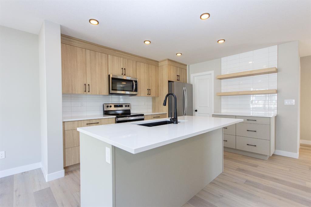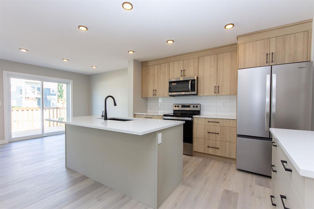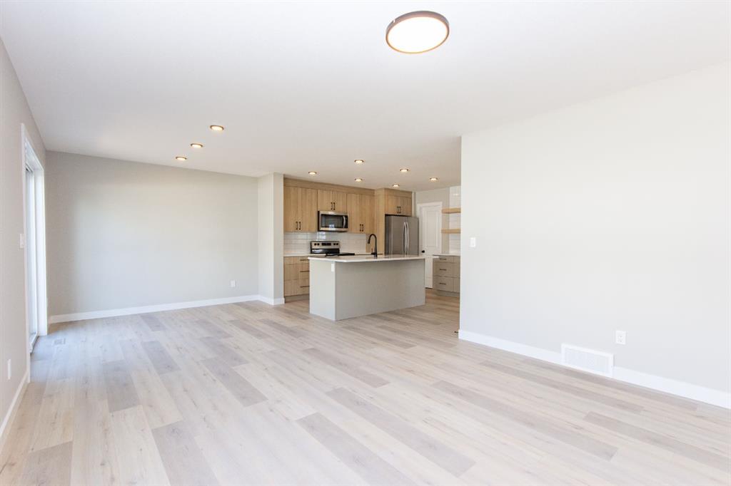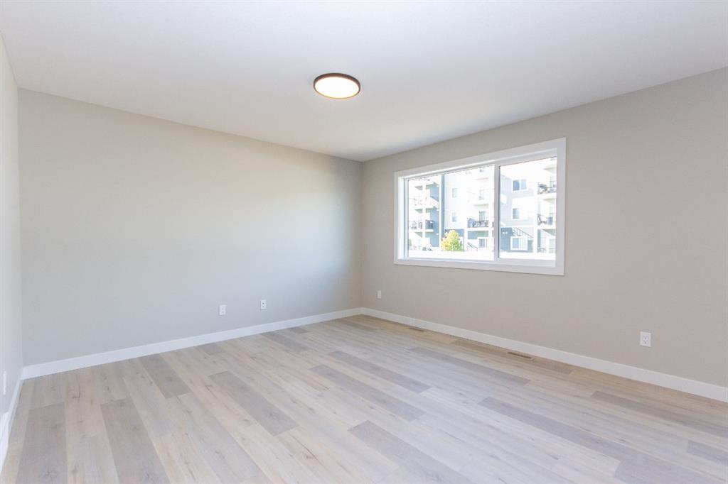 Be the first owner of this brand new Laebon Home situated close to parks, playgrounds, a school, and the numerous amenities of Timberlands and Clearview Market! Offering 1707 square feet, this 2 storey Paxton floorplan offers a wide open main floor layout, an attached double garage, and a large second floor bonus room! The kitchen is well appointed with two tone raised cabinetry, stainless steel appliances, quartz countertops, a large island with eating bar, and a large walk in pantry. The living area is spacious and bright, and the adjacent dining area offers access to the back deck through large sliding patio doors. Upstairs you'll find the spacious master bedroom suite with a large walk-in closet, and your own private 4 pce ensuite. Two kids rooms share a 4 pce bathroom, and you'll appreciate the convenience of upper floor laundry close to all the bedrooms. You'll love ending your day in the huge bonus room, which makes the perfect space for family movie nights or a relaxing space to wind down. The attached garage is insulated, drywalled, and taped. If you need more space, the builder can complete the basement development for you, and allowances can also be provided for blinds, and a washer and dryer to make this a completely move in ready package. 1 year builder warranty and 10 year Alberta New Home Warranty are included. Taxes have yet to be assessed. Immediate possession available!