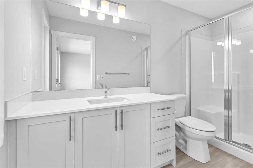 Welcome to this beautiful brand-new property in Okotoks. This house is situated in a new quite community, family-friendly neighborhood. A short walk to D’Arcy Ranch Golf Club, and shopping like Safeway, shoppers Drug Mart, Starbucks, Dollarama, Pet value and more. As soon as you step in to this property you will be greeted by nice foyer and coat closet. The main floor offers open layout, great kitchen with stainless steel appliances, Quartz countertops, good size kitchen island, upgraded cabinets with soft closing and under-cabinet lighting. The kitchen also comes with a generous size pantry with wired shelving. As you walk away to the back of the house, you will have access to a two-piece bathroom, a built-bench and a back door that leads you to a good size deck with railing, BBQ gas line to enjoy the summer days on your backyard. As you walk to the second floor you will find three bedrooms, tow and half bathrooms, stackable washer and dryer and a linen closet. Every bedroom comes with walk-in closet. This property also has a side entrance that leads to the basement. The basement has a great layout that offers excellent opportunity for development. 9’ foundation walls and two windows and all mechanicals are in one corner. This is an incredible opportunity in Okotoks. Book you showing through showing time.