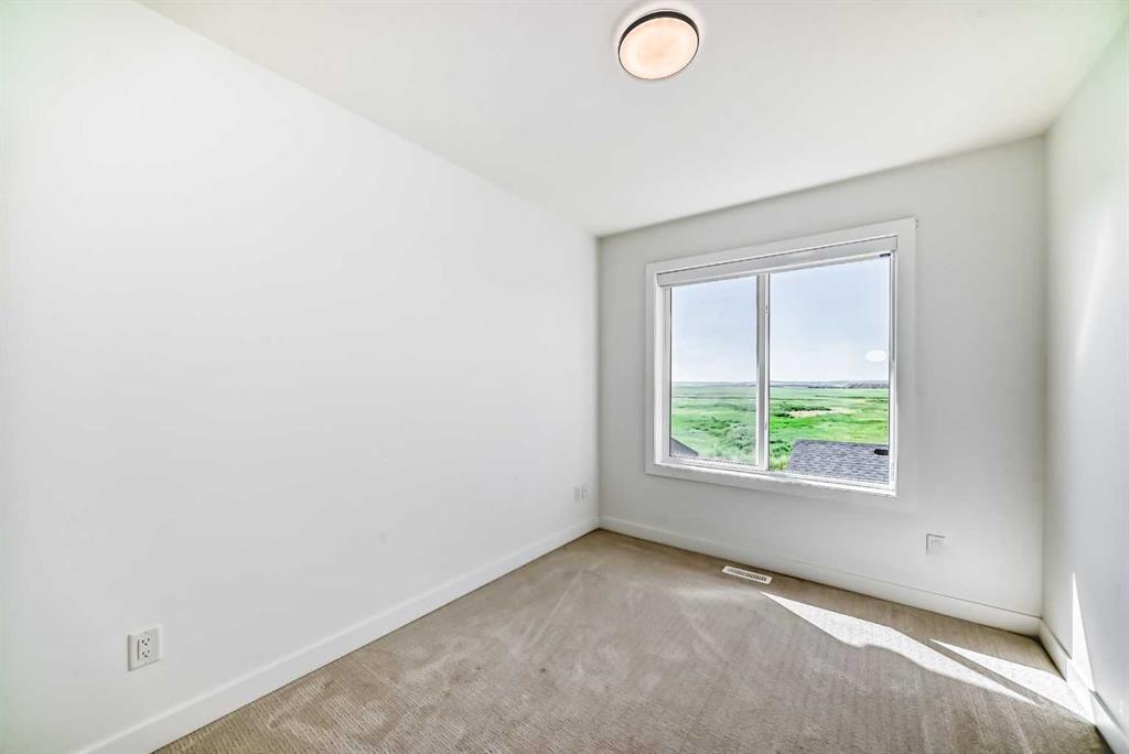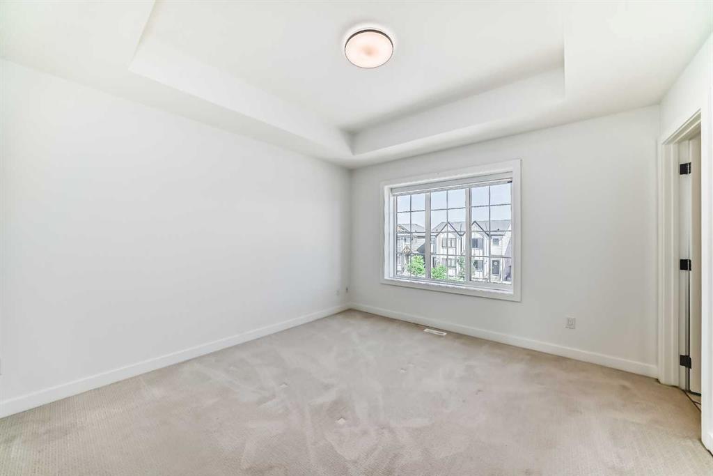 END UNIT | NO CONDO FEES | DOUBLE GARAGE! Stunning TRUMAN-built 3 bed, 2.5 bath townhouse in the vibrant SE community of Rangeview. This end unit offers an open-concept main floor with a bright chef’s kitchen featuring full-height cabinetry, quartz countertops, stainless steel appliances (gas range), pantry, and a large island—perfect for entertaining. Upstairs includes a spacious primary suite with walk-in closet and 4-piece ensuite, plus two additional bedrooms, full bath, and dedicated laundry closet with washer and dryer providing ample space for families and guests. The unfinished basement presents endless potential for customization— recreation space, or extra storage! Enjoy a double garage, side entrance, and modern finishes throughout. Situated just steps from Rangeview’s playgrounds and greenspaces, and within minutes of the South Health Campus, Seton YMCA, schools, churches, and shopping in Seton and Mahogany. With quick access to both Stoney Trail and Deerfoot Trail, commuting is easy. Modern living meets everyday convenience—book your showing today!