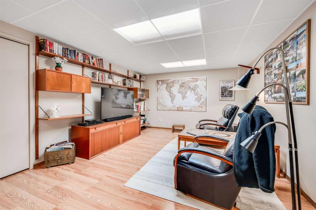 Welcome to this pristine, expansive bungalow situated on a massive corner lot in the heart of Kingsland. With over 1,200 sq. ft. above grade, this meticulously maintained home offers a rare footprint that blends original character with modern convenience. The main floor features gleaming original hardwood floors that flow through a spacious formal living room and distinct formal dining room—perfect for entertaining. The bright, refreshed kitchen opens to a sunny eating nook overlooking the west-facing backyard. Two generous bedrooms and an updated 4-piece bathroom, featuring a new Bath Fitter tub and shower, complete this level. The fully finished lower level (962 sq. ft.) is designed as a private retreat and has insulated flooring, as well as double-insulated perimeter walls. It hosts the primary bedroom, complete with a new egress window, dual closets, and a private 3-piece ensuite. This level also features a dedicated home office—ideal for remote work—and an easily accessible crawl space for abundant seasonal storage. Step outside to your own private oasis. The fully fenced west backyard is a gardener’s dream, featuring lush, mature trees and a stunning interlocking brick patio with an awning for hot summer days. The oversized (24’x24’) double detached garage is a mechanic’s dream, offering ample workspace, while the paved driveway accommodates 4 vehicles or RV parking. Located directly across from the newly developed community green space (the former Kingsland School site), this home offers rare openness and views. Kingsland is the ultimate “15-Minute Neighbourhood,” providing immediate access to Macleod Trail, Elbow Drive, and Glenmore Trail. You are walking distance to Chinook Centre and the Heritage LRT station. Top-tier schools, including St. Augustine (Fine Arts), Chinook Park (French Immersion), and Henry Wise Wood High School, are all nearby. Enjoy the active Community Association’s outdoor hockey rink, hall, and summer food truck events right at your doorstep.