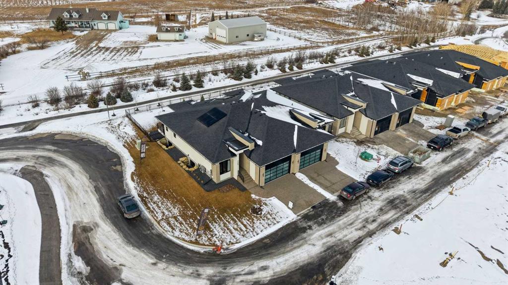 OPEN HOUSE SATURDAY, APRIL 25TH & SUNDAY, APRIL 26TH FROM NOON - 5 PM BOTH DAYS. Nestled in the heart of Serenity at Heritage Pointe and backing onto a beautifully landscaped greenspace, this luxurious 3 bedroom, 2.5 bath villa with the Sawyer floorplan has been carefully crafted by RareBuilt Homes & offers over 3200 sq ft of exceptional living space. The open concept main floor impresses with engineered wide plank hardwood, custom tile detailing, 10’ ceilings, and a spacious great room with large sliding doors that open to a covered rear deck and private fenced yard. The chef inspired kitchen is equipped with a full KitchenAid appliance package, including a six burner gas cooktop, custom hood fan, refrigerator/freezer, dishwasher, and built in oven with convection microwave. A generous island, ample storage, and thoughtful layout make this kitchen ideal for both everyday living and entertaining. A stylish home office with beam detailing adds both character and functionality. The primary suite provides a serene retreat, complete with a spa inspired 5 piece ensuite featuring heated floors, a freestanding soaker tub, an oversized shower, and a custom walk in closet. The fully finished basement extends the living space with a large recreation room, two additional bedrooms, a full bath, roughed-in theatre room and a large, finished storage room. Additional highlights include a 3 stop elevator, tilt and turn triple glazed windows, 6 standard solar panels, a high efficiency furnace, heat pump, air conditioning, and radiant in floor heating—ensuring year round comfort and energy efficiency. Outside, enjoy a covered composite rear deck with custom aluminum railing plus a fully landscaped & irrigated yard including ornamental fencing and gate in the rear yard providing access to 2 km of local pathways. Parking is effortless with a fully finished and painted oversized double attached garage complete with epoxy flooring, aggregate driveway and EV charger readiness. Enjoy the freedom of full landscape maintenance and snow removal plus close proximity to Heritage Pointe Golf Club, LaunchPad Golf at Heritage Pointe & easy access to Calgary or Okotoks via highway 2 or 2A.