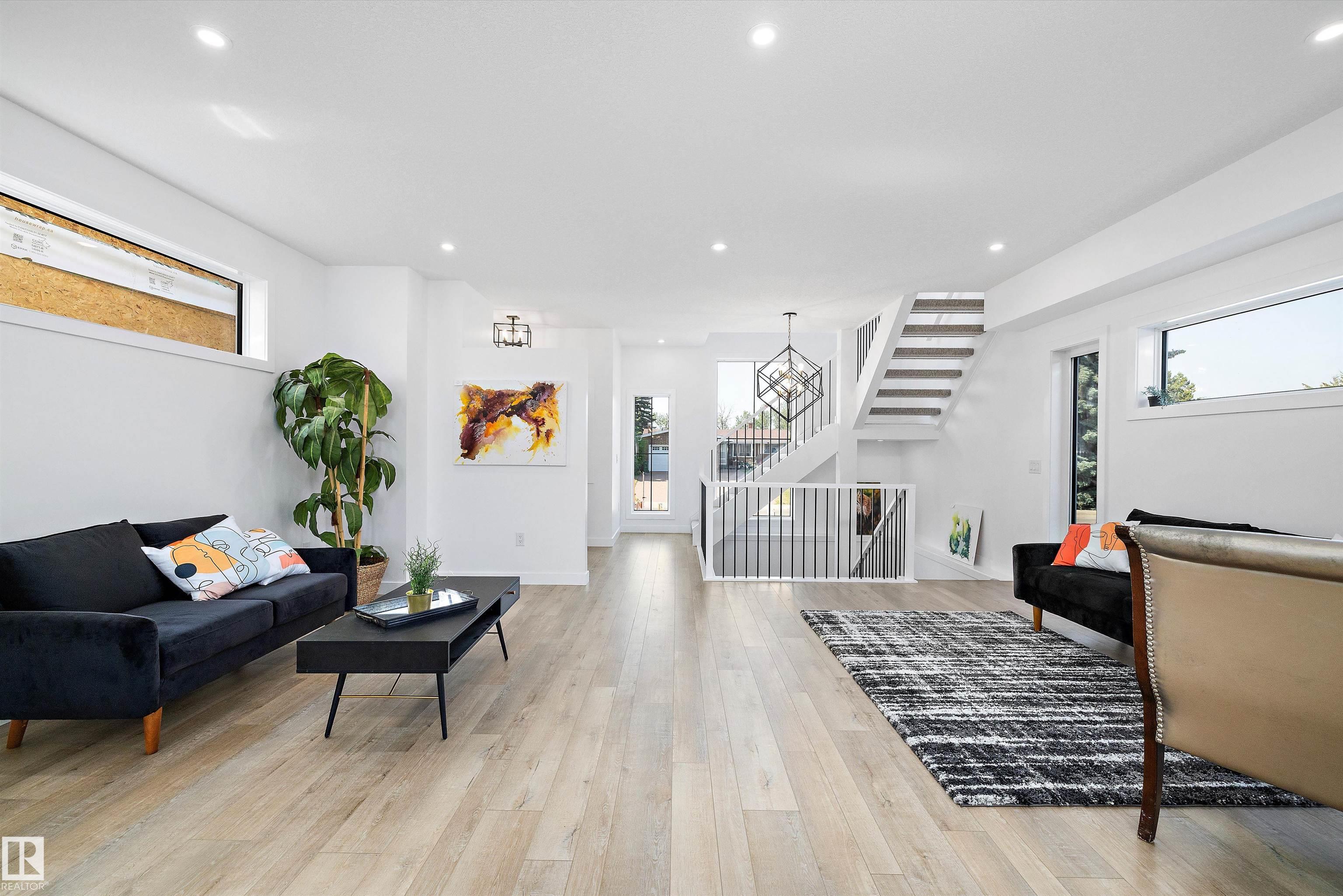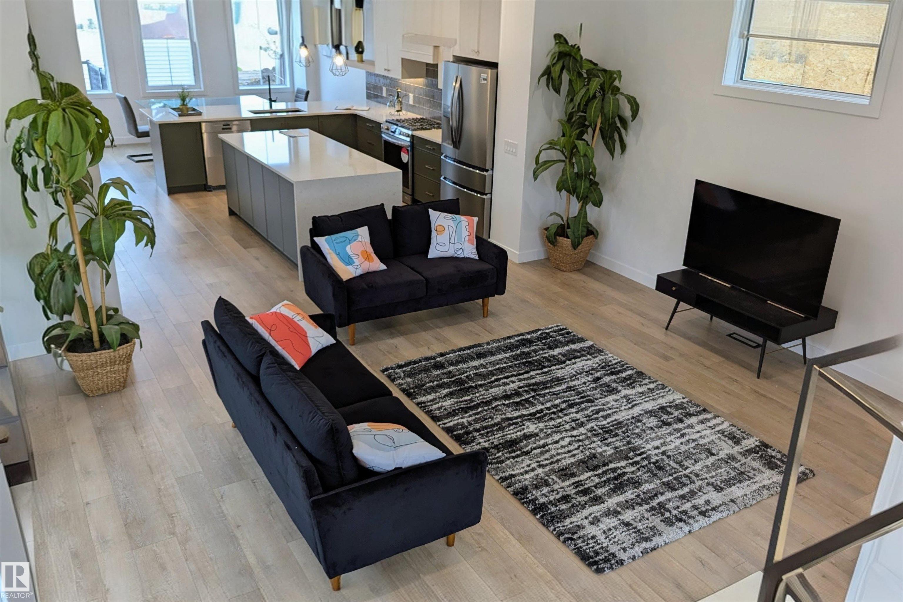 PRICED PERFECTLY. This is one of Edmonton's finest locations in the best part of Forest heights. With 5 beds, 5 baths, and nearly 3,281 sq ft of finished living space, including a FULLY FINISHED BASEMENT. Enjoy downtown views from your ROOFTOP PATIO and immediate access to scenic walking trails right outside your door. With PREMIUM FINISHES throughout, The chef’s kitchen boasts a large island, gas range, stainless steel appliances, and a walk-in pantry, flowing seamlessly into the spacious living room. Up a floor, the primary suite features a spa-inspired ensuite and walk-in closet, along with two additional bedrooms. The showstopping third floor offers a private entertainment space with wet bar and bathroom. The basement adds two more bedrooms, a full bath, and a generous bonus room. There is also an oversized double garage, rear patio and 843 square foot yard! Home is certified green built and under Alberta New Home Warranty. A/C included.