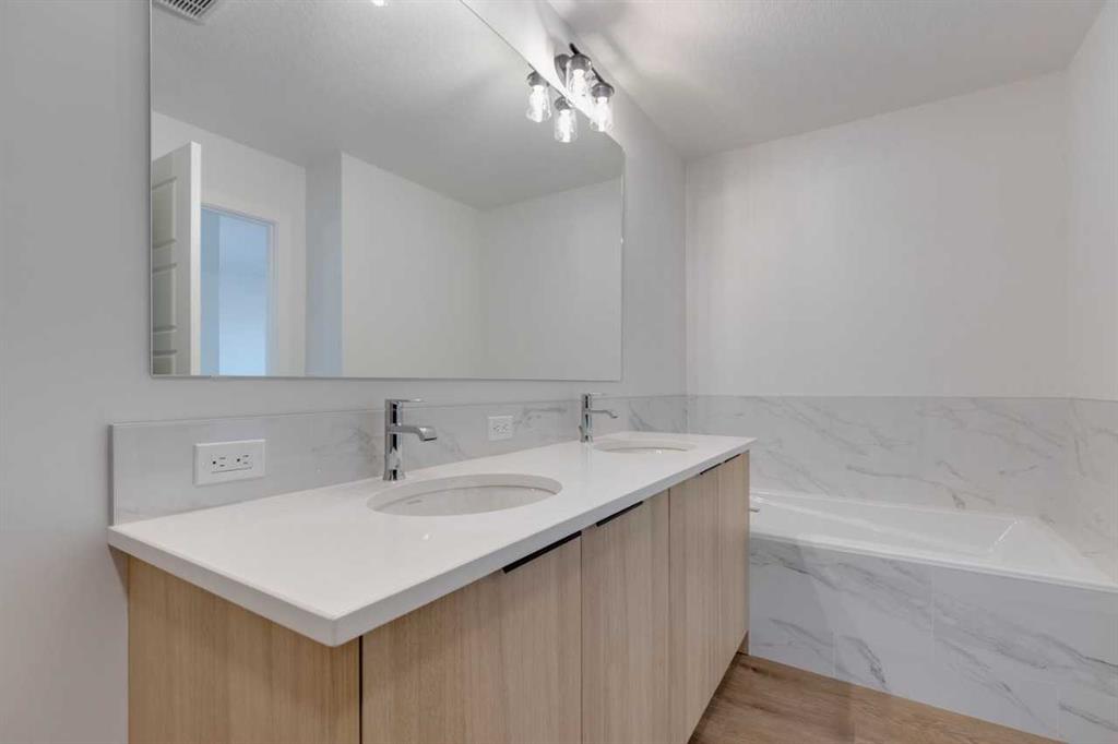 Built by a trusted builder with over 70 years of experience, this duplex showcases on-trend, designer-curated interior selections tailored to feel personalized to you. With energy-efficient and smart home features, plus moving concierge services included, this home makes everyday living effortless. Enjoy the convenience of a side entrance and a main floor bedroom with a full bath and soaker tub. The kitchen is designed for both function and style with stainless steel appliances, chimney hood fan with built-in microwave, tile backsplash, and a walk-in pantry. For added entertaining space, step onto the rear wood deck with BBQ gas line rough-in. The main living area offers a 9' ceiling that creates a bright and open atmosphere, while upstairs a vaulted ceiling in the bonus room adds extra charm. The spacious 5-piece ensuite includes dual vanities, undermount sinks, a soaker tub, and a walk-in shower. Extra windows throughout ensure the home is filled with natural light. This energy-efficient duplex is Built Green certified, featuring triple-pane windows, a high-efficiency furnace, and a solar chase for a solar-ready setup. With blower door testing, buyers may be eligible for up to 25% mortgage insurance savings, and an electric car charger rough-in is included for future-ready convenience. Equipped with a full range of smart home technology, the duplex includes a programmable thermostat, Ring camera doorbell, smart front door lock, and motion-activated switches — all seamlessly controlled via an Amazon Alexa touchscreen hub. Photos are representative.