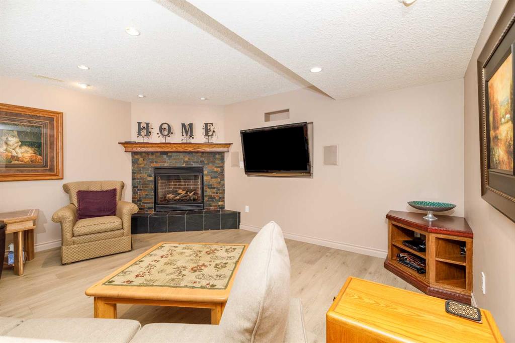 Prepared to be blown away by this absolutely stunning bi-level; everything has been upgraded to beyond the 10's. Bright open floor plan. Spacious kitchen redone with gorgeous white cabinets & quartz counter top in kitchen as well as all bathrooms. New fridge in 2024. Master ensuite has a tub plus a large shower. The laundry area is also on the main floor. New washer & dryer in 2024. Electric fireplace in living room new in 2025. New sinks throughout. New metal railing upstairs. Basement is professionally developed with 2 bedrooms, cozy family room with a corner gas fireplace, corner office & full bathroom. Vinyl plank flooring in basement. Can you believe all new triple pane windows in 2021?? Nothing left to do! Spacious front garage with lots of permanent shelving & epoxy floor. Professionally landscaped & underground sprinklers. New deck boards & aluminum railing. Paving stone walkway & patio. Waterfall feature in back yard. Decorator stone in all flower beds. This is a truly one-of-a-kind home in a great location. If you've been waiting for something special, this is your moment!