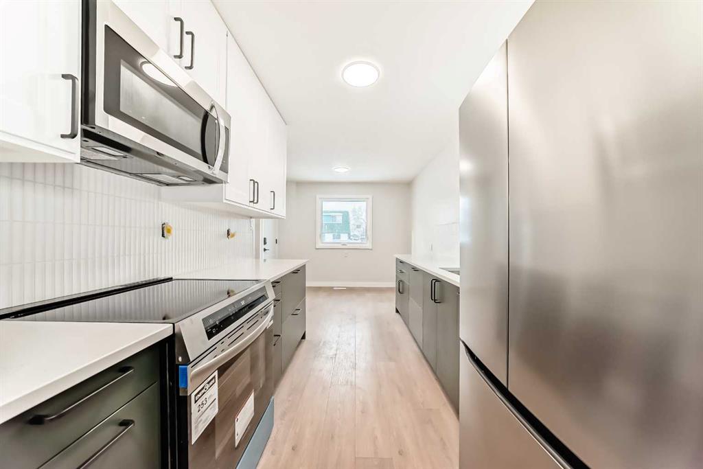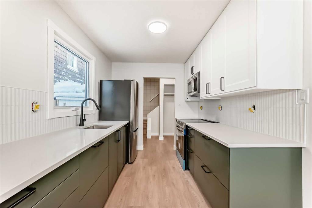 Renovations just completed! This home features a galley style kitchen with BRAND NEW quartz counter tops, Frigidaire Induction stove, side by side fridge, microwave/hood fan, tiled back splash and two -toned cabinets with soft close drawers. Spacious living room, cosy dining area with view of the yard. The main floor is completed with a half bathroom and a convenient side entrance. Upstairs features 3 good sized bedrooms, a full bath and a linen closet. The basement is fully finished with a rec room, laundry room and plenty of storage. Other features you will love about this property are the vinyl flooring throughout, new windows, knock down ceiling, new baseboards, new landscaping. To be noted as well, this property has a 2 stage furnace and new water heater, Storage shed right outside for easy access and fresh new paint throughout. This home is a gem! The Location is close to Glenmore Trail and easy access to Deer Foot Trail. This home is nestled on a quiet street and close to shopping, transit and Parks. This community is an up and coming hot spot so don't miss this opportunity!