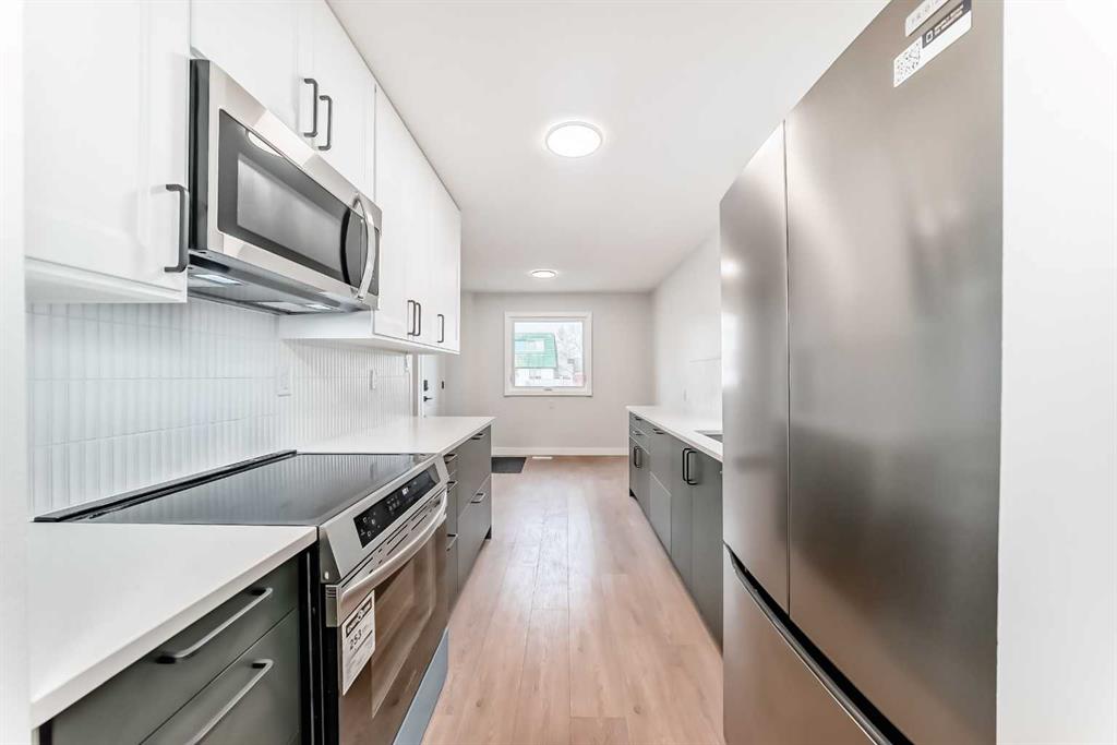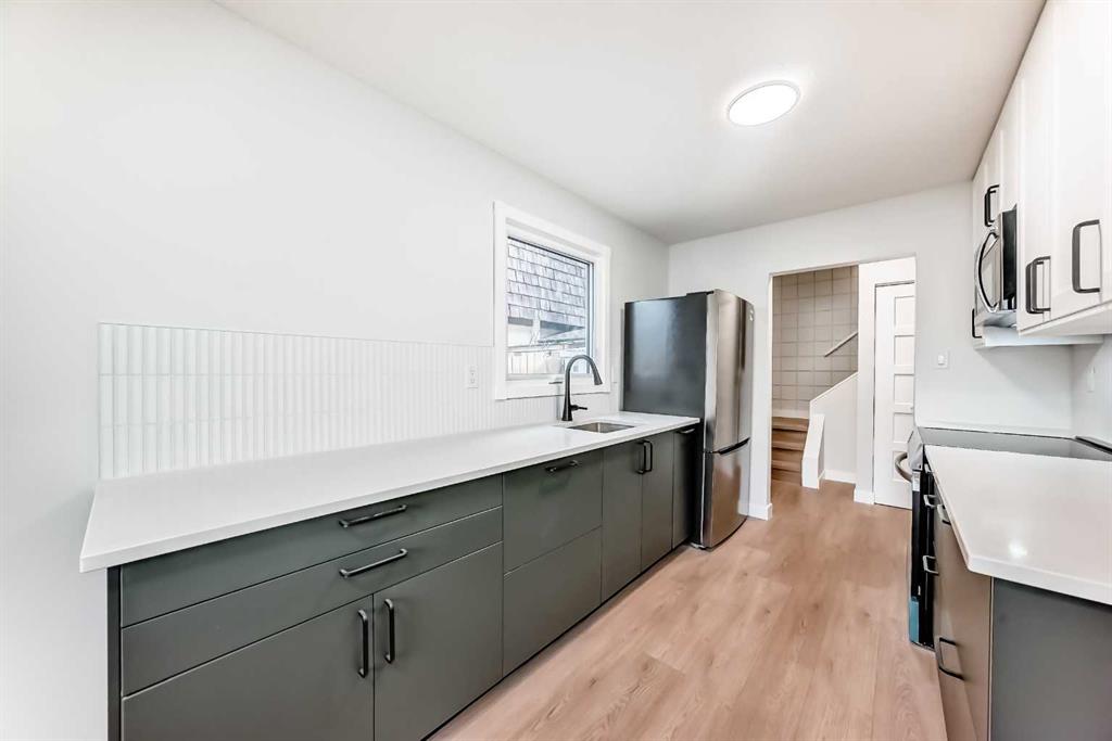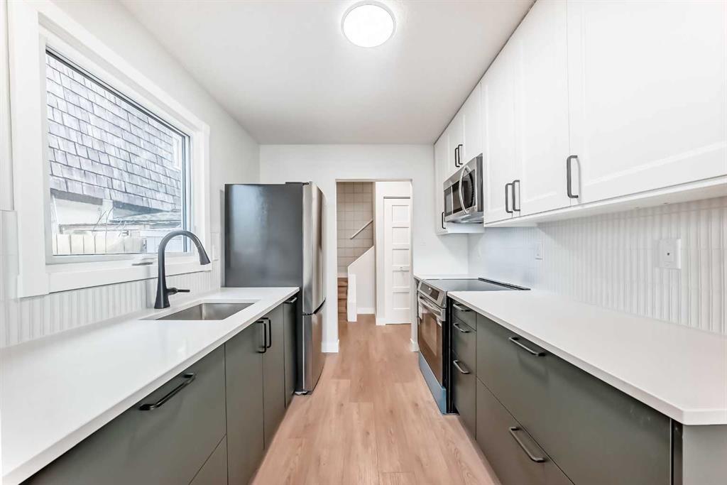 First time home buyers ( NO CONDO FEES) and insightful investors - take note.!!! Thoughtfully renovated and freshly painted, this turn-key home, features a galley style kitchen with beautiful quartz counter tops - brand new SS Frigidaire appliances consisting of an Induction stove, side by side refrigerator and convection microwave/hood fan combo. The classic tiled back splash, is surrounded by crisp white upper cabinets. Gorgeous deep green base soft close drawers & cabinets, host tons of storage and a seamlessly integrated brand new SS dishwasher. This home has a generous living room and a cosy dining area. The main floor is completed with a half bathroom and a convenient side entrance-withe easy access to the storage shed. Upstairs features 3 good sized bedrooms, a full bath and a linen closet. The basement is fully finished with a rec room, laundry room and plenty of storage. Other features you will love about this property are, easy maintenance vinyl flooring throughout, new windows, knock down ceilings, new baseboards, new landscaping. To be noted as well, this property has a BRAND NEW TOP END 2 stage furnace and a BRAND NEW TOP END water heater, and fresh new paint throughout. Even the roof is in great condition. This home is a gem with absolutely awesome neighbours. The location is ideal- close to Glenmore Trail and easy access to Deer Foot Trail. This charming home is nestled on a quiet street, close to shopping, transit, schools and parks. Ogden is a well established safe neighbourhood - an up and coming hot spot - don't miss this investment opportunity!
