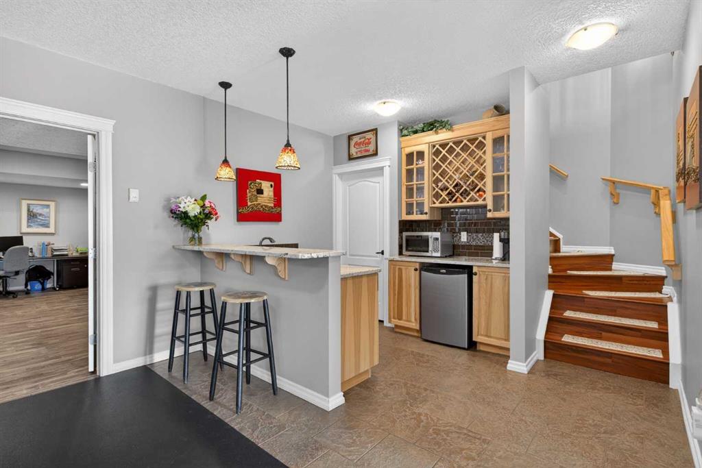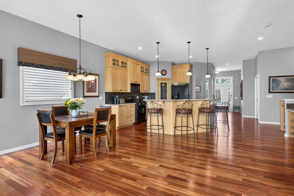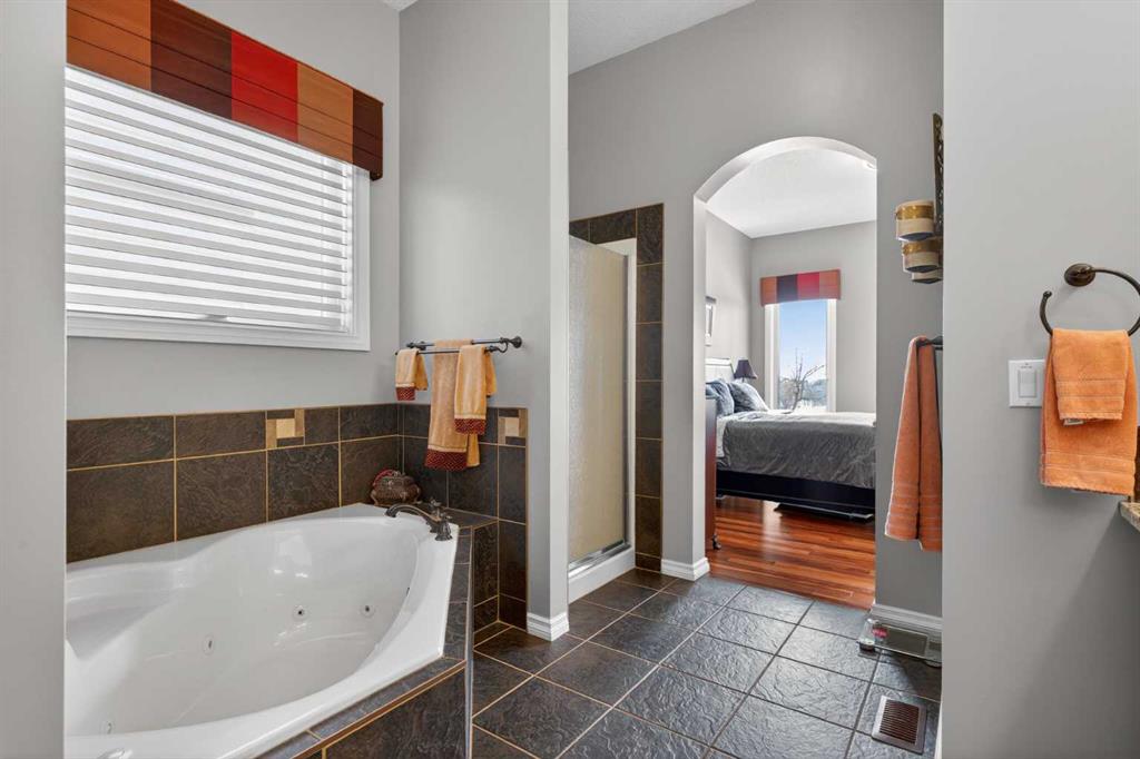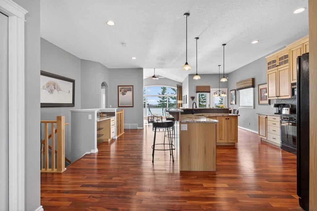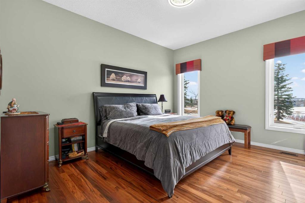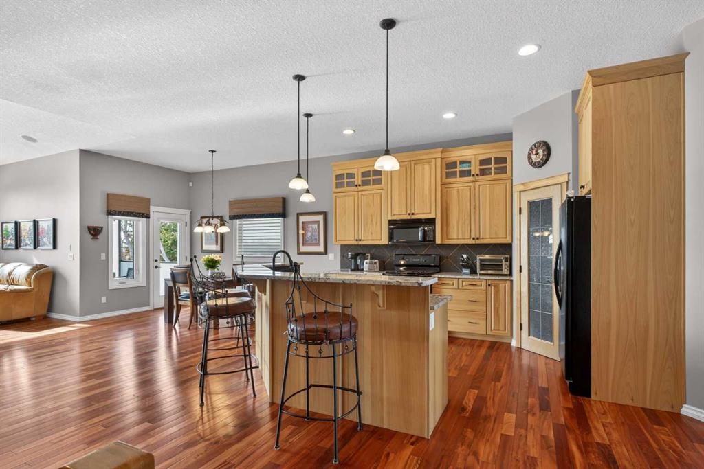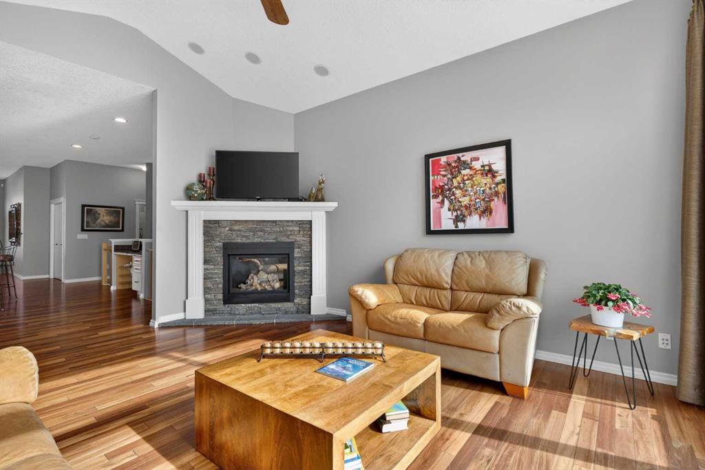 Welcome to this beautiful WALKOUT HOME backing directly onto the GOLF COURSE, offering an exceptional blend of comfort, craftsmanship, and lifestyle. Tucked away on a quiet street with friendly neighbours, this home provides the kind of peaceful setting that truly feels like coming home. Step inside to an inviting main floor featuring 10-foot ceilings, EXPANSIVE WINDOWS and a VAULTED CEILING in the living room centered around a cozy fireplace, creating a bright and airy space perfect for relaxing or gathering with family and friends. A main floor PRIMARY bedroom with a primary ensuite designed for relaxation, complete with a jetted tub and separate shower, creating a private retreat at the end of the day. The formal dining room provides the perfect setting for hosting special dinners and celebrations. The kitchen is both elegant and functional, featuring a gas stove, GRANITE COUNTERTOPS, and beautiful HICKORY CABINETRY , combining timeless style with durability. HUNTER DOUGLAS blinds add a refined touch, while the TIGERWOOD hardwood flooring on the upper level brings warmth and natural beauty. Downstairs, the fully finished walkout basement expands your living space and opens directly to the golf course views. FEATURES heated floors, 2 beds, full bath and a large recreational/family room. Outside, enjoy the durability and ease of composite decking, providing a low-maintenance space to take in the serene golf course backdrop, and more than 20 matured perennials. This home has also seen several thoughtful upgrades and improvements: 18 SOLAR PANELS installed (October 2024) by Orizon Energy , 75 US gallon hot water tanks replaced (January 2025), Water softener replaced (March 2024) , Washer and dryer replaced (November 2023), Dishwasher replaced (October 2022). The irrigation system is professionally maintained through Naiad Irrigation Systems, with the blowout completed September 25, 2025. Welcome home. ***VIRTUAL TOUR AVAILABLE***