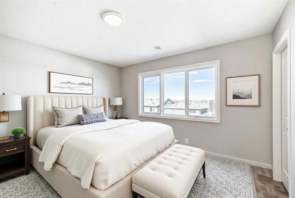 Welcome to this brand-new “Lyall”—a polished, modern home that blends designer style with everyday practicality, all set on a great location and a walkout lot that adds real lifestyle value. Step inside and you’re greeted by soaring 10’ ceilings and warm luxury vinyl plank flooring that carries through the main level, setting the tone for a bright, open feel. A flexible front flex room is perfect for a home office, reading lounge, or play space, whatever your day-to-day needs most. Toward the back, the layout opens up for easy living and entertaining, with an inviting living room, an oversized dining area, and a kitchen designed to anchor the home. Here, you’ll find quartz countertops, a gorgeous marble style tile backsplash, stainless steel appliances, and a large island that naturally becomes the gathering spot, finished off with sleek black hardware that ties everything together with a clean, contemporary look. Upstairs, a centrally located loft creates a true second living space while providing great separation between bedrooms. The primary suite feels like a retreat with a spacious walk-in closet and a spa-inspired 4-piece ensuite featuring dual sinks—ideal for busy mornings. Two additional bedrooms, a full 4-piece bath, and convenient upper-floor laundry round out the upper level with the kind of functionality families appreciate. Downstairs, the walkout basement is the game-changer, bringing in extra natural light and opening up flexible options for future development, media space, gym, or guest area. The walkout basement also provides a secondary entrance that adds even more versatility for a future suite(subject to city/municipality approval and permitting). And then there’s Mahogany—a true four-season lake community where lifestyle leads the way. From Calgary’s largest freshwater lake and two private beaches to the Beach Club, tennis courts, skating rinks, fishing spots, playgrounds, and 22+ km of pathways and wetlands, it’s the kind of neighbourhood that keeps you outside and connected. Add in the Village Market’s restaurants, cafés, shops, fitness studios, and quick access to South Health Campus and the Seton Urban District, and you’ve got a location that’s as practical as it is fun. A beautifully finished home, a walkout lot, and a prime setting in Mahogany, this is one you’ll want to see in person.