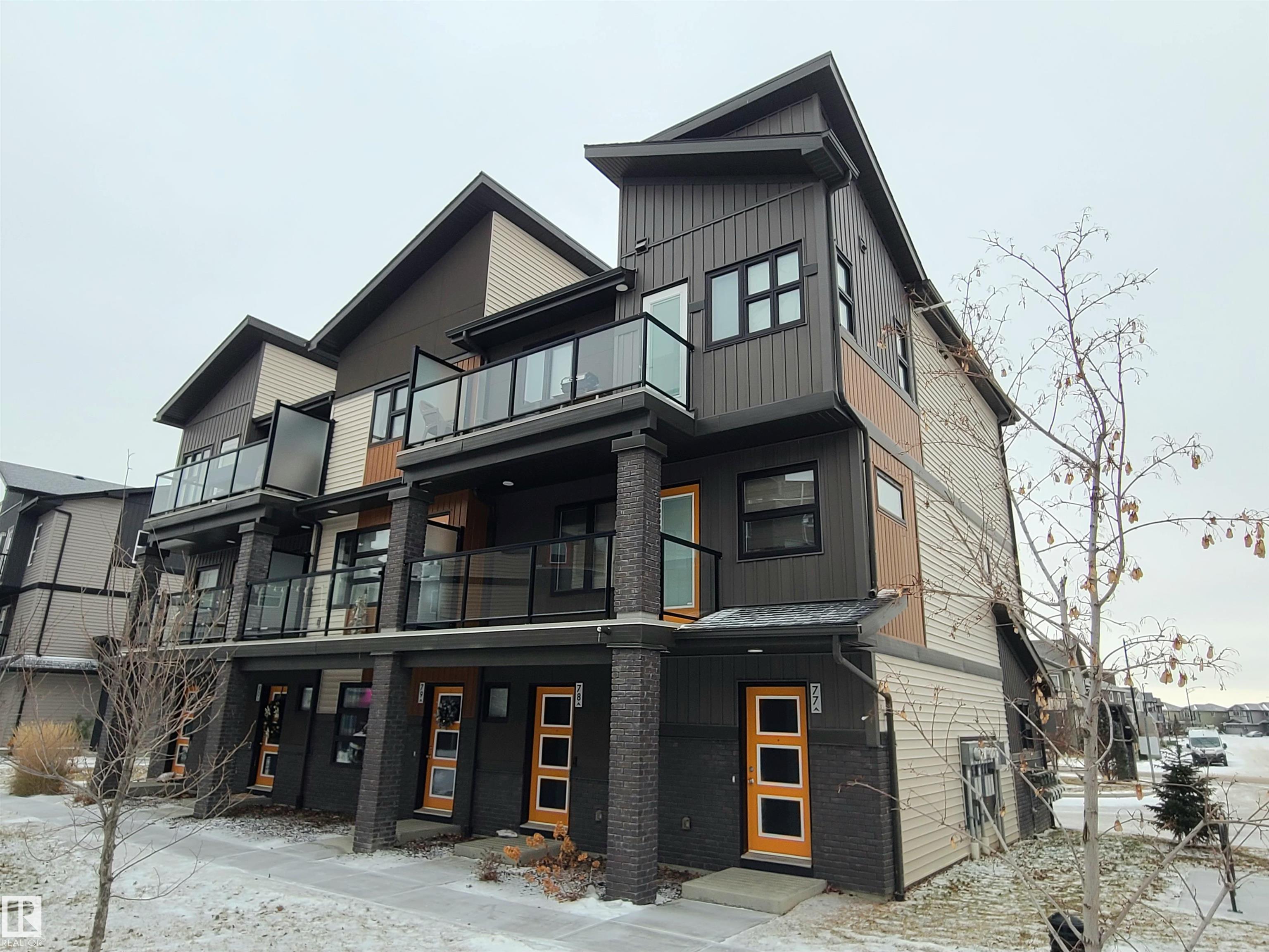 Contemporary 2 storey townhouse with single over sized garage in the upscale neighborhood of Glenridding Heights. Features open concept layout with vaulted ceiling living room and beautiful stone (up to the ceiling) fireplace, modern kitchen with quartz countertops, S/S appliances and large island. The upper level also includes a primary bedroom with a spacious deck facing a beautiful green area, good sized 2nd bedroom and 4pc bath. Visitor parking just steps away. Conveniently located off of Ellerslie rd. Close to parks, Anthony Henday, Currents of Windermere and International Airport.