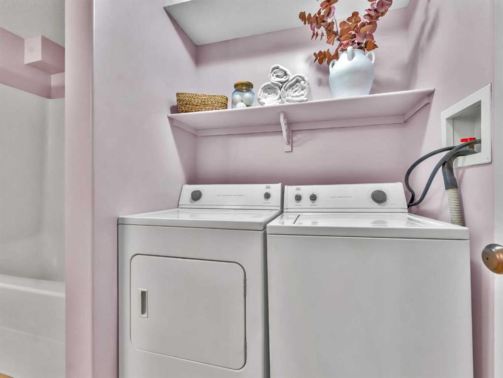 BEAUTIFUL & AFFORDABLE BUNGALOW STYLE “MAIN FLOOR” CONDO! This 893 SQ FT condo is “PET FRIENDLY” and comes with 2 BEDROOMS, 1 BATH AND 2 PARKING STALLS RIGHT OUT FRONT! This is perfect for first time buyers, retirees, or revenue seekers and is an excellent opportunity to own instead of renting PLUS quick possession is possible! Close to all amenities including shopping, schools, parks, transit, Leisure Centre and so much more! The layout is well thought out and features an airy kitchen with eating area, pantry, NEW dishwasher (June 2025), a separate living room, 2 bedrooms and a combination laundry/4 pc bathroom. Recent maintenance and upgrades include NEW A/C (June 2025) and a Newer motor fan in the furnace. There’s also a flexible nook area that is a perfect computer or play area. The ground level patio means no stairs! This condo boasts TWO PARKING STALLS just out the front door, and the monthly fees of only $279 includes heat, water, exterior maintenance, reserve fund contributions and trash. Pets are allowed with restrictions. IDEAL PRICE FOR THIS CONDO SO CALL TODAY!