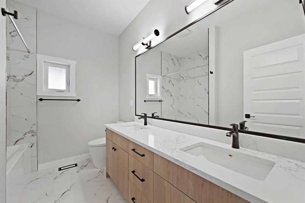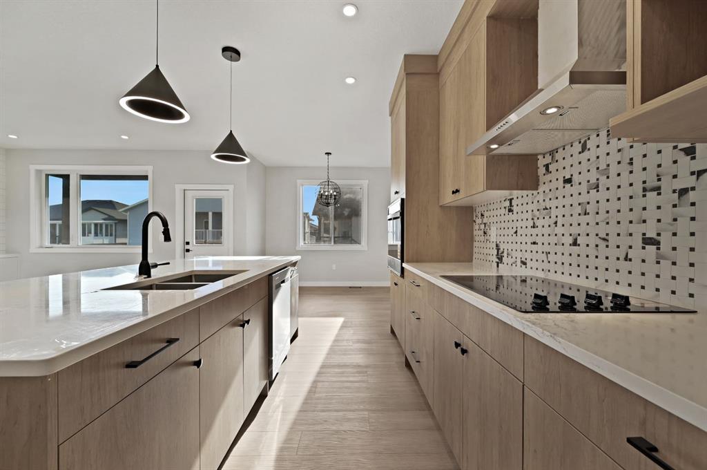 Discover this stunning 2025-built home that perfectly blends contemporary design with everyday functionality. Featuring a triple attached garage with 220V power, this property is ideal for today’s modern lifestyle. Step inside to an open-concept main floor showcasing a chef-inspired kitchen complete with a large island, quartz countertops, built-in wall oven, electric cooktop, stylish range hood, and a convenient walk-through pantry. The dining area is illuminated by an elegant LED chandelier and flows seamlessly into the spacious living room, highlighted by a white feature wall and designer-style electric fireplace — perfect for entertaining or relaxing. The main floor is finished with sleek black Moen fixtures, LED lighting throughout, and a chic half bath. Upstairs, enjoy a bright bonus room and three spacious bedrooms, including a luxurious primary suite with a 4-piece ensuite. The additional full bath features Jack & Jill sinks and quartz counters, making it ideal for families. Convenient upper-level laundry adds to the thoughtful layout. A separate side entrance leads to a basement with rough-ins for future development — offering great income potential or flexibility for expansion. Outdoors, enjoy the covered back deck with a natural gas BBQ line, perfect for year-round entertaining. This move-in ready home in the vibrant community of Olds combines style, comfort, and opportunity. Don’t miss your chance to make it yours!