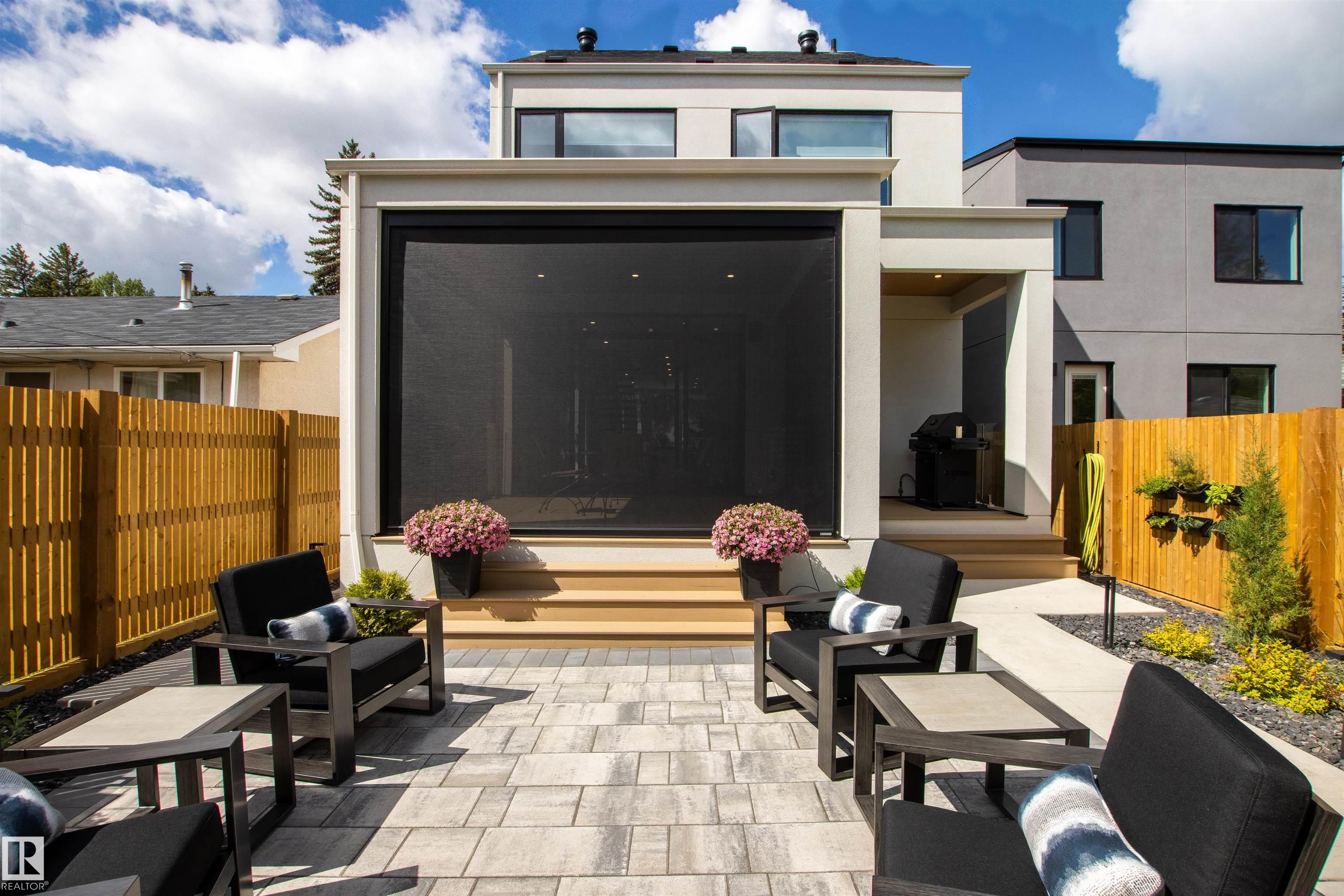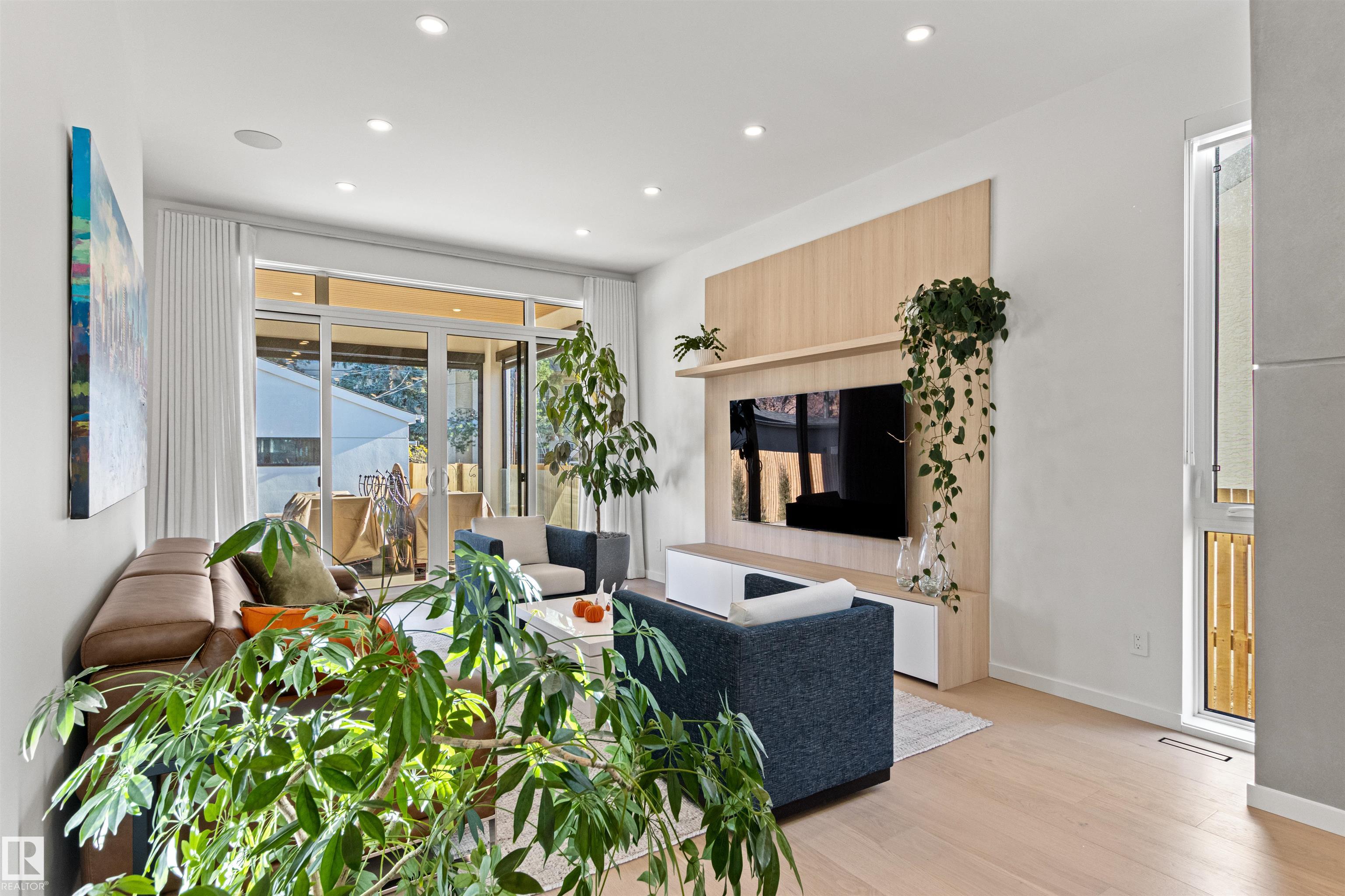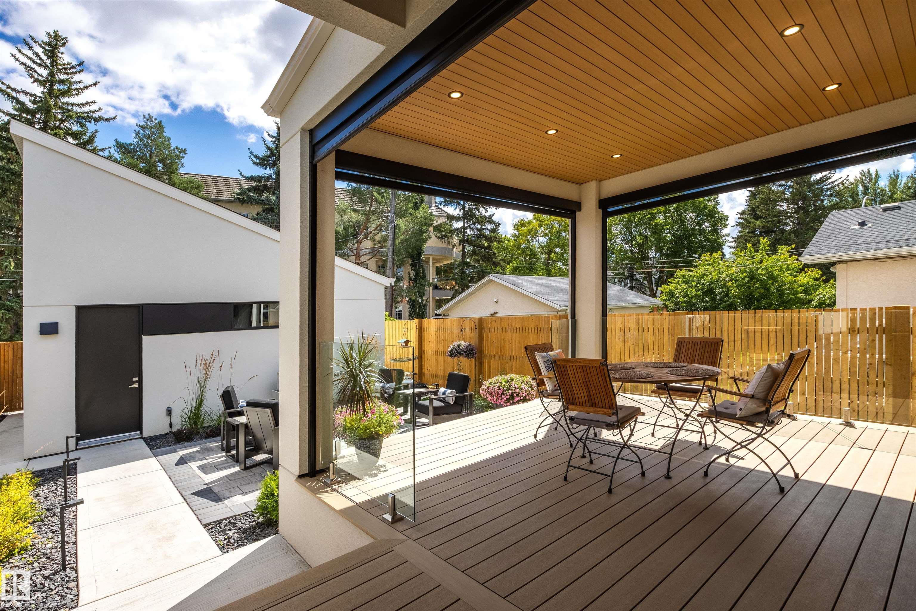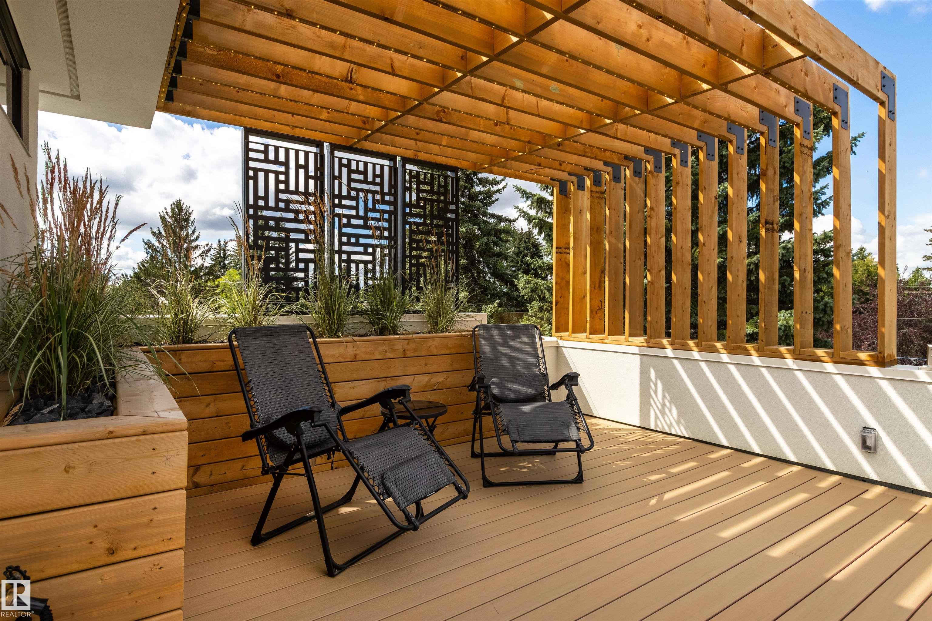 An architectural statement by Design Two Group in one of Edmonton’s most coveted neighbourhoods, this residence embodies luxury w/ uncompromising attention to detail. The home's façade combines warm vertical cladding & clean concrete geometry, while interiors by Nako Design celebrate the Japandi ethos simplicity, balance & light. Inside, a dramatic three-storey concrete feature wall & floating staircase set the tone for the home’s modern artistry. The chef’s kitchen w/ bespoke cabinetry, premium Sub-Zero, Wolf, & Miele appliances, is anchored by a 10-ft quartz waterfall island & custom millwork, which flows effortlessly into the dining space w/ a glass-encased wine display. The primary suite offers serene proportions, a spa-like ensuite & integrated smart systems. The rooftop deck w/ its pergola, frameless glass railings & saltwater hot tub, offers panoramic tranquility. Every detail from Daikin Smart HVAC to professionally finished low-maintenance landscaping reflects thoughtful architectural precision.