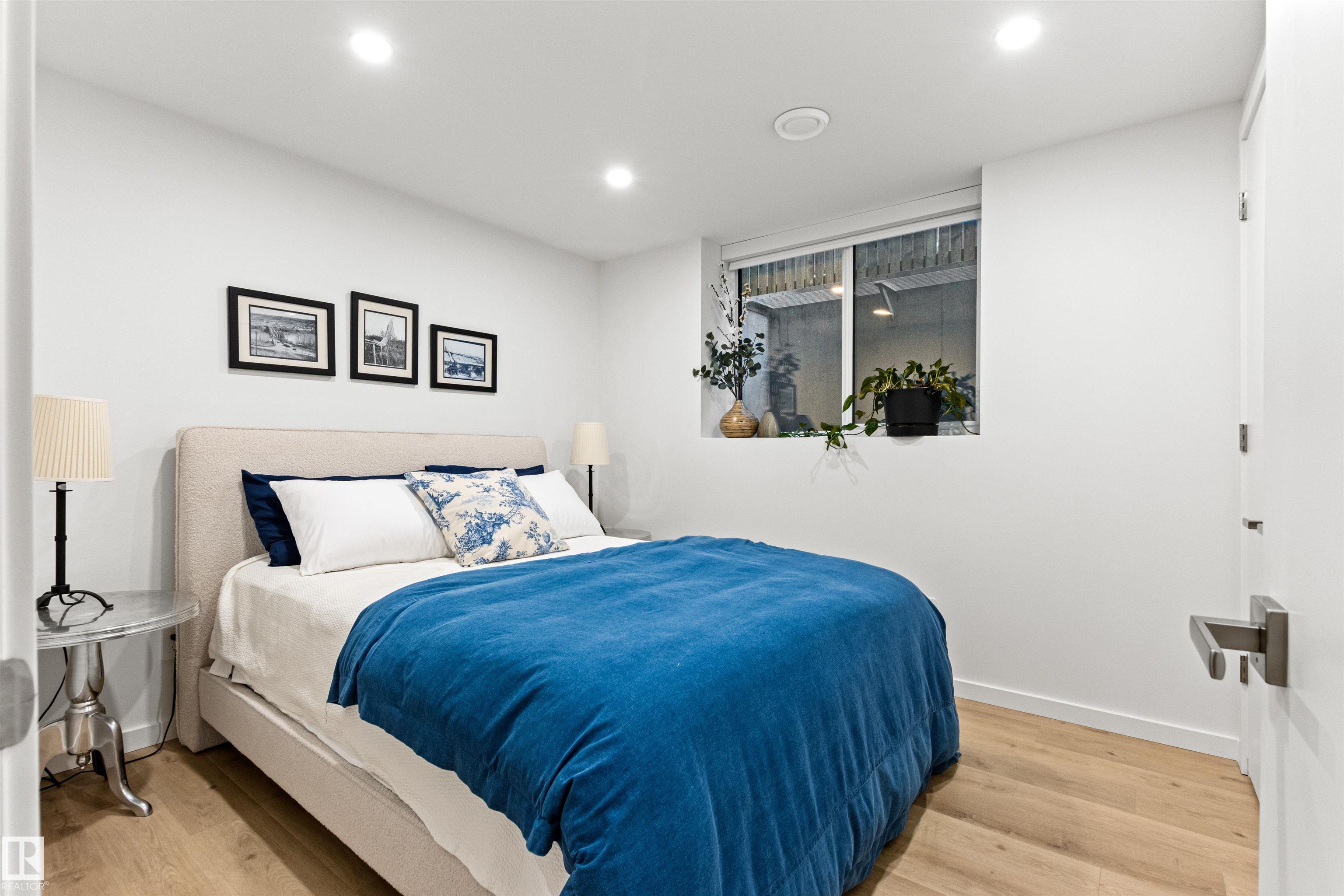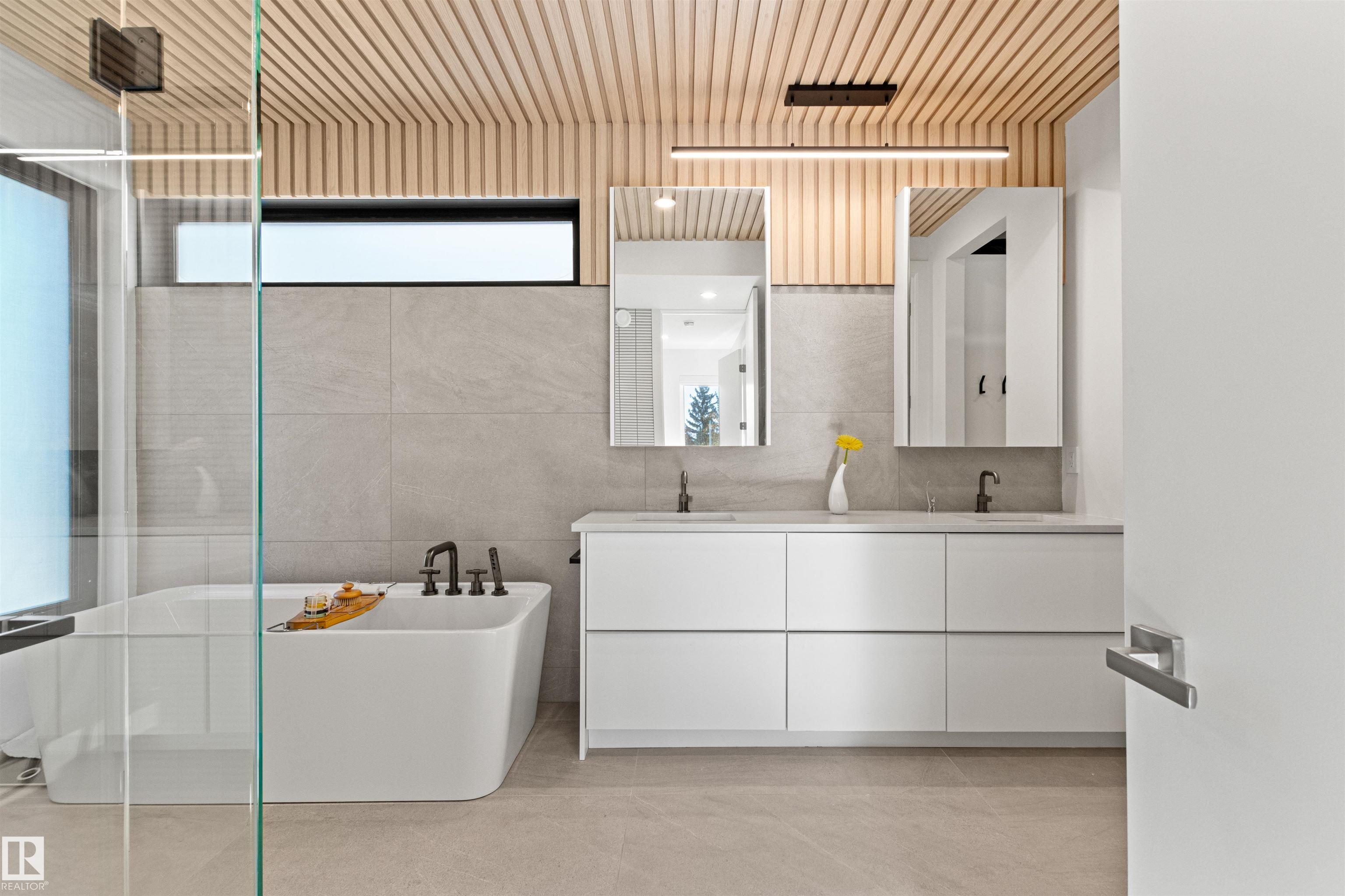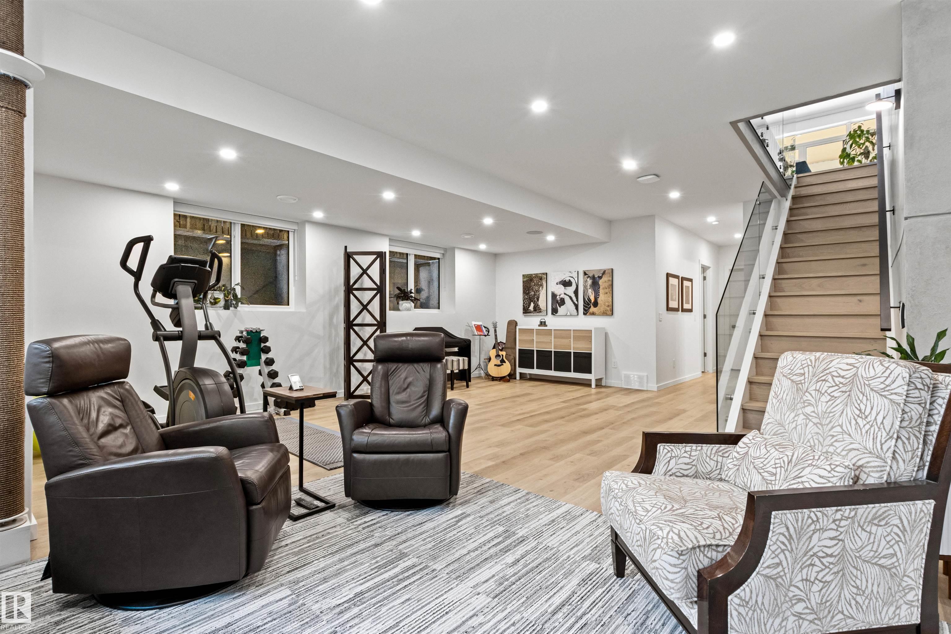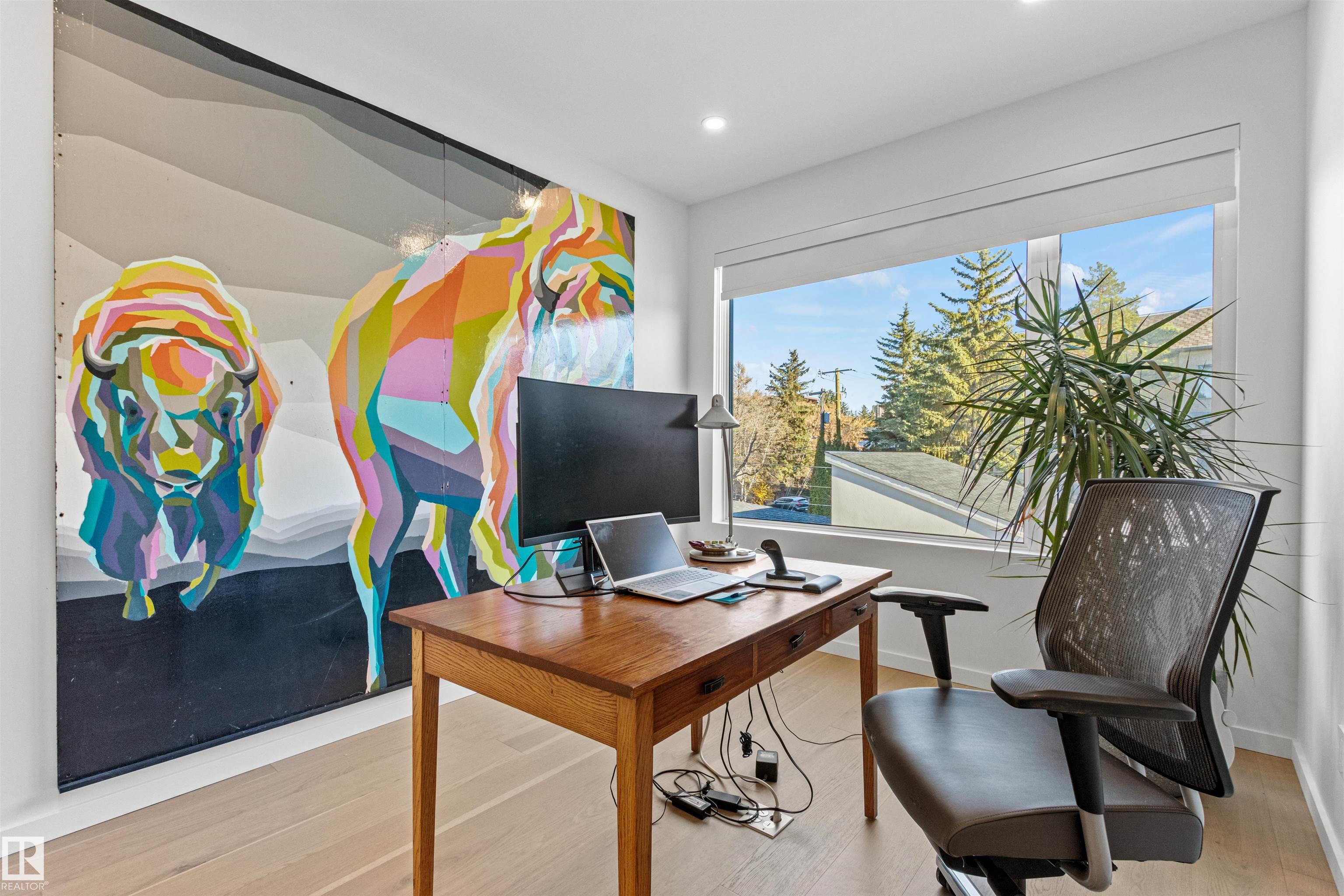 An architectural statement by Design Two Group in one of Edmonton’s most coveted neighbourhoods, this residence embodies luxury w/ uncompromising attention to detail. The home's façade combines warm vertical cladding & clean concrete geometry, while interiors by Nako Design celebrate the Japandi ethos simplicity, balance & light. Inside, a dramatic three-storey concrete feature wall & floating staircase set the tone for the home’s modern artistry. The chef’s kitchen w/ bespoke cabinetry, premium Sub-Zero, Wolf, & Miele appliances, is anchored by a 10-ft quartz waterfall island & custom millwork, which flows effortlessly into the dining space w/ a glass-encased wine display. The primary suite offers serene proportions, a spa-like ensuite & integrated smart systems. The rooftop deck w/ its pergola, frameless glass railings & saltwater hot tub, offers panoramic tranquility. Every detail from Daikin Smart HVAC to professionally finished low-maintenance landscaping reflects thoughtful architectural precision.
