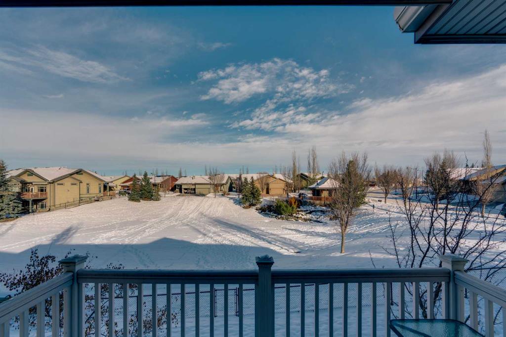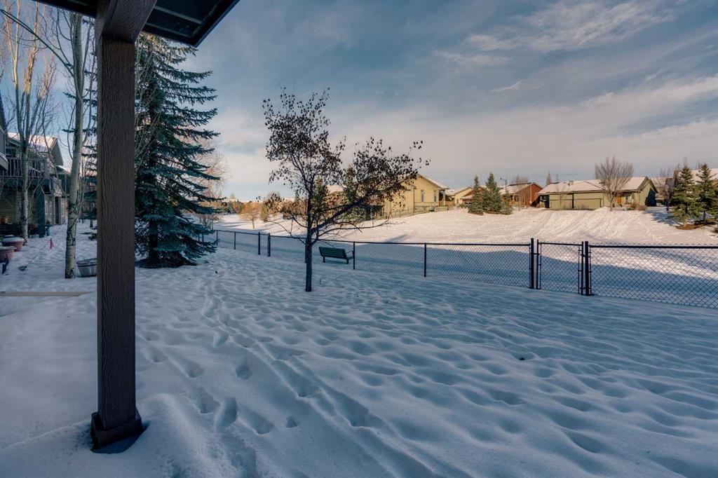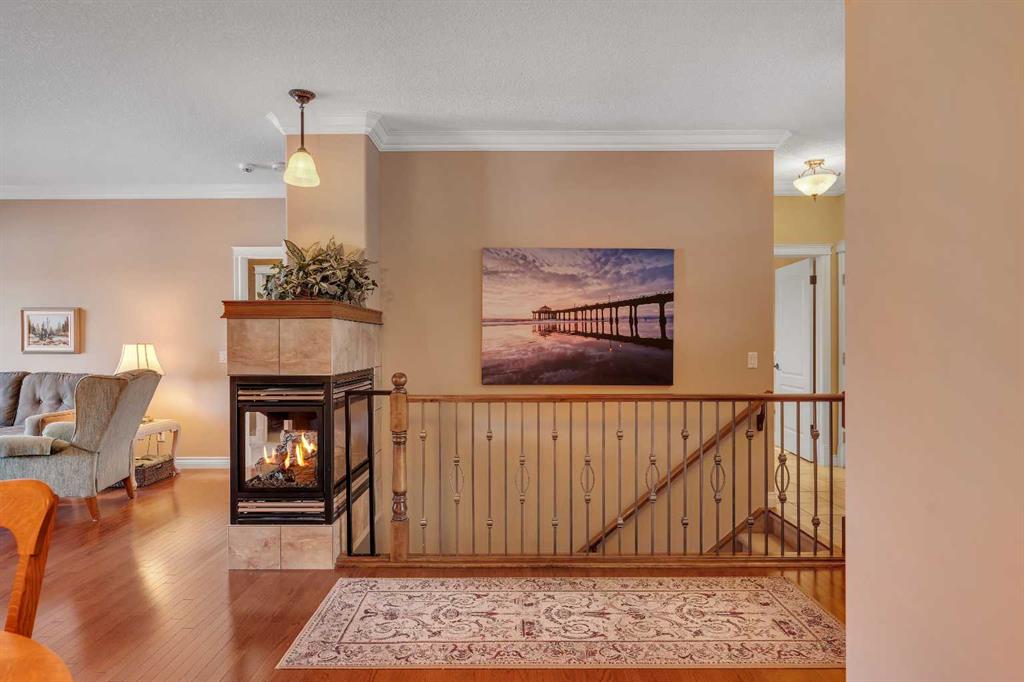 RARE OPPORTUNITY to own this immaculate 55+ walkout bungalow-style villa backing directly onto greenspace—with no neighbours behind! Tucked into one of the best locations in the community, this home is ideal for empty nesters and downsizers seeking a low-maintenance lifestyle without sacrificing space or comfort. From the moment you step inside, you’ll notice the executive upgrades including 9’ ceilings, custom crown moulding, and hardwood flooring throughout the main level. The layout is bright and functional with a spacious tiled front entry, a front den/office with large windows, and a formal dining area perfect for hosting. The kitchen offers granite countertops, corner pantry, an updated tile backsplash, and newer stainless-steel appliances including a fridge with water and ice, dishwasher, and microwave hood fan. The adjacent eating nook showcases unobstructed greenspace views and leads to the deck—a perfect spot for morning coffee or quiet evenings outdoors. The living room is warm and inviting and includes a three-way fireplace. The primary suite is a great size and features a walk-in closet and a beautifully updated ensuite with heated floors, a tiled shower and Jacuzzi tub. The main level is complete with a powder room and convenient laundry with new washer and dryer (2024). Downstairs, the walkout lower level expands your living space with a large family room featuring a gas fireplace, built-ins, a spacious additional bedroom, and a full bathroom. There’s also a versatile room that is ideal for an office, hobby space, rec room, or potentially an additional bedroom plus plenty of storage. Additional highlights include air conditioning, and a central vacuum system. Best of all: no condo fees—just a low $180 HOA fee covering lawn care, snow removal, and irrigation, making this an ideal turn-key option for those looking to simplify and enjoy life. With easy access to Stoney Trail, shopping and amenities this move in ready villa is not to be missed!