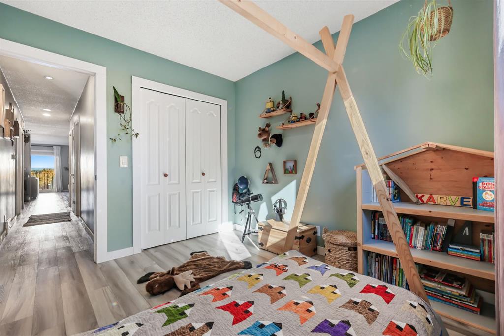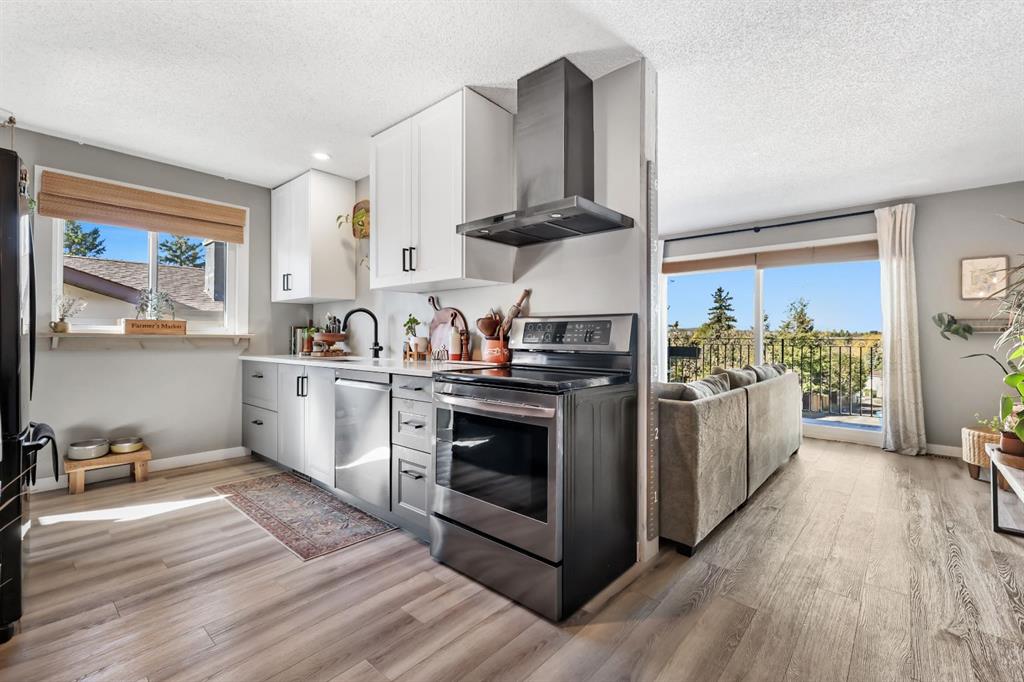 Welcome home to a cheerful 3-bed, 2-bath raised bungalow offering 1,771+ sq.ft. of developed space and a wonderful Glenbow address. Thoughtfully updated and move-in ready, this home blends comfort with everyday practicality. The main floor welcomes you with a bright front living room—rustic wood feature wall, cozy fireplace, and sliding glass doors that frame those Rocky Mountain views. The renovated kitchen serves as the heart of the home with generous prep space, great storage, and an oversized pantry. Down the hall: a roomy primary bedroom, two additional bedrooms, and an updated 4-pc bath. A handy side door leads to the new side deck—perfect for morning coffee or easy BBQ nights. Downstairs, the spacious family/flex area sets up beautifully for movie nights, a play zone, home gym, or office. You’ll also find a 3-pc bath, laundry, and interior access to the oversized single underdrive garage. Outside, the fully fenced backyard offers plenty of room for kids, pets, and weekend lounging, plus extra parking on the driveway. Recent improvements: renovated kitchen; newer flooring & paint; new roof & windows; refreshed upper bath; exterior paint & front siding; new front door, new side fence, and new side deck. Warm, inviting, and in a walkable location—great value in Glenbow. Come see the possibilities!
