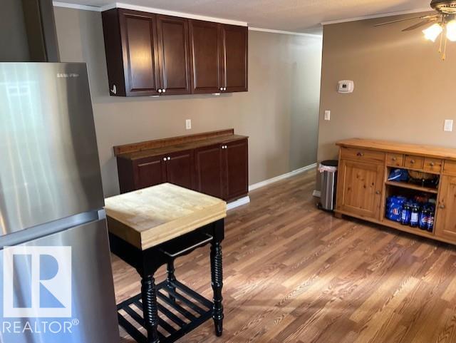 This mobile home has had many updates done! The walls are drywalled and there is laminate flooring running through the home. The large living room is very bright. The kitchen has newer cabinets and countertops, a built-in china cabinet/hutch, a ceiling fan and newer SS appliances. The bathroom has a newer vanity and the master bedroom is large with a door leading to the back yard. The second bedroom is also a good size. The home has been vinyl sided, there is a new furnace (2023), newer triple pane vinyl windows (2019), new eavestroughs (2024), new heat tape (2025) and some newer pex plumbing. Washer and Dryer included. There is a large fully fenced yard with a storage shed and the driveway has room for 4 vehicles to park. A future garage build would also be possible on this lot. Don't wait to view!
