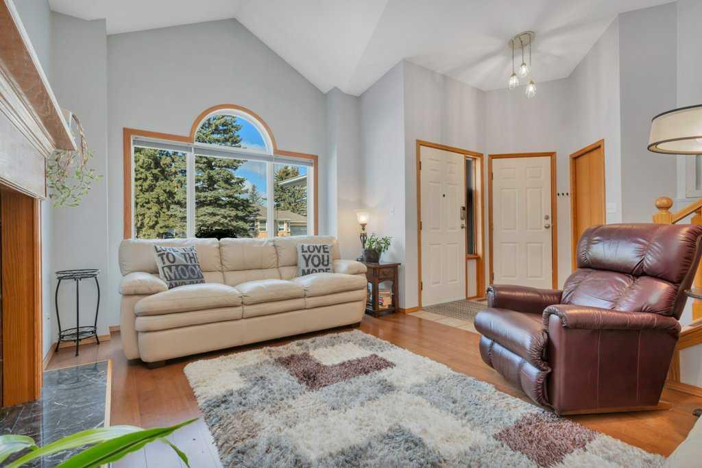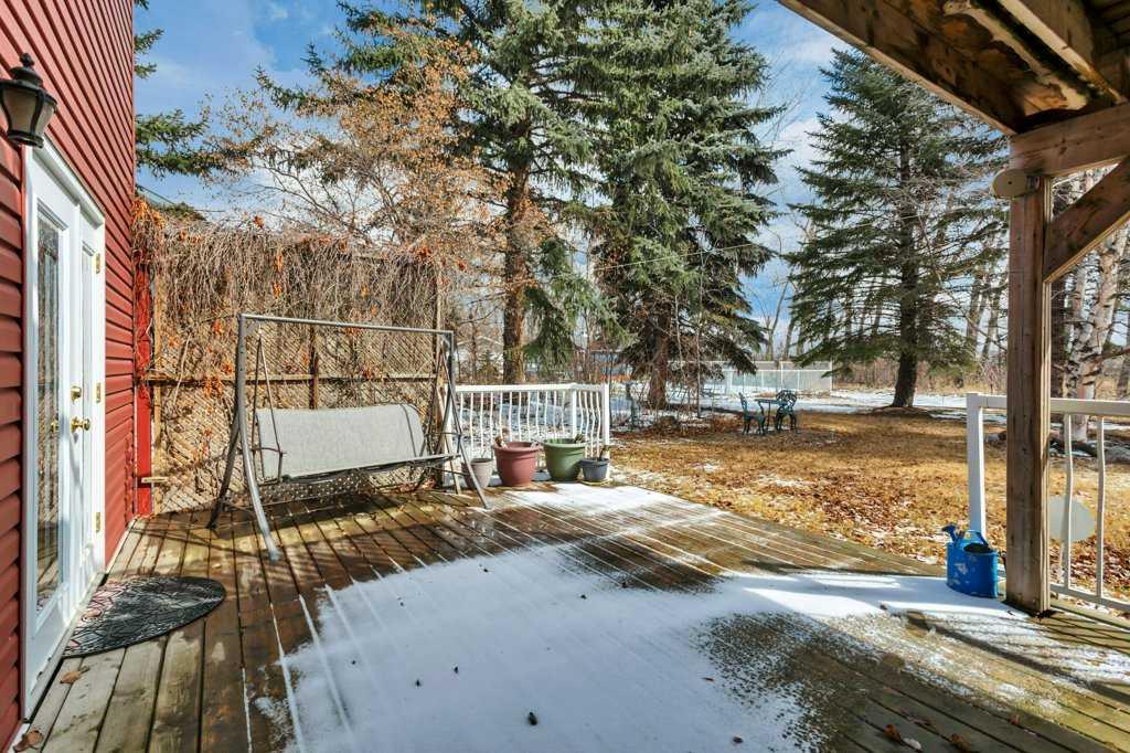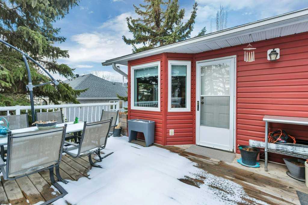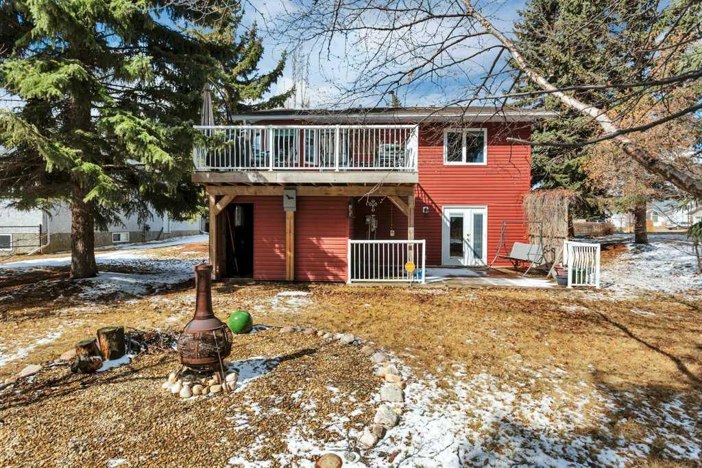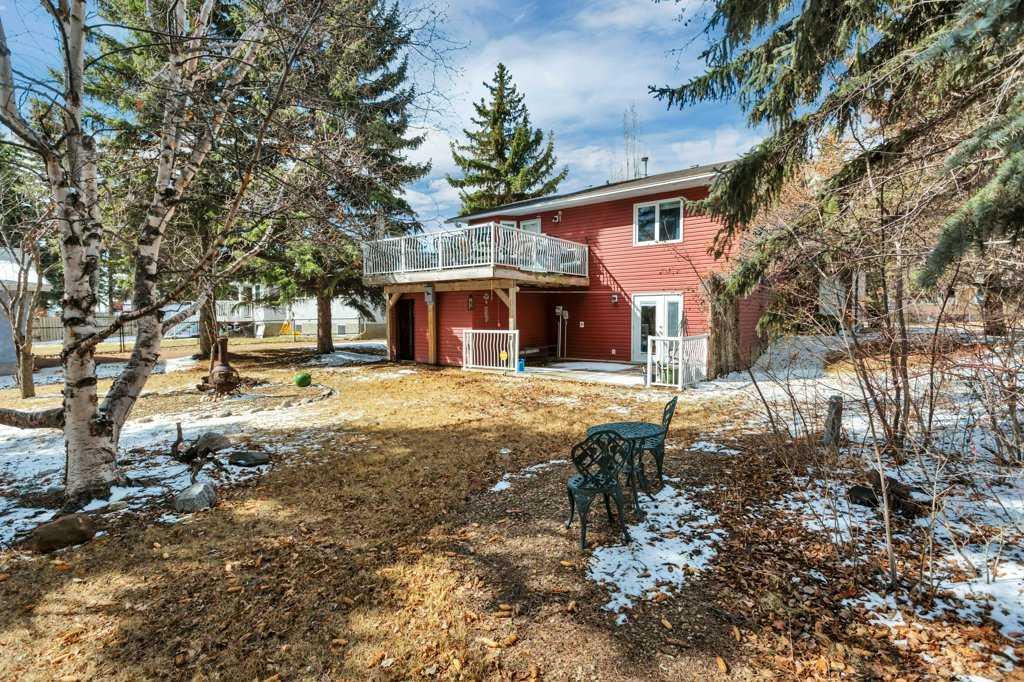 Welcome to English Estates, where oversized lots and quiet streets create one of Lacombe’s most coveted neighborhoods. This beautifully cared for bi-level sits on an impressive 1/3 of an acre lot and delivers the perfect blend of comfort and privacy. With four bedrooms and three bathrooms there is plenty of room for family life, guests, or a growing household. The main level showcases hardwood and tile flooring, a spacious kitchen with eating bar, a large formal dining area overlooking the sunken living room with a wood-burning fireplace. Three generous bedrooms and two bathrooms complete the upper level, including a comfortable primary suite with a three piece ensuite and walk-in closet. The developed walkout basement offers a huge family room, fourth bedroom, three piece bathroom, storage, and laundry, (with potential for a fifth bedroom with minimal effort.) Step outside the garden doors from the family room into the secluded backyard that feels like your own private retreat. Surrounded by mature trees and lush greenery, it’s the kind of outdoor space that’s hard to find and even harder to leave. Updates which bring peace of mind and a refreshed look include new pex water lines (Dec 2025), shingles (2019), siding (2019), and windows. Practical perks include RV parking, an attached double garage, enclosed under deck storage and a layout designed for real life. This is a home that’s been truly loved — inside and out — and it shows.