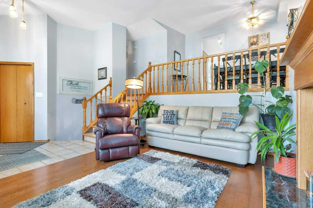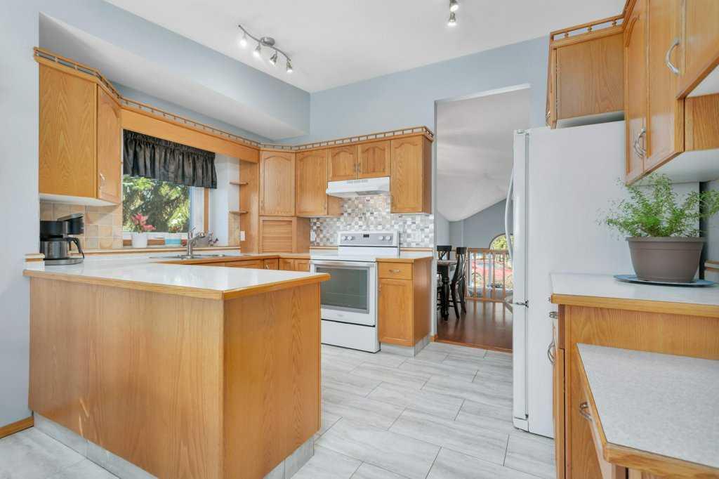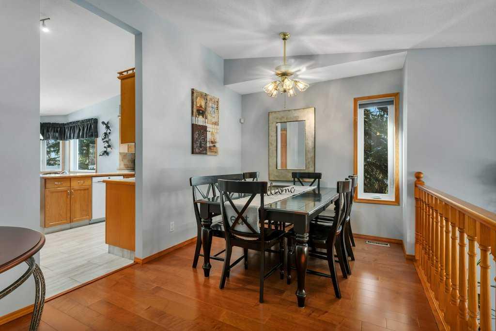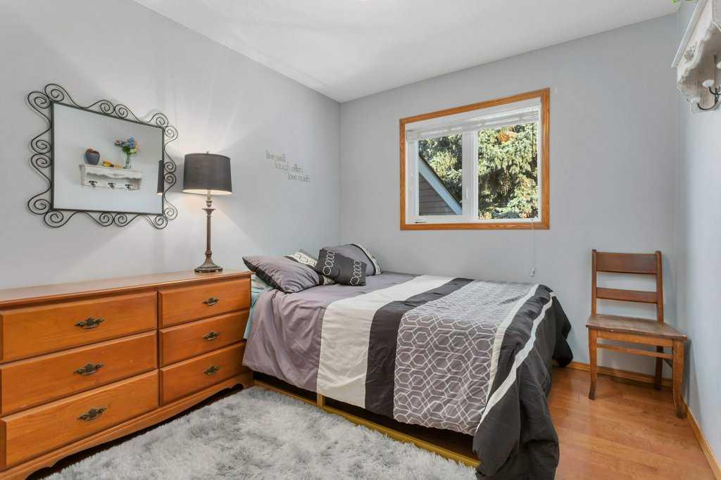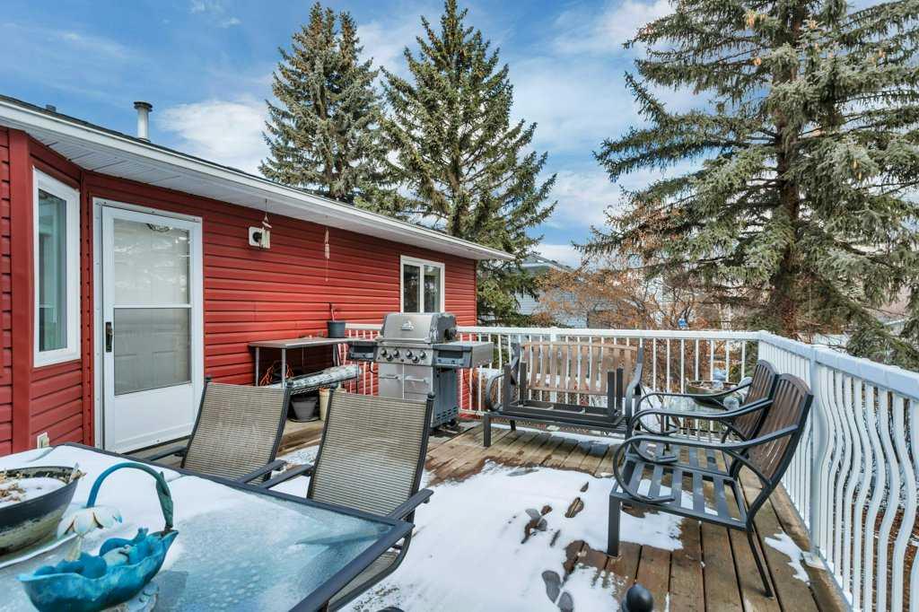 Welcome to English Estates, where oversized lots and quiet streets create one of Lacombe’s most coveted neighborhoods. This beautifully cared for bi-level sits on an impressive 1/3 of an acre lot and delivers the perfect blend of comfort and privacy. With four bedrooms and three bathrooms there is plenty of room for family life, guests, or a growing household. The main level showcases hardwood and tile flooring, a spacious kitchen with eating bar, a large formal dining area overlooking the sunken living room with a wood-burning fireplace. Three generous bedrooms and two bathrooms complete the upper level, including a comfortable primary suite with a three piece ensuite and walk-in closet. The developed walkout basement offers a huge family room, fourth bedroom, three piece bathroom, storage, and laundry, (with potential for a fifth bedroom with minimal effort.) Step outside the garden doors from the family room into the secluded backyard that feels like your own private retreat. Surrounded by mature trees and lush greenery, it’s the kind of outdoor space that’s hard to find and even harder to leave. Updates which bring peace of mind and a refreshed look include new pex water lines (Dec 2025), shingles (2019), siding (2019), and windows. Practical perks include RV parking, an attached double garage, enclosed under deck storage and a layout designed for real life. This is a home that’s been truly loved — inside and out — and it shows.
