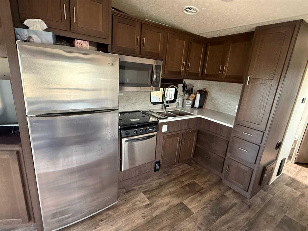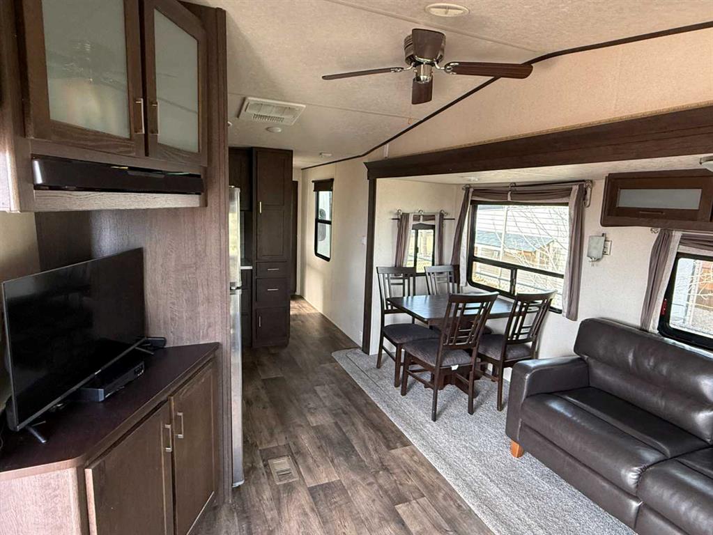 Looking for the perfect summer getaway? This recreational property offers cooperative ownership at Travers Ridge RV Resort Ltd., with a license of occupation valid for 70 years. Located in Phase 1, Lot 8 includes a well-kept 2018 Forest River Salem 353 FLFB park model, complete with heat (powered by two propane tanks), air conditioning, and a spacious interior. All furniture and appliances are included in the sale, along with outdoor deck furniture, a 36" Blackstone griddle, and children's play equipment. A covered deck, bunkhouse, and rear shed add to the functionality and charm of this property. Travers Ridge RV Resort Ltd. is perched on the ridge just above Little Bow Provincial Park, offering scenic views and quick access to lake activities. The resort features private boat slips, with an approximate annual cost of $850. Please note there is currently a waiting list for slips. The gated resort is open seasonally from approximately May 1st to early October (weather dependent). While the site can be accessed during the off-season for property checks, overnight stays are not permitted during the winter months. Resort amenities include a shared clubhouse with a full kitchen, living room, games room, exercise area, laundry, washrooms with showers, and elevated decks overlooking the inground pool. There’s also a play park and a large off-leash area for dogs. Each lot features 50-amp power, potable water, and sewer connections. Golf carts and side-by-sides are permitted throughout the resort and can be used on the private pathway to the docks. Annual maintenance fee for 2025 was $2,000. Property taxes for the resort are divided among owners and billed annually.