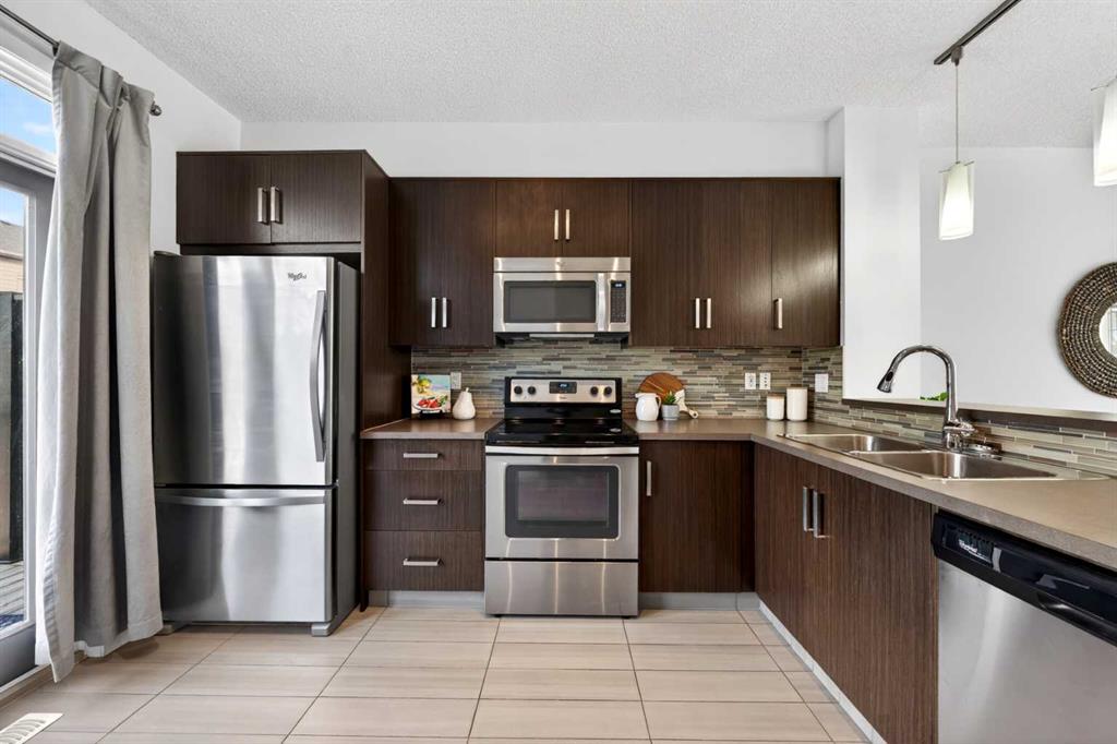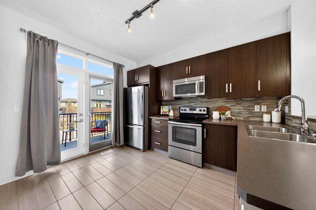 Welcome to this beautifully renovated townhouse in the highly sought-after Walden community! Located in a well-maintained complex, this home features a brand-new metal patio railing and offers the perfect blend of modern style and everyday convenience. Ideally situated in one of the best locations within the complex, it fronts onto a quiet street and includes a spacious back patio overlooking a park-like green space and landscaped walking path. Step inside and head upstairs to an expansive open-concept main level, where you’ll find brand-new luxury vinyl plank flooring (100% waterproof), fresh modern light-tone paint, and an abundance of natural light streaming through large windows. The contemporary kitchen showcases elegant cabinetry, sleek quartz countertops, and a stylish backsplash, SS appliances. Just off the kitchen is a large balcony—perfect for enjoying summer evenings or your morning coffee. The main level also includes a convenient half bath, dining area, and a spacious living room that’s ideal for entertaining family and friends. Upstairs, you’ll discover two impressive primary bedrooms, each featuring its own private ensuite bathroom and walk-in closet—offering comfort, privacy, and functionality. The massive tandem garage provides plenty of room for parking, storage, a home gym, or even a workshop. Enjoy quick access to the many amenities of both Walden and Legacy, making this an unbeatable location for convenience and lifestyle. It is thoroughly cleaned and shampooed. Don’t miss this incredible opportunity to own a stunning townhouse in one of Calgary’s most desirable communities. Schedule your private viewing today!