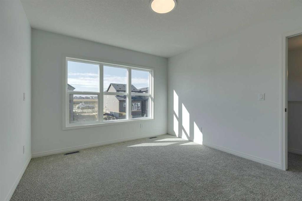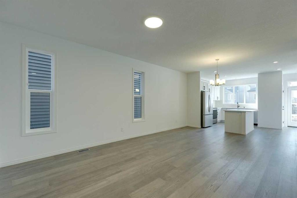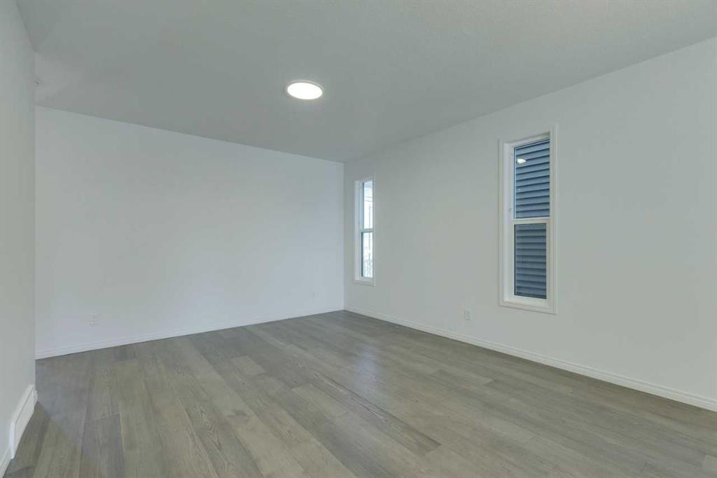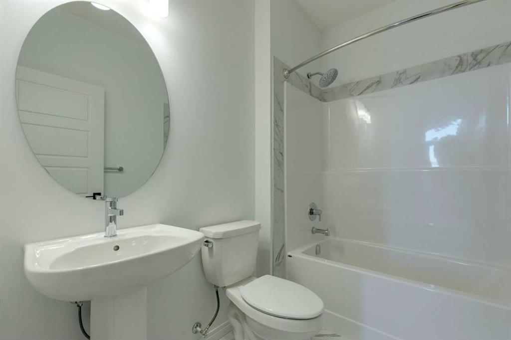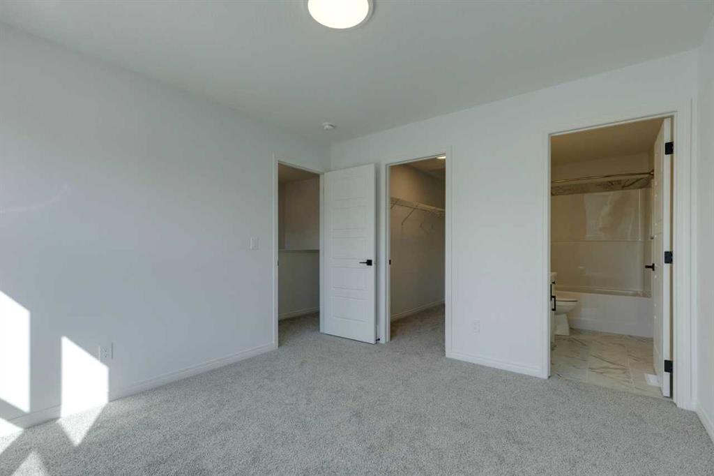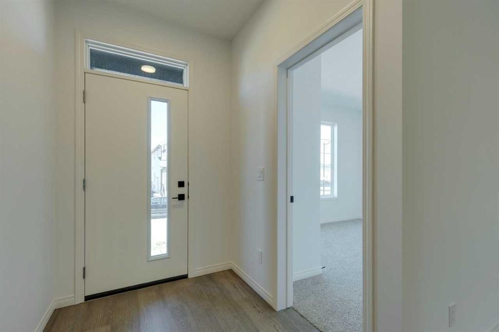 This beautifully upgraded 1,822 sq ft home in Homestead is designed for comfort, style, and flexibility. The main floor includes a bedroom and full bath, ideal for guests. The chef-inspired kitchen features an electric range, cabinetry with crown moulding, refrigerator, and premium finishes, creating a functional and elegant space. Upstairs offers three spacious bedrooms, a central bonus room perfect for a home office or media setup, and a smart layout that maximizes space and natural light. The separate side entrance leads to a basement with rough-ins, offering excellent potential for a future development. Located in the desirable Homestead community, this home blends modern design and family-friendly living. Photos are representative.