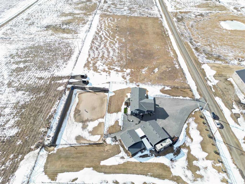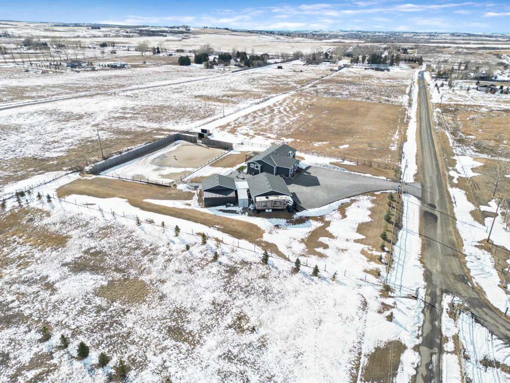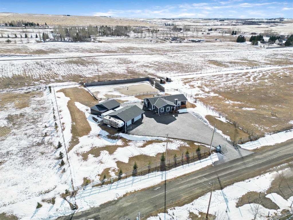 Where refined country living meets thoughtful design, this exceptional 4.82-acre equestrian estate offers privacy, security, and comfort -15 minutes to South Calgary or Okotoks. Tucked into a peaceful setting, you’ll enjoy wide-open space with quick access to shopping, dining, schools, and recreation. Enter through 12-foot double electric gates and follow the newly asphalted, slurry-sealed driveway to a custom 2,143 sq ft bungalow by Triple M Homes, perfectly positioned to capture mountain and pasture views. Inside, vaulted ceilings and abundant natural light create an airy, welcoming atmosphere. The living room is anchored by a gas fireplace with a striking brick feature wall — a warm focal point for gathering and relaxation. Floor plug-ins add flexibility for furniture placement and lighting. The kitchen and dining area form the heart of the home, surrounded by expansive windows that invite the outdoors in. Ideal for both intimate dinners and lively gatherings, this space feels bright and connected to nature. A redesigned butler’s pantry with custom cabinetry adds style and practicality, leading to the rear boot room with laundry, storage, and a ½ bath. The east wing offers privacy and versatility, featuring a flexible den — perfect as a home office or studio — plus two generously sized bedrooms with large windows and ample closets. These rooms are perfect for family members or guests, offering both space and tranquility. A beautifully finished 4-piece bathroom serves this wing with timeless appeal. Privately situated on the other side of the home, the primary suite is a serene retreat. Generous in scale, it flows into a spa-inspired ensuite complete with a freestanding soaking tub, walk-in shower, large vanity, dedicated makeup counter, and a spacious walk-in closet designed to simplify daily living. Outdoor living is designed for year-round enjoyment: 12’ x 16’ screened-in deck with gas hookup and panoramic views, 14’ x 14’ covered south-facing deck for entertaining, hoof-grip finished deck and steps for durability, and a secure enclosed pet area for seamless indoor-outdoor flow. For hobbyists and equestrian enthusiasts, the infrastructure is exceptional. The 30’ x 40’ insulated, heated triple garage features 9’ ceilings, 220 amp service with a separate panel, cabinetry, and a galvanized steel workbench. RV parking includes a 30 amp hookup. The heated barn accommodates 1–2 stalls, a tack room, overhead and man-door access and a rear lean-to for hay or equipment storage. Two cross-fenced pastures (approx. 2.5 acres) and a 90’ x 150’ riding arena with wind fencing complete this turnkey setup. Located near the Scott Seaman Arena and two local schools, and 15 minutes to South Calgary and Okotoks, this property offers an exceptional balance of luxury, land, and location. Private. Secure. Purpose-built. A rare opportunity to own a turn-key acreage that balances luxury, functionality, and the freedom of wide-open space.