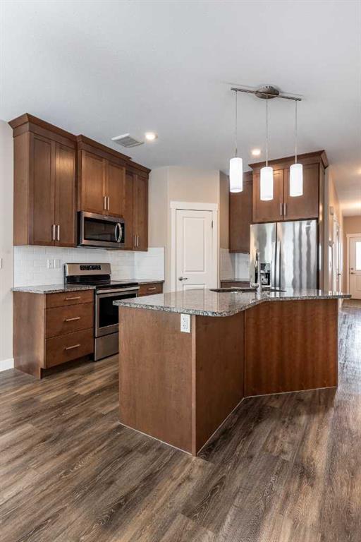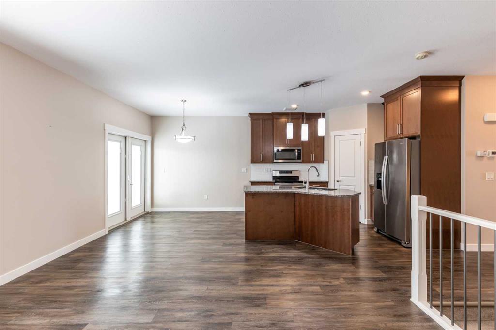 Welcome to Southlands Gate! This well-maintained 55+ adult community offers comfortable living with low-maintenance convenience. This beautiful home features 9' ceilings on both levels, a double attached garage, and two private decks to enjoy outdoor living. The open-concept main floor showcases a high end kitchen with ceiling height maple cabinetry, granite countertops, stainless steel appliances, and a walk-in pantry, perfect for cooking and entertaining. The primary bedroom includes a walk-in closet and a 3-piece ensuite. The main floor also offers a second bedroom, full bathroom, and convenient main-floor laundry. The fully developed lower level provides even more living space with a massive family room, third bedroom, full bathroom, and a den, ideal for guests, hobbies, or a home office. Condo fees are $220/month and include snow removal, landscaping, exterior maintenance, and reserve fund contributions. Pets are allowed with restrictions. Enjoy a quiet, welcoming community while still being close to all amenities.