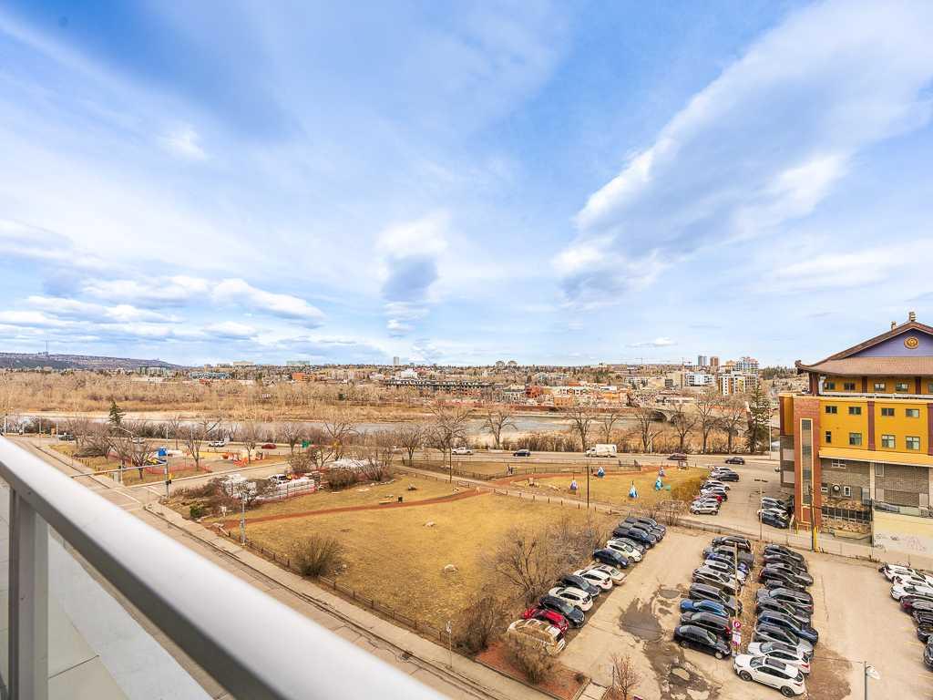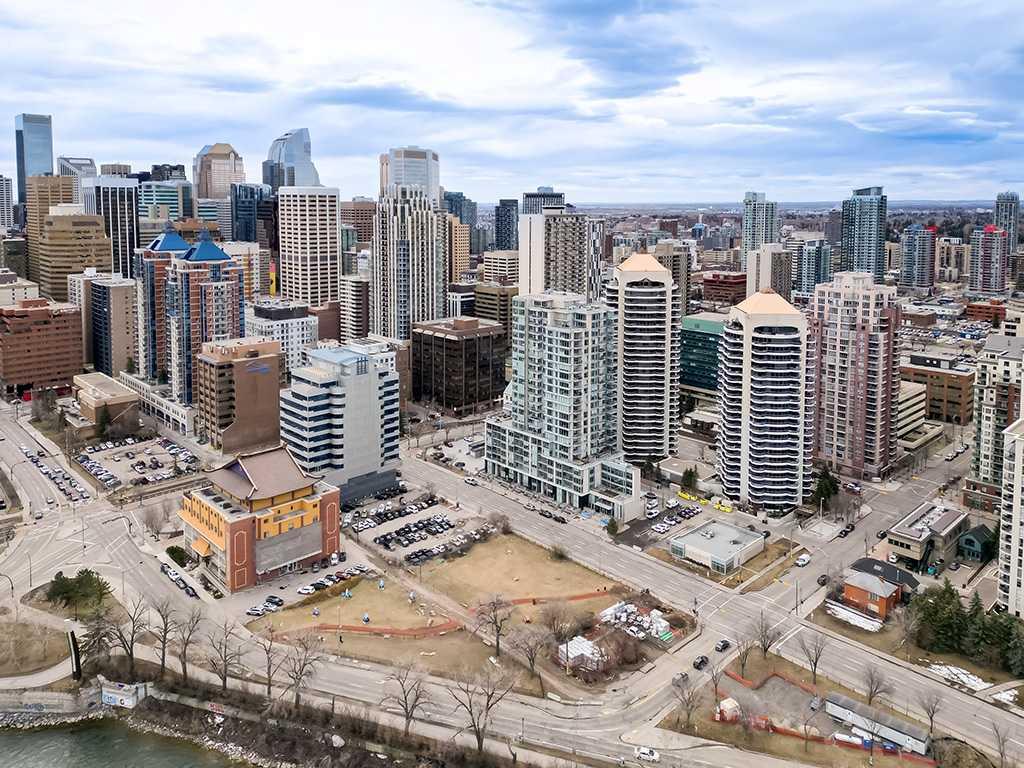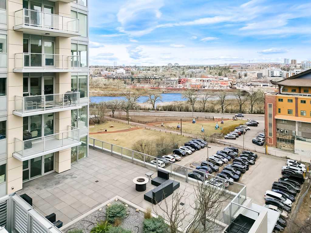 Welcome to this bright and spacious 2-bedroom, 2-bathroom condo in the sought-after Downtown West End. Featuring a massive private patio, this home offers exceptional indoor-outdoor living—perfect for entertaining or relaxing. The upscale interior is complete with rich hardwood flooring, quality carpet, air conditioning, and in-suite laundry. The gourmet kitchen is appointed with premium built-in appliances, including a built-in refrigerator, high-end 5-burner gas stove, built-in microwave, quartz countertops, and sleek modern cabinetry. Enjoy your private outdoor space with panoramic river and city views. The open-concept layout and split-bedroom design provide both functionality and privacy. Steps to the C-Train, Bow River pathways, and Kensington’s shops and restaurants. Full-service building with 24-hour concierge, fitness centre, dog wash, and bicycle workshop. Includes 2 titled side-by-side underground parking spaces, titled storage locker, and heated underground visitor parking. A rare opportunity to own a premium unit in one of Calgary’s upscale downtown buildings.