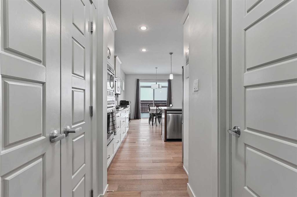 Welcome to this beautiful two-story home in the highly sought-after community of Copperwood. Thoughtfully designed and packed with premium upgrades, this 3-bedroom, 3-bathroom residence offers a perfect blend of comfort, style, and functionality. Step inside to a spacious entryway that sets the tone for the rest of the home. Rich hardwood floors and elegant tile flow throughout the main level, leading you into an open-concept living and dining area framed by stunning mountain views. A cozy gas fireplace adds warmth and charm, creating the ideal setting for family gatherings or quiet evenings in. The gourmet kitchen is a true centerpiece, featuring an oversized island, extended cabinetry, custom blinds, a built-in oven, and a gas cooktop range. The adjacent boot room provides convenient storage for coats, shoes, and everyday essentials while a main floor office behind barn doors gives you accessibility and privacy. Spindle railings add architectural interest as you take the stairs to the upper level. The upper bonus family room overlooking the front views of the home can be a tv room or play room for the kids. The primary suite offers a private retreat complete with a gorgeous 5 piece ensuite and a spacious walk-in closet. Two additional bedrooms and an additional bathroom provide ample room for family or guests. Here you will find the laundry room, making it easy to access for the family's needs. The undeveloped basement is a blank canvas, ready for you to transform into the space of your dreams — whether that’s a home theatre, gym, playroom, or additional living area. With its exceptional features, modern upgrades, and unbeatable location, this Copperwood property is the perfect place to call home.
