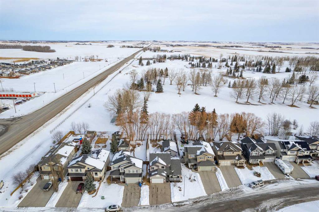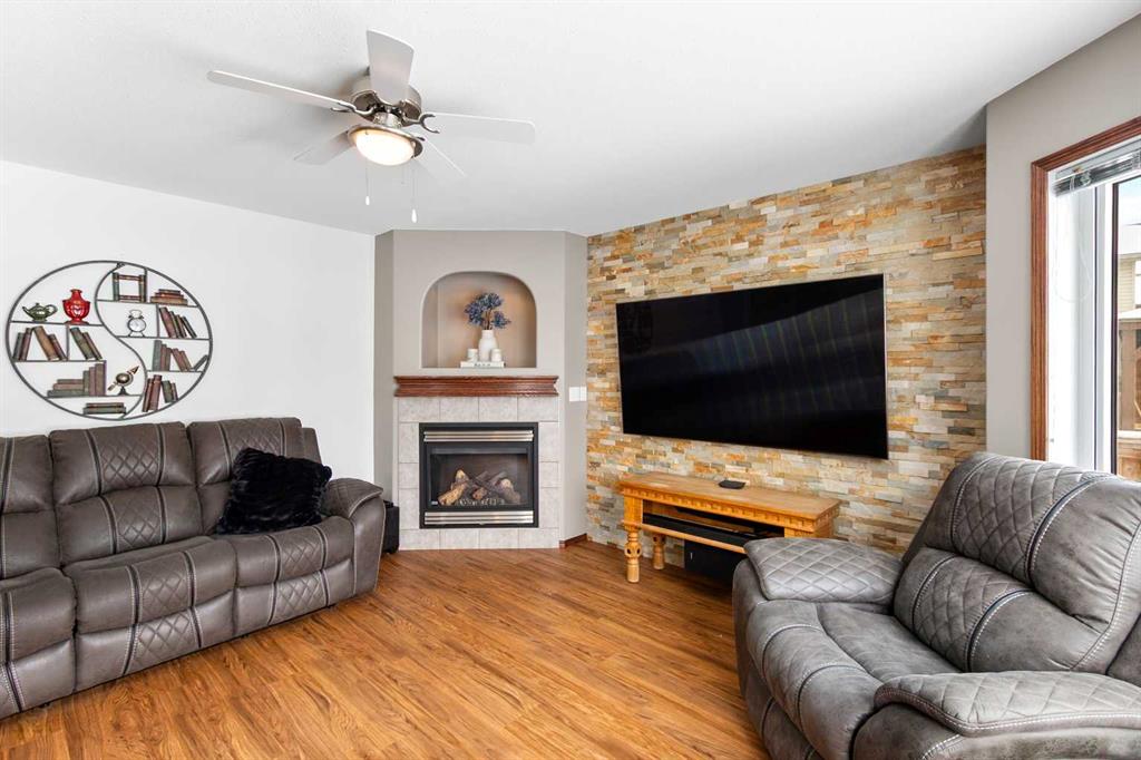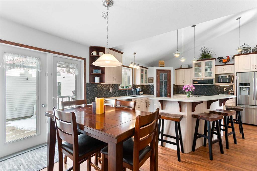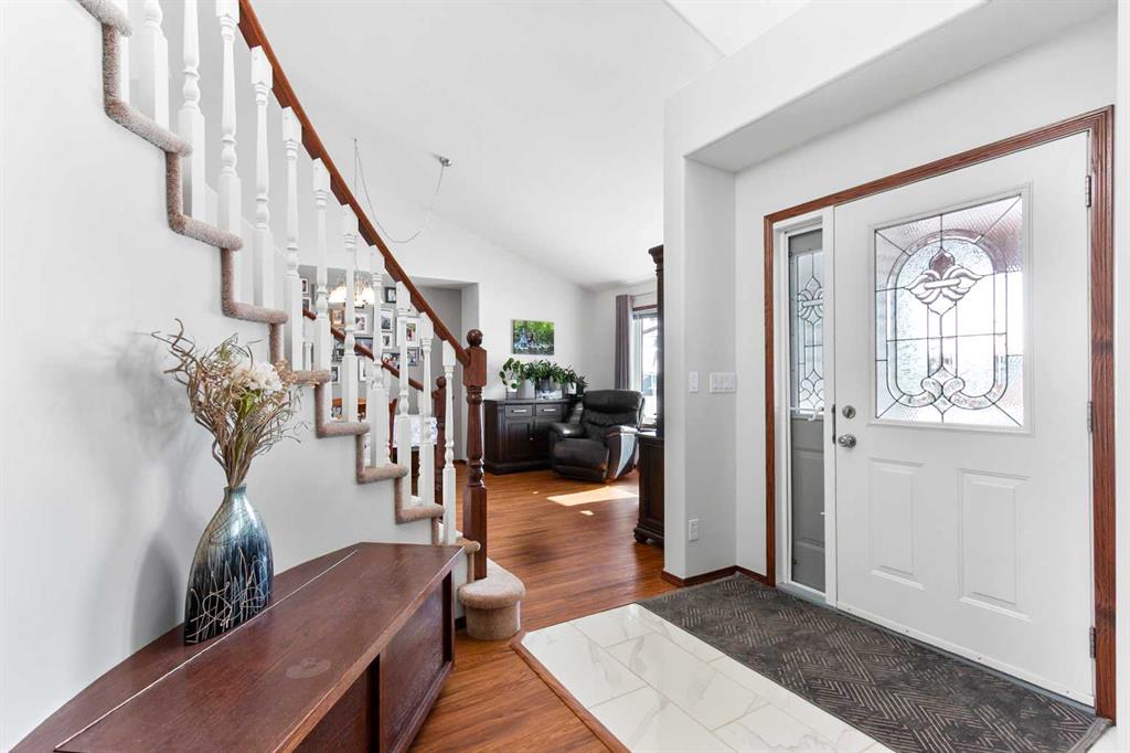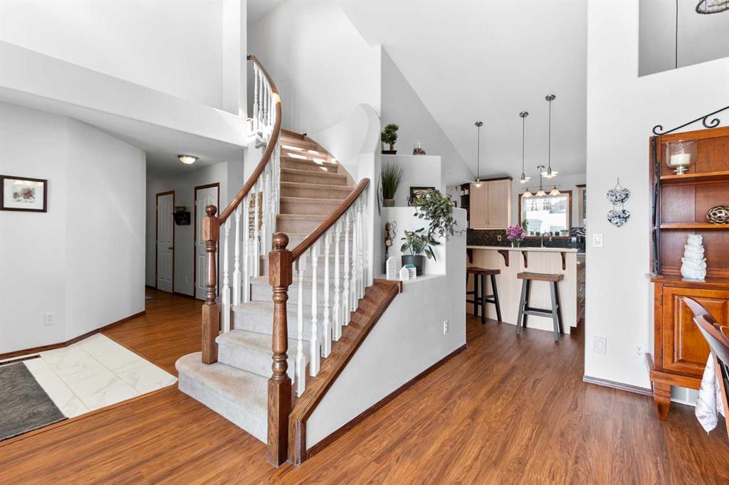 Wonderful family home on a spacious 53 x 150 ft. lot backing directly onto the CARSTAIRS GOLF COURSE. This immaculately maintained 2-owner BUNGALOW/ SPLIT HOME offers exceptional living space with a formal living and dining room, a bright great room, and a stunning COUNTRY KITCHEN featuring vaulted ceilings, a massive ISLAND quartz countertops, corner PANTRY, and a generous dining nook. The inviting family room showcases a striking feature wall & a GAS FIREPLACE, while MAIN FLOOR LAUNDRY adds convenience. A beautiful curved staircase leads to the upper level where you’ll find a large primary retreat with a 5-piece ENSUITE + WALK IN CLOSET, plus two additional spacious bedrooms and a 4-piece bathroom. The massive undeveloped basement provides endless potential for future development. As an added bonus, the property includes a separate heated 20 x 32 ft. DETACHED WORKSHOP/GARAGE + DOUBLE ATTACHED GARAGE with 8 ft. side access from the street, along with RV parking. The fully fenced yard features mature LANDSCAPING, fruit trees, garden boxes, a patio, and backs onto peaceful golf course views. Ideally located just 20 minutes to Airdrie and 30 minutes to CrossIron Mills, this property offers small-town charm with convenient access to major amenities — a wonderful place to call home.