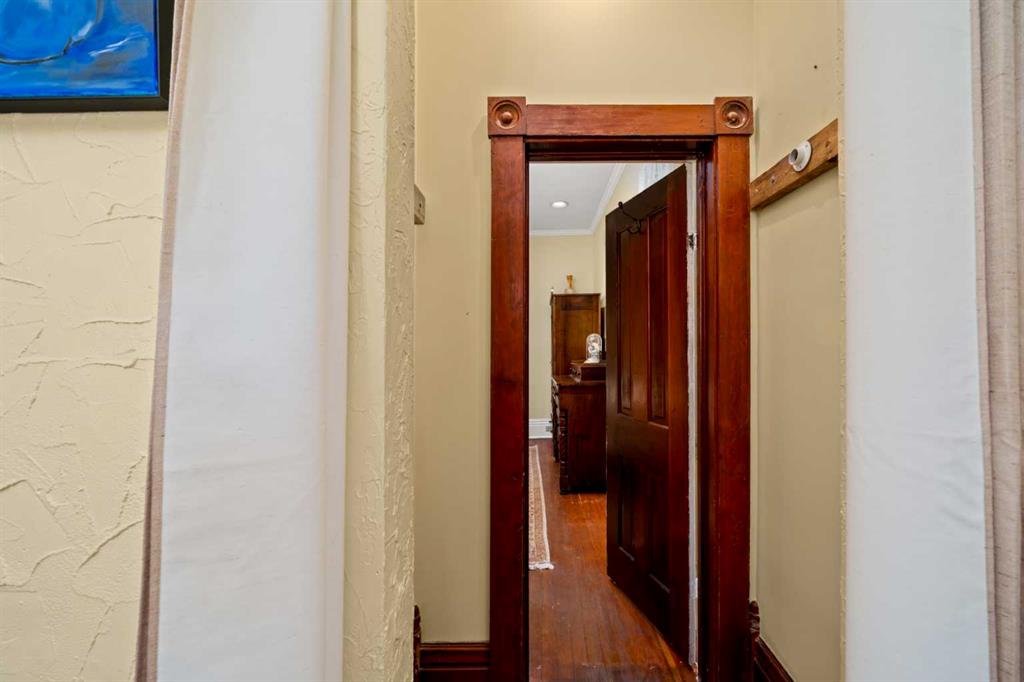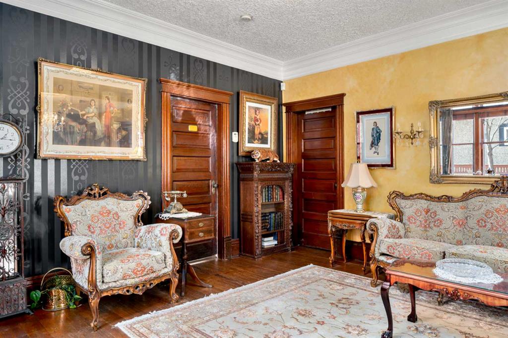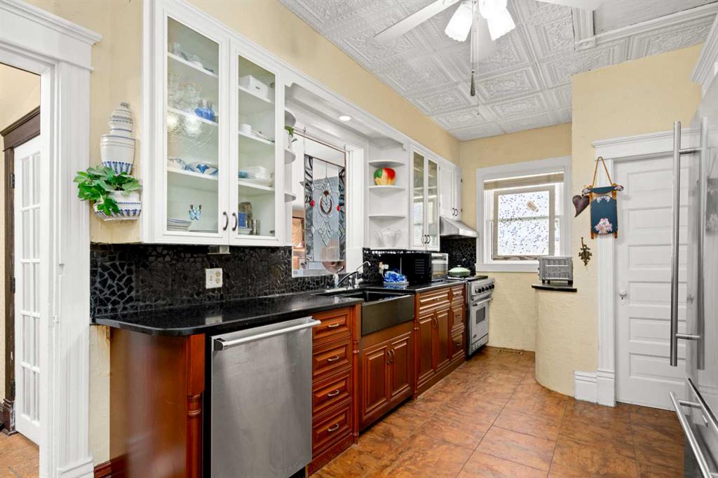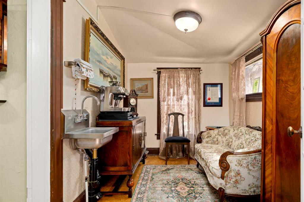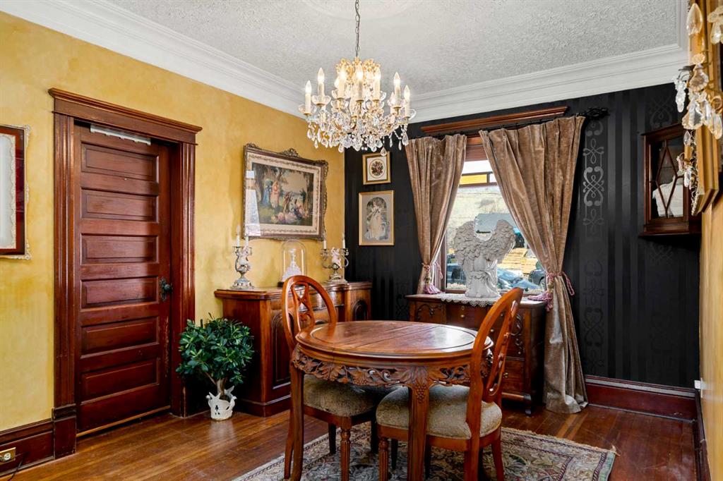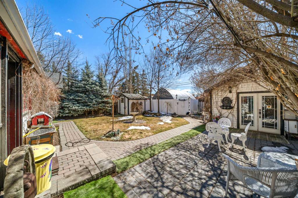 A rare heritage gem in the heart of downtown Okotoks Set along Elma, a charming tree lined street, this storybook home is filled with timeless character and endless possibility. Once home to a boutique salon and antique store, this property lends itself beautifully to a variety of uses including a residence, retail, office space, café, tea house, restaurant, salon or bed and breakfast. Original hardwood floors, vintage doors and hardware, and stunning stained glass windows create a sense of warmth and history the moment you step inside. The main living space is bright and open, flowing seamlessly into a thoughtfully updated kitchen complete with granite countertops, stainless steel appliances, and a gas range. There are two flexible spaces perfect for hobbies, work from home, or creative pursuits. The front bedroom is especially unique, featuring its own exterior entrance and a convenient two piece bath, making it ideal for a home based business or private client space. Tucked into the garden, the detached guest quarters offer in floor heat and their own private patio, surrounded by greenery. A truly special space for visitors or future opportunity. Romantic, whimsical, and rich with character, this is more than a home, it is an opportunity to be part of Okotoks history while creating something truly special of your own. Showings are now underway. We warmly invite you to book your private viewing and experience the home and its endless possibilities firsthand.