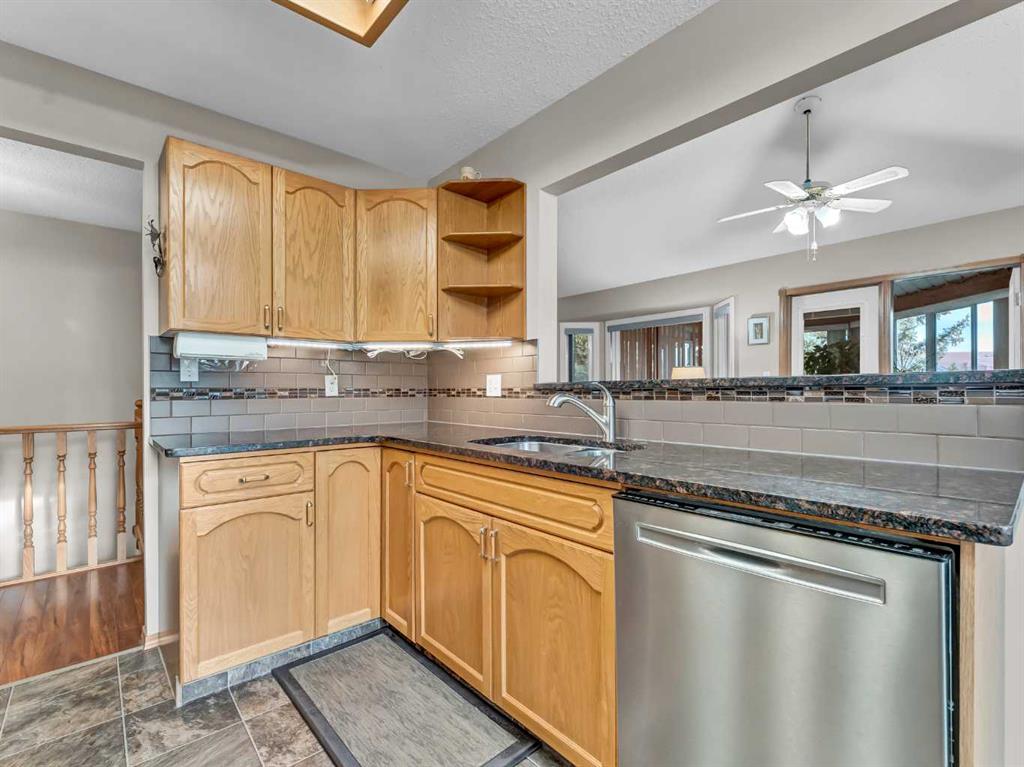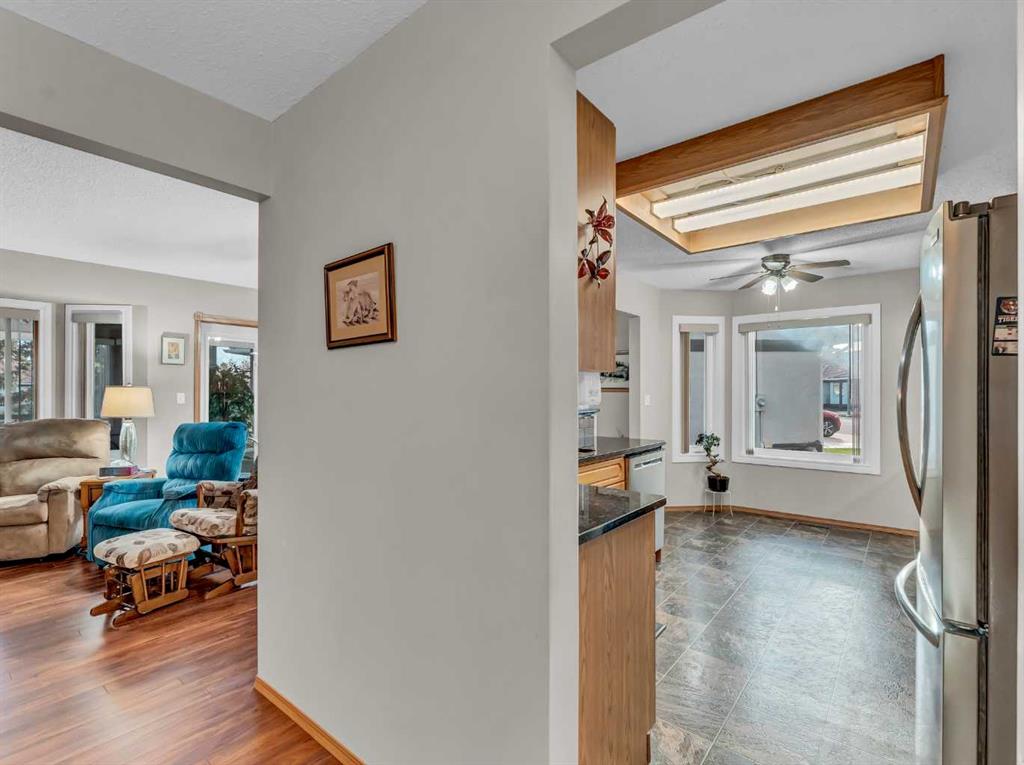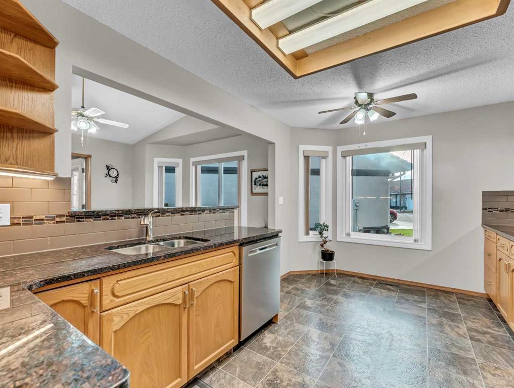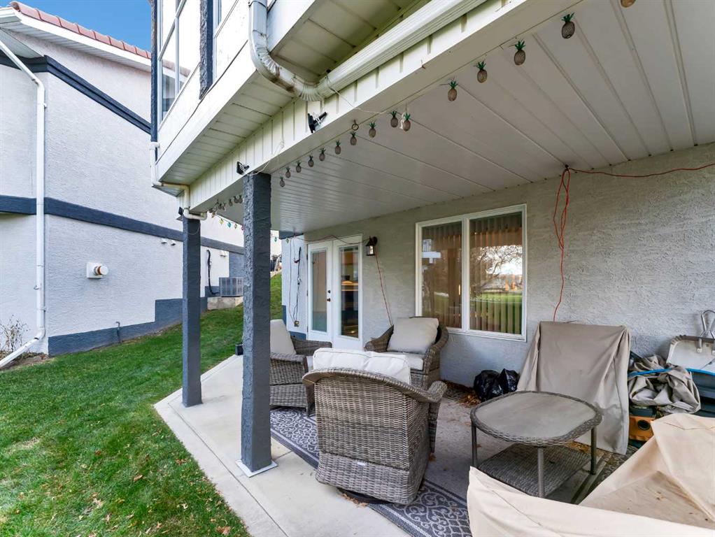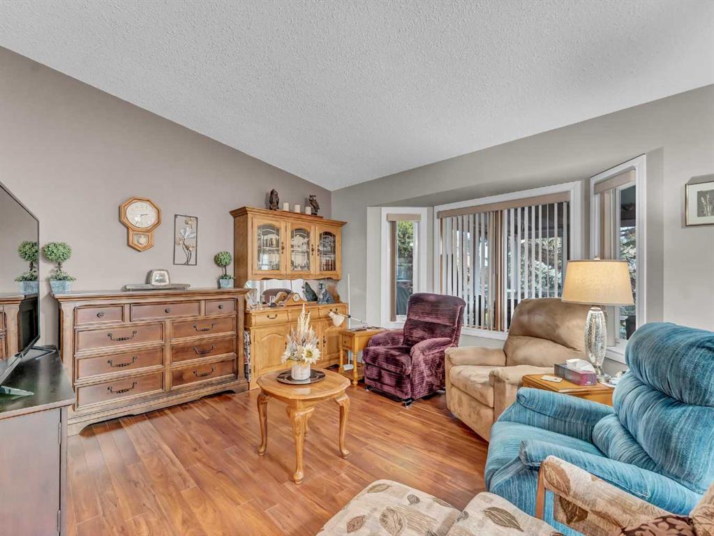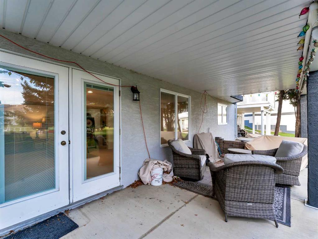 Spacious and inviting, this 1,324 sq. ft. half-duplex is located in the highly desirable, executive 55+ bareland condominium community of Park Meadows Estates. This well-kept bungalow offers a walk-out basement and backs onto the gorgeous park, providing beautiful views and a serene setting. A double attached heated garage, updated windows throughout, a newer hot water tank, a brand-new high-efficiency furnace, comfort-height toilets, and new taps allow you to simply move in and enjoy. Inside, a large front entry welcomes you into the home. To your left sits the generous primary bedroom complete with a 3-piece ensuite and walk-in shower. The kitchen features granite countertops, a newer stainless steel appliance package, and a charming nook perfect for an eat-in area, coffee bar, or bistro table. Adjacent to the kitchen is the spacious formal dining room and living room, with access to a partially enclosed, partially open deck ideal for relaxing or BBQing. Down the hall you’ll find a 4-piece main bathroom, convenient main-floor laundry, and an additional well-sized bedroom. The bright walk-out basement offers abundant natural light, a cozy gas fireplace, a wet bar, and access to a lovely covered patio area. A versatile room with a closet—perfect for a den, office, or craft room—a 3-piece bathroom, and ample storage complete the lower level. This beautifully maintained home offers comfort, convenience, and an unbeatable location.