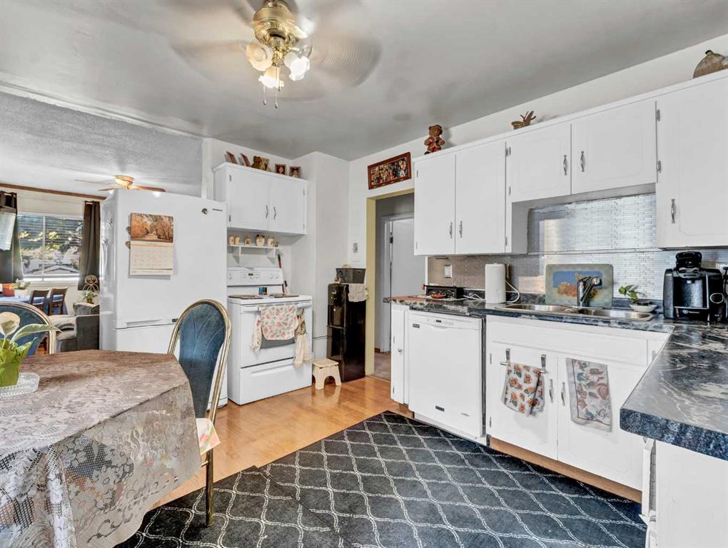 Fantastic revenue or starter home with two garages! Centrally located and within walking distance to many great amenities, this home offers excellent value and versatility. The main floor features two bedrooms, beautiful hardwood flooring, a spacious living room, and a functional kitchen and dining area with ample cabinetry and a full appliance package. The basement includes two additional spacious bedrooms, a laundry area, plenty of storage, and a generous family or recreation space. Outside, you’ll find a fully fenced and landscaped yard with a lovely garden, mature trees and shrubs, plus not one—but two garages: a newer 24’ x 26’ detached garage and a 12’ x 19’10” garage/workshop. Connect with an agent today to book your private viewing!