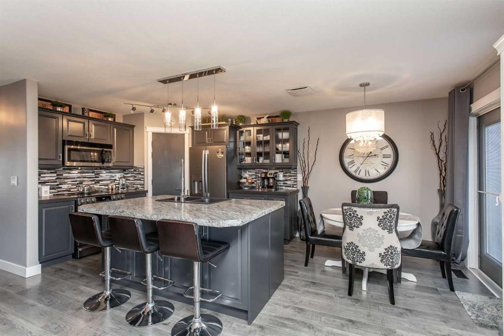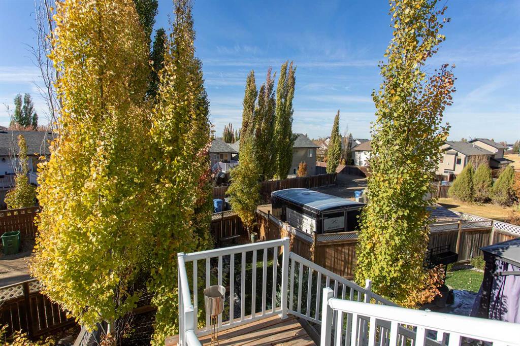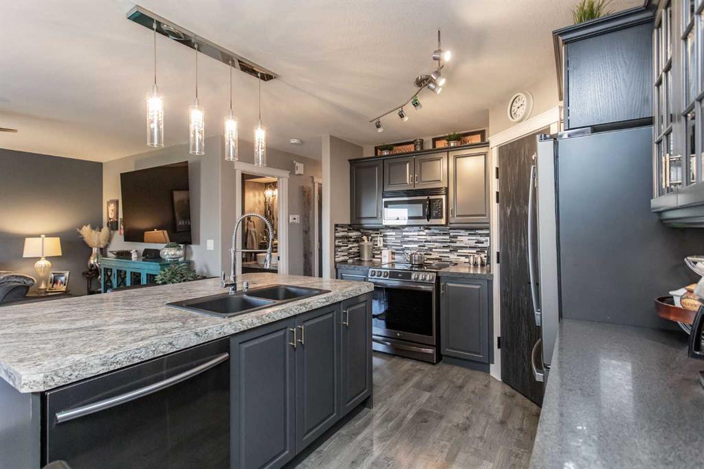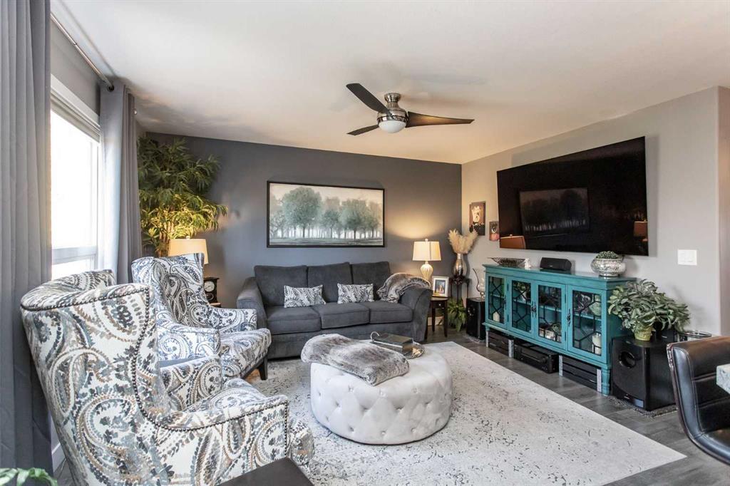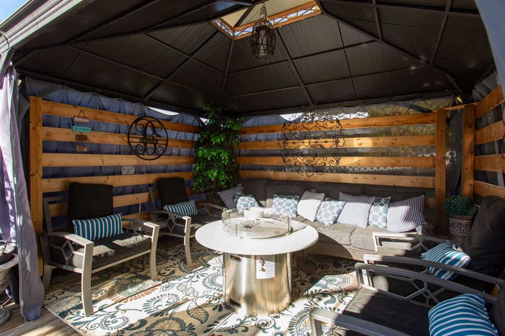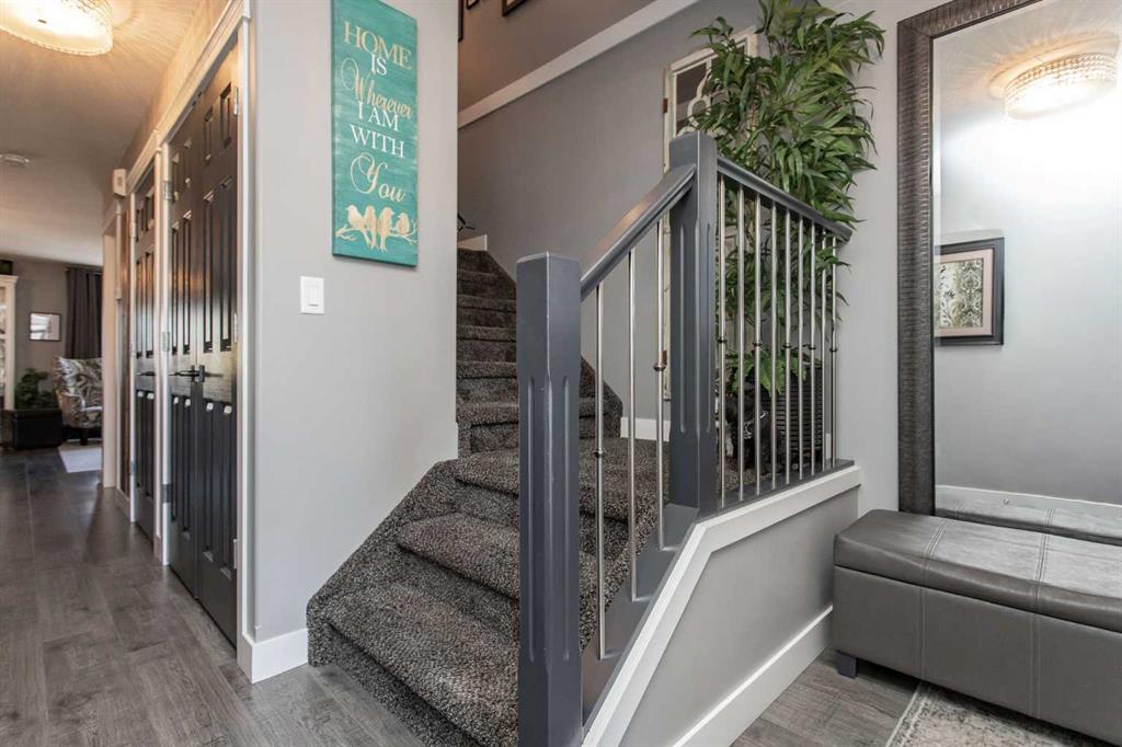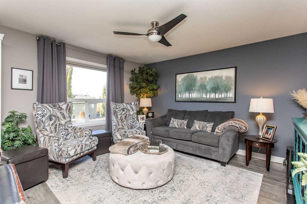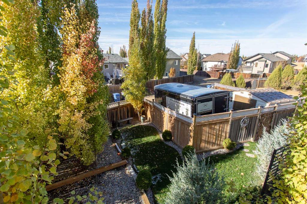Welcome to 82 Arthur Close a beautifully upgraded home showcasing exceptional style and thoughtful design throughout. The kitchen is a true showpiece, featuring new charcoal cabinetry with glass display, under-cabinet lighting, a walk-in corner pantry with spice organizer, granite sink, pull-out drawers, and a large island with extra storage. You'll love the new stainless-steel LG convection range with air fry, GE Profile fridge, and Samsung 3-level dishwasher. The living room offers laminate flooring, up/down blinds, and a remote ceiling fan for comfort. Upstairs, the luxurious bathroom includes a heated porcelain tile floor, live-edge wood vanity, matte black fixtures, a 5' tiled shower with rain head, and a heated/lighted toilet seat. The primary bedroom impresses with a shiplap ceiling, board and batten feature wall, remote zebra blinds, "Fandelier", and custom his-and-hers closets. Two additional bedrooms are equally well-finished with custom closets and designer details. A convenient upper laundry area features built-ins, pull-out hampers, and a live-edge folding counter. The basement adds even more versatility with laminate flooring, wet bar, full bath, and a walkout with new door and side light. Outside, enjoy low-maintenance xeriscaping, a golf-green lawn area, two-tier deck with gazebo, two sheds, and RV parking. The attached single garage is insulated and heated with 220 V power. Additional updates include new shingles (4 yrs), upgraded attic insulation, 2.5 ton central air, newer water heater, humidifier, and keypad entries with high-tech front and rear cameras. Stylish, functional, and move-in ready this home offers it all!