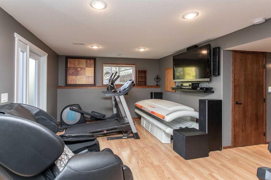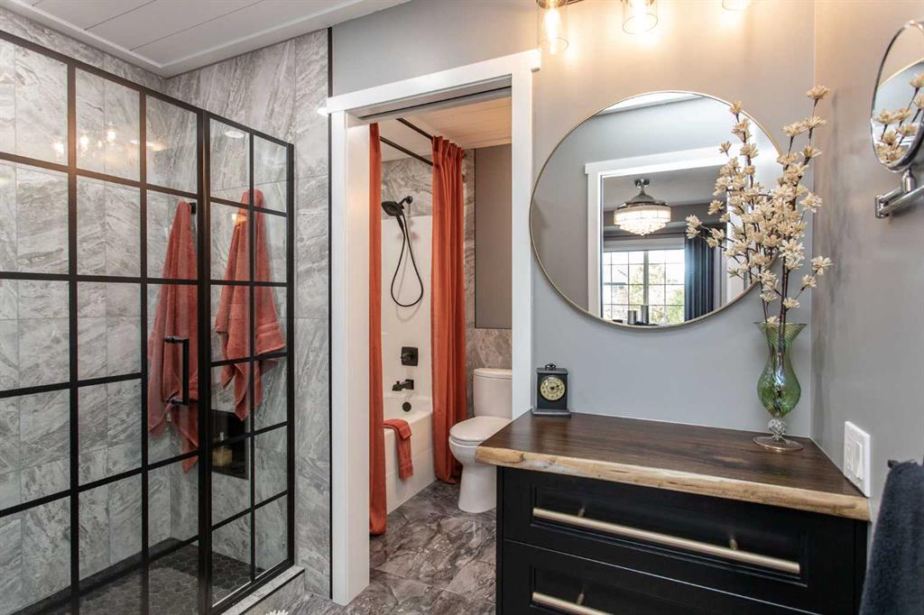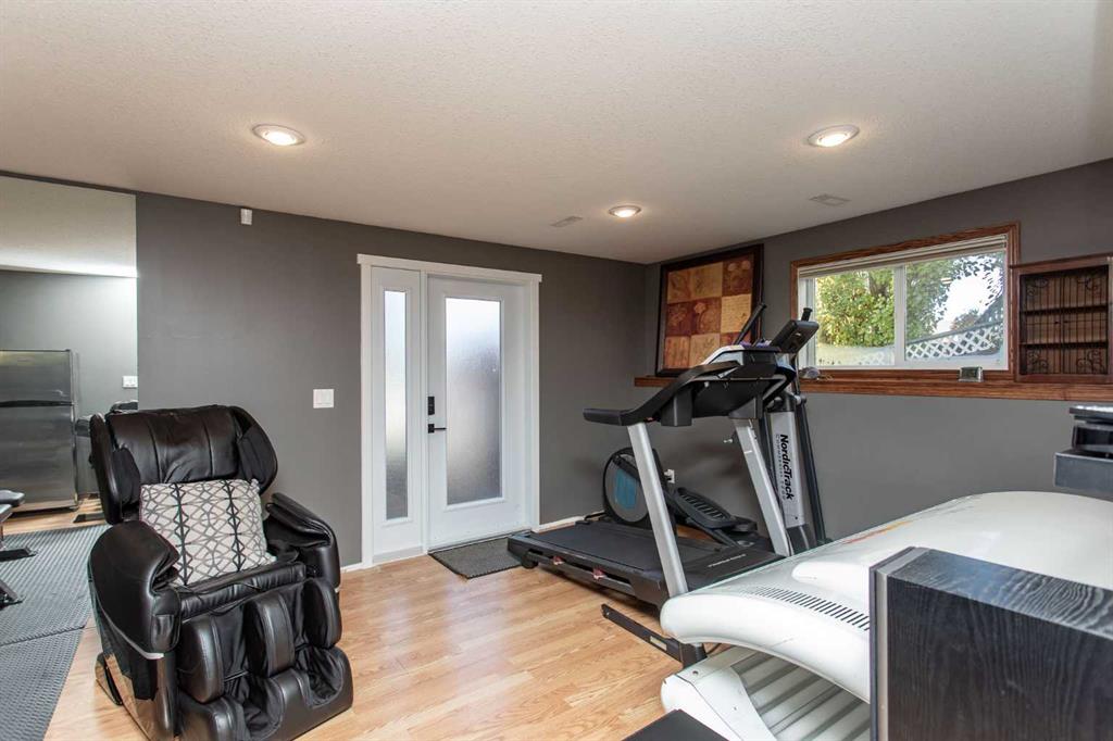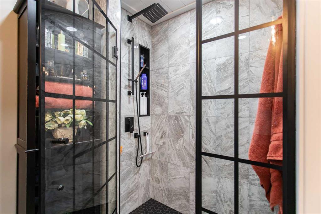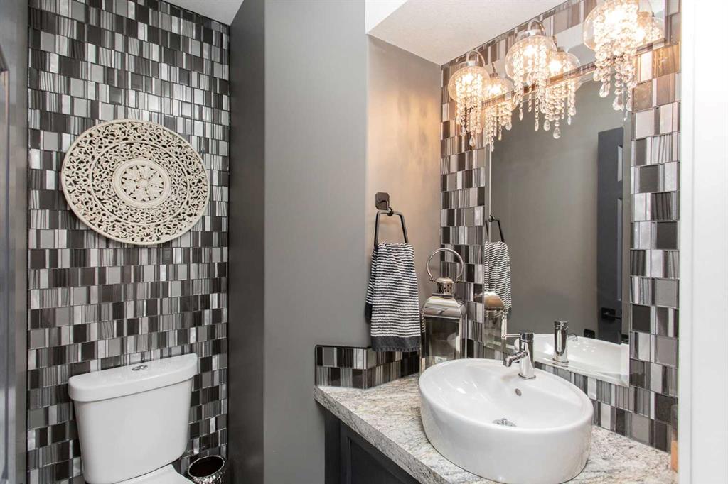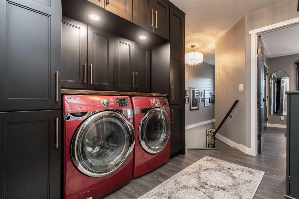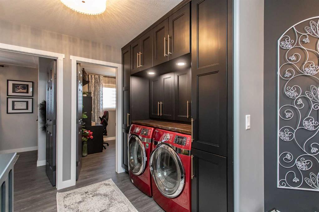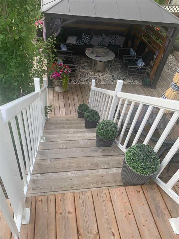 Welcome to 82 Arthur Close a beautifully upgraded home showcasing exceptional style and thoughtful design throughout. The kitchen is a true showpiece, featuring new charcoal cabinetry with glass display, under-cabinet lighting, a walk-in corner pantry with spice organizer, granite sink, pull-out drawers, and a large island with extra storage. You'll love the new stainless-steel LG convection range with air fry, GE Profile fridge, and Samsung 3-level dishwasher. The living room offers laminate flooring, up/down blinds, and a remote ceiling fan for comfort. Upstairs, the luxurious bathroom includes a heated porcelain tile floor, live-edge wood vanity, matte black fixtures, a 5' tiled shower with rain head, and a heated/lighted toilet seat. The primary bedroom impresses with a shiplap ceiling, board and batten feature wall, remote zebra blinds, "Fandelier", and custom his-and-hers closets. Two additional bedrooms are equally well-finished with custom closets and designer details. A convenient upper laundry area features built-ins, pull-out hampers, and a live-edge folding counter. The basement adds even more versatility with laminate flooring, wet bar, full bath, and a walkout with new door and side light. Outside, enjoy low-maintenance xeriscaping, a golf-green lawn area, two-tier deck with gazebo, two sheds, and RV parking. The attached single garage is insulated and heated with 220 V power. Additional updates include new shingles (4 yrs), upgraded attic insulation, 2.5 ton central air, newer water heater, humidifier, and keypad entries with high-tech front and rear cameras. Stylish, functional, and move-in ready this home offers it all!