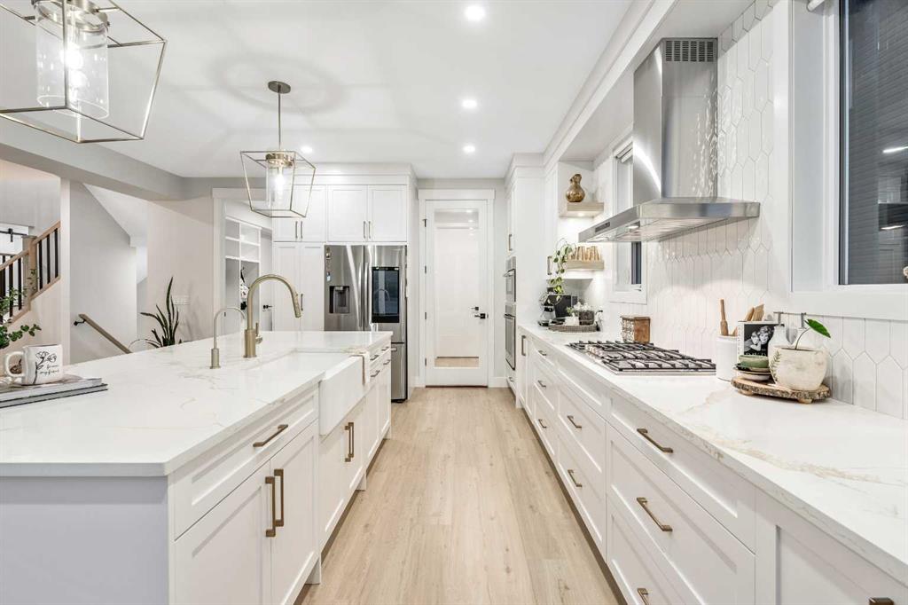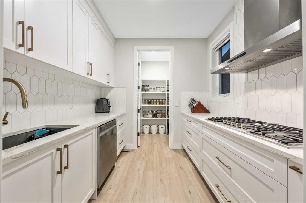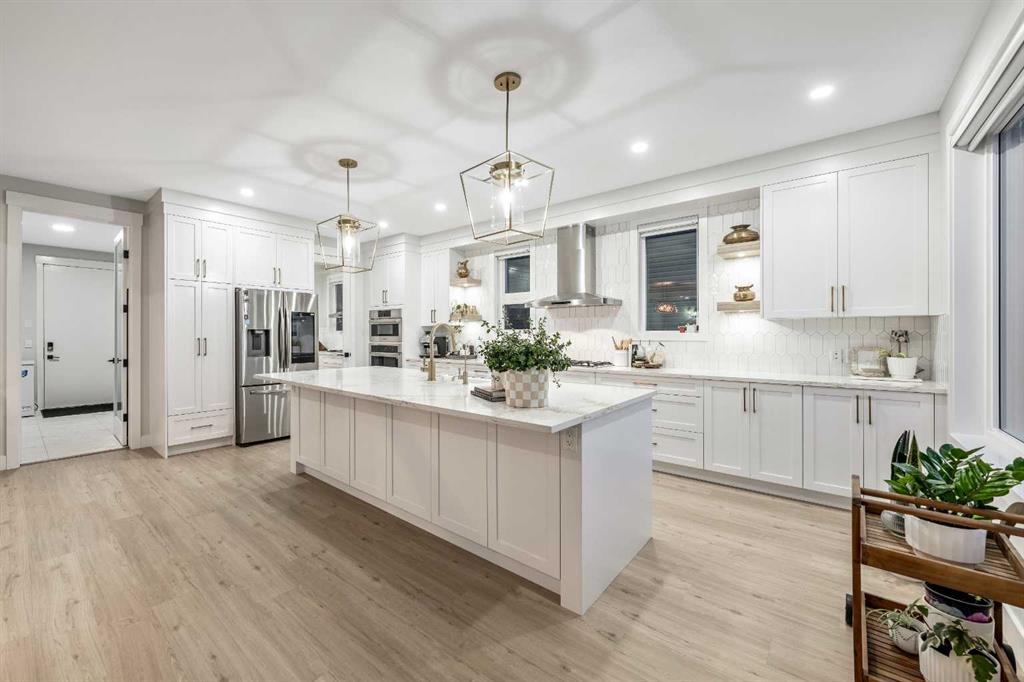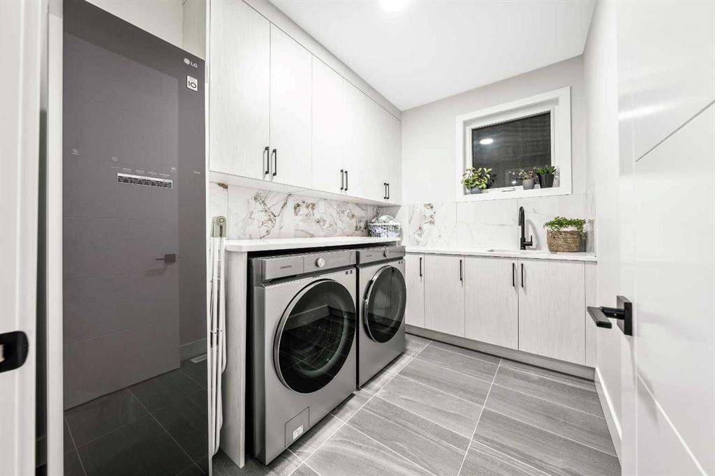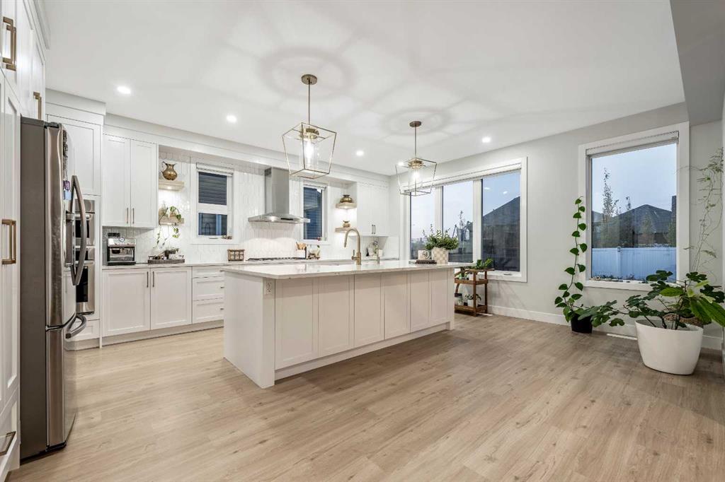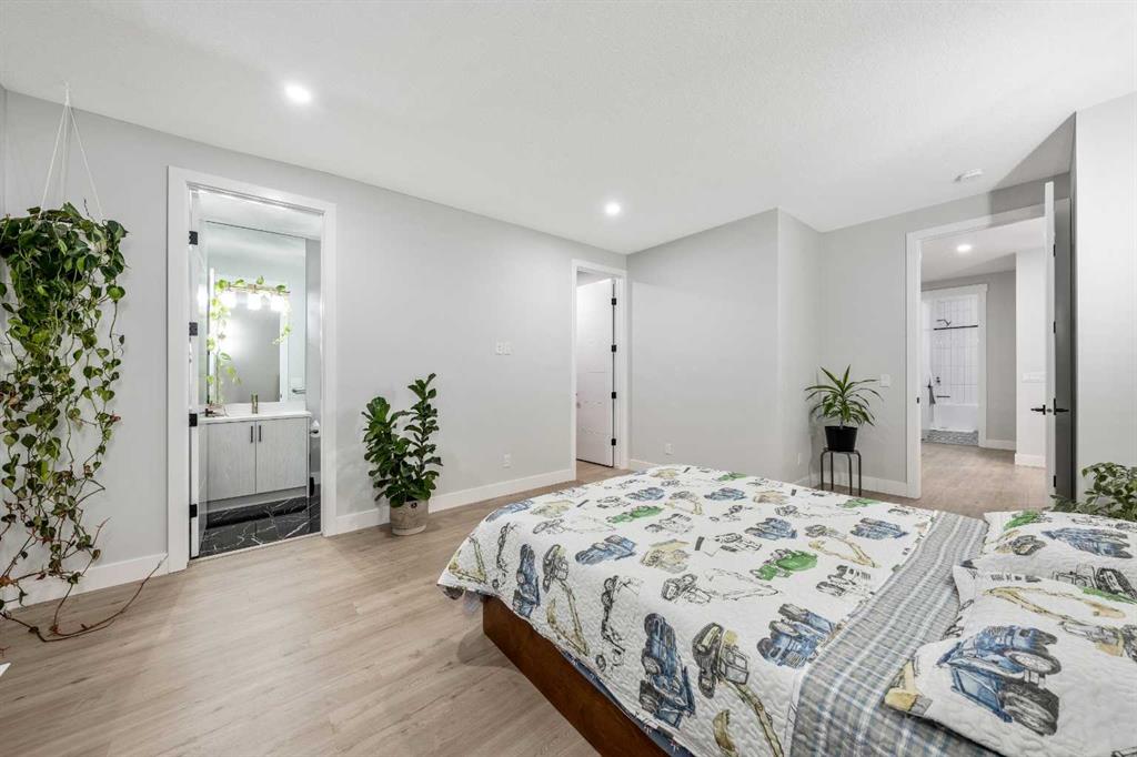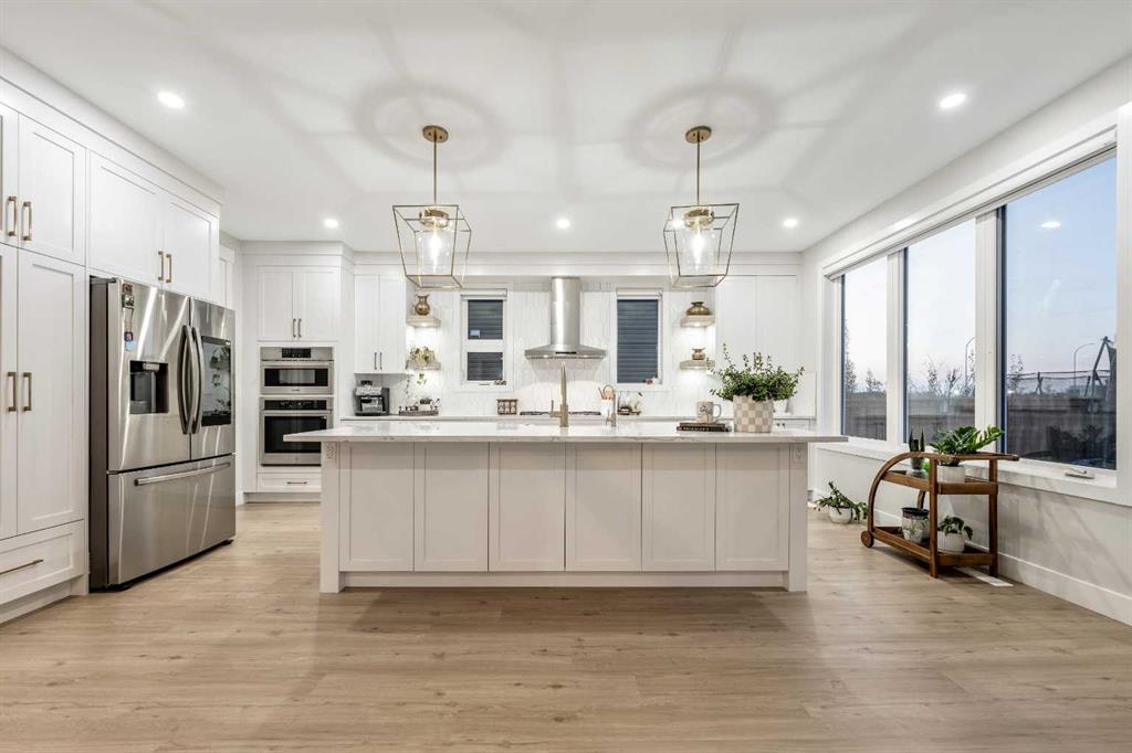 The moment you arrive, this home presents a striking first impression—with its exposed-concrete driveway, stairs and porch, the yard is fully landscaped and the underground sprinkler system is WiFi-connected, ensuring effortless curb appeal. The TRIPLE ATTACHED GARAGE is ideal for all the toys, adding to the sense of scale and functionality to this grand home. Step through the entry into the main level, where SOARING 9-FOOT CEILINGS and a thoughtful design greet you. A LUXURIOUS GAS FIREPLACE is set between the built-in side shelves which brings warmth to the living room. The living room flows naturally into a large formal dining space that connects out to the backyard deck. The heart of the home is its dream kitchen—anchored by a massive island, rich cabinetry, and a large SPICE KITCHEN with walk-in pantry. A versatile flex room gives you room for a home office or play area, and a full bathroom lends everyday convenience to the level. Throughout the home, motorized blinds offer elegant control of light and privacy, while tall 8-foot doors trimmed in bold black handles and hinges add architectural drama. Underfoot, luxury vinyl flooring runs seamlessly across the entire level, anchored by 5-inch baseboards and 5-inch header trims. On the upper level, you’ll discover four generous bedrooms and a thoughtful layout for practicality and comfort. The primary suite is a sanctuary, with a large walk-in closet and spa-inspired 5-piece ensuite, complete with premium finishes. One secondary bedroom enjoys its own 4-piece ensuite, while the other two bedrooms share a beautifully appointed 4-piece bath. A bonus room opens to its own balcony, offering a quiet retreat or reading nook. The upper floor also features an expanded laundry room equipped with a sink and steam closet to make chores easier—and all washrooms are enhanced with upgraded gold faucets, shower heads, and lighting fixtures. Quartz countertops and stylish shaker-style cabinetry carry through here and throughout the home for continuity of quality and finish. Descend to the fully finished walk-up basement, complete with a separate entry and concrete steps to the backyard. Here, you’ll find two bedrooms, a den (convertible to a third bedroom), a wet bar area and a full 4-piece bathroom. A spacious recreation room and wet-bar area make this ideal for entertaining, relaxing, or even accommodating extended family. A second future laundry station provides complete independence from the rest of the home. Backyard is fully fenced, landscaped with irrigation and is the perfect place to gather with friends and family. With every detail considered—from exterior presence through interior elegance and flexible living spaces—this almost new Langdon home offers a rare combination of scale, design, and livability. Contact us today to schedule your private showing.