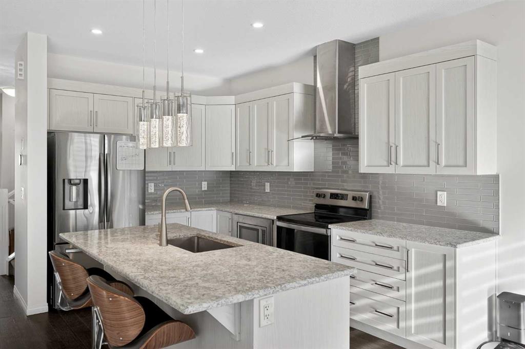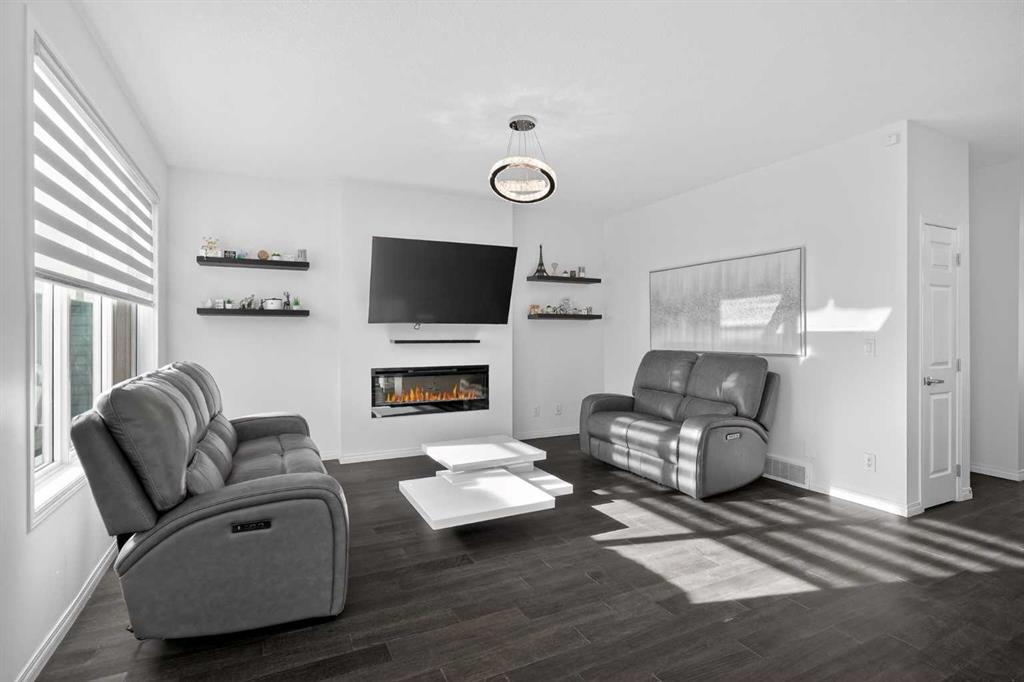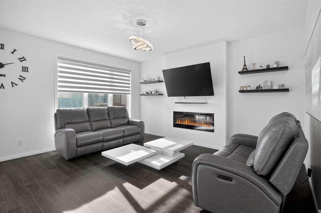 Welcome to this stunning 2019-built two-storey home offering modern design, thoughtful upgrades, and functional living space throughout. With 3 bedrooms, 2.5 bathrooms, and a FRONT-ATTACHED garage, this detached home blends comfort and style in an ideal family-friendly setting. Step inside to a bright, open-concept main floor filled with natural light from expansive windows. The spacious living room is anchored by a cozy FIREPLACE, creating a warm and inviting focal point for relaxing evenings or gathering with family and friends. The living area flows seamlessly into a beautifully upgraded kitchen featuring QUARTZ countertops, a striking backsplash, a large central island, upgraded electric range, built-in microwave, chimney-style hood fan, dishwasher, and ample cabinetry — perfect for both everyday living and entertaining. Upstairs, you’ll find 3 bedrooms including a well-appointed primary retreat complete with a spa-inspired 5-piece ensuite featuring quartz countertops, a DUAL VANITY, and a freestanding SOAKER TUB, along with a walk-in closet. A convenient upper-level laundry room with additional storage and a full 4-piece bathroom complete the second floor. The basement is currently undeveloped but fully functional, offering excellent potential for future development - whether you envision a recreation room, additional bedroom, or home gym. It’s a clean slate ready to grow with your needs. Enjoy sunny mornings on the oversized FRONT PORCH and appreciate the protection and convenience of the attached garage. Stay comfortable through every season with CENTRAL AIR CONDITIONING to keep you cool during the summer months. Located close to Windsong Heights School, Northcott Prairie School, and W.H. Croxford High School, this home is surrounded by incredible amenities. Chinook Winds Regional Park, splash parks, tennis courts, skating rinks, pathways, shopping, and daily conveniences are all just minutes away. A move-in-ready home with room to grow, in a vibrant and connected community, this one truly deserves a spot on your must-see list.
