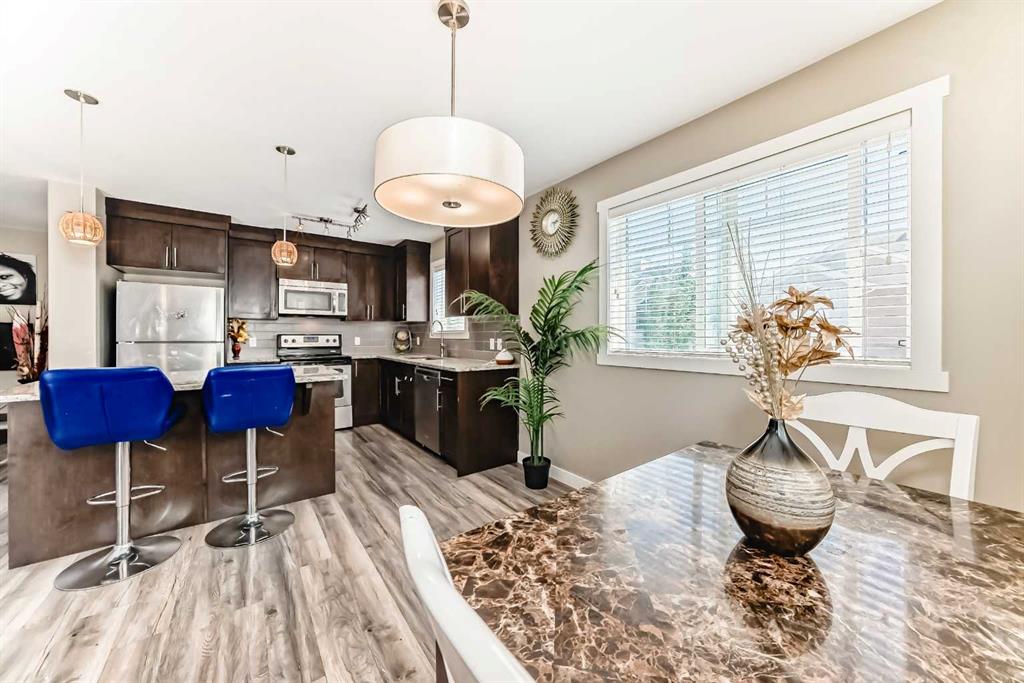 ***Spacious End Unit Townhouse with 1,658 Sq. Ft. of Modern Design*** This end-unit townhome offers 1,658 sq. ft. of thoughtfully designed living space, combining comfort, style, and functionality. Highlights include: Attached garage with ample storage Main floor den, ideal for a 4th bedroom, bonus room, or home office Open-concept living room flowing into a modern kitchen with stainless steel appliances and generous cabinetry Private balcony that fills the space with natural light Convenient laundry area near a 2-piece bathroom with built-in storage solutions Primary bedroom with vaulted ceiling, walk-in closet, and 3-piece ensuite Two additional bedrooms providing flexibility for family, guests, or work-from-home needs This family-friendly complex is ideally located near top-rated schools, playgrounds, restaurants, and shopping, with Calgary Airport only 10 minutes away. Quick access to Stoney Trail ensures easy commuting across the city. This home delivers a modern lifestyle along with excellent investment potential. Schedule your showing today.
