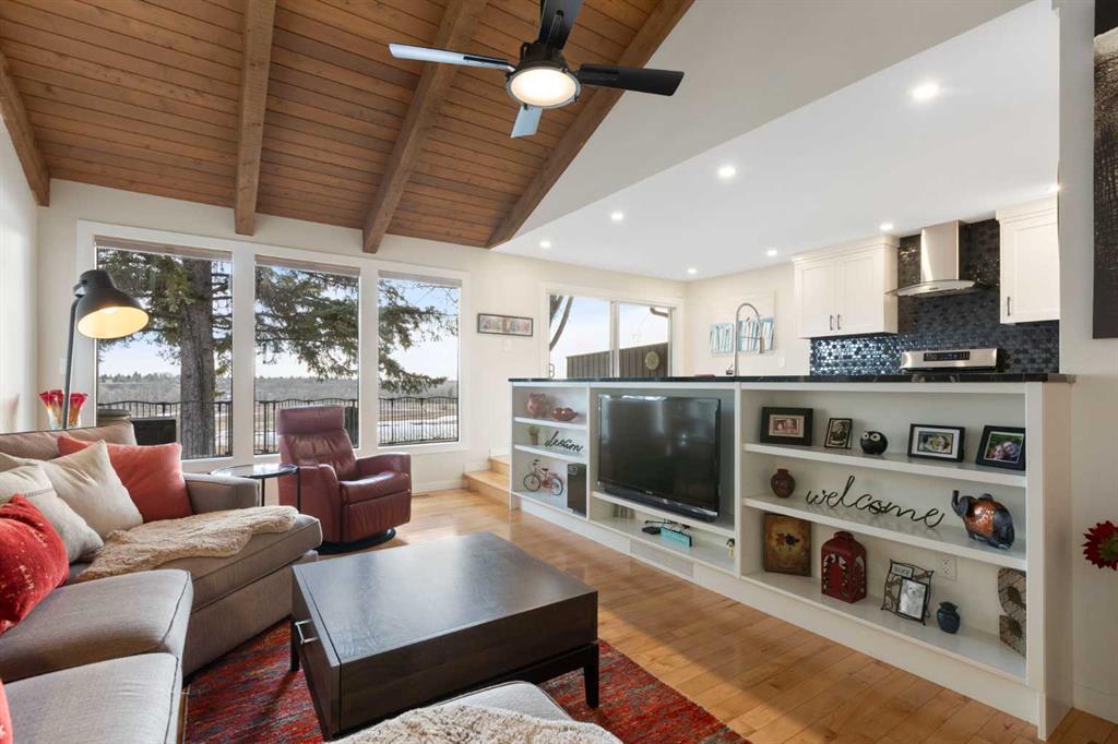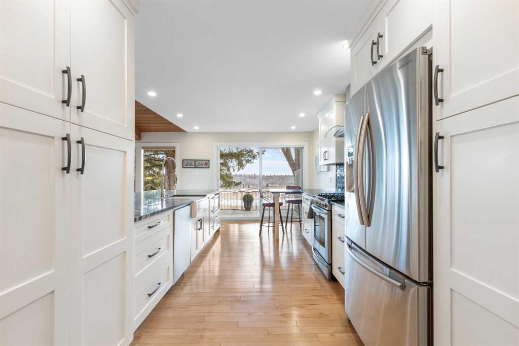 You will find exceptional value in this renovated, one and half storey, bungalow with loft home in the sought-after neighbourhood of Midnapore! Not only do you have access to Lake Midnapore and its amenities, but you also have a one-of-a-kind opportunity to live on a ridge, backing directly onto Fish Creek Provincial Park, with spectacular views, all at an affordable price. This 2 bedroom, 3 bathroom home features over 1,850 sqft and is well cared for with thought put into every upgrade and detail. To enter the home, you will first pass by the double attached garage into a small courtyard space. As you enter the front door, you will immediately notice maple hardwood flooring throughout. As you head into the home, you will enter a beautiful open-concept kitchen with high end granite countertops, a large 12-foot island with custom built shelving, upgraded stainless steel appliances, and pantry. The family room features vaulted wood slat ceiling, multiple windows facing Fish Creek and allowing for natural light, and a gas fireplace – all of which make it easy to entertain and gather with family and friends. Head down the hallway, where you will find a large primary bedroom with double closets featuring custom shelving and a renovated, 5-piece bathroom featuring a double vanity with quartz countertops, and heated tile flooring. Finishing off the main floor is a second bedroom, 3-piece main bathroom and dining room. Upstairs, an impressive loft with vaulted ceilings features a bonus room and additional office space with built in desk/cabinets. Heading downstairs, the 1,300 sqft, partially finished basement includes a 3-piece bathroom, a vearsatile living space that can be converted into a large recreation area, and over 500 sqft of utility and storage area. Finally, head onto your back deck and enjoy the remarkable views and access to Fish Creek Provincial Park, an absolute luxury that you will enjoy all year long! Additional upgrades to the home include a new furnace (~2024), hot water tank (~2025), dishwasher (~2022), carpet (~2021), and almost all new windows (~2021). Do not miss out on this opportunity!