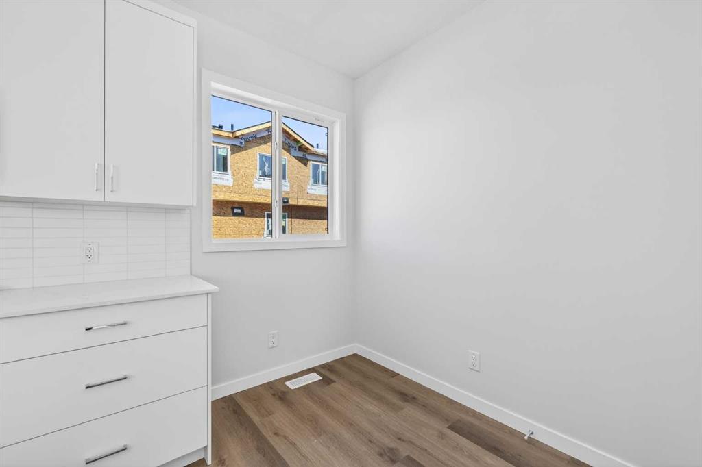 OPEN HOUSE on Saturday AND Sunday from 12-5pm. Please go to the Show Home located at 613-132 Red Embers Link NE for access. StreetSide proudly presents this exceptionally popular End-unit townhome, where expansive living areas meet modern comforts and sophisticated finishes. The thoughtfully designed floorplan features three spacious upper-level bedrooms and two and a half well appointed bathrooms, complemented by a versatile tech station on the main floor that is perfect for a workspace. The heart of the home is an inviting open-concept main floor, anchored by a large gourmet kitchen featuring a functional breakfast bar for casual dining. This bright living space transitions seamlessly to a private balcony, offering a perfect setting for outdoor relaxation. The interior showcases high end craftsmanship, including modern white slab-style cabinetry with a full bank of drawers for maximum storage. The kitchen is further elevated by polished white quartz countertops and a full suite of premium stainless steel appliances. Durable luxury vinyl flooring runs throughout the primary living areas, while the stairs and upper level are finished with plush carpet over an 8lb underlay for superior comfort. Additional conveniences include an attached double car garage, professionally maintained landscaping, and a lifestyle defined by maintenance free living. Located within Red Embers Point East, this home places you at the heart of the dynamic Redstone neighborhood. Enjoy the ease of a convenient location with quick access to major routes, including Stoney Trail, ensuring you are never far from the city's best. The community is strategically positioned near future commercial developments, promising shops, services, dining, and entertainment options just moments from your doorstep.