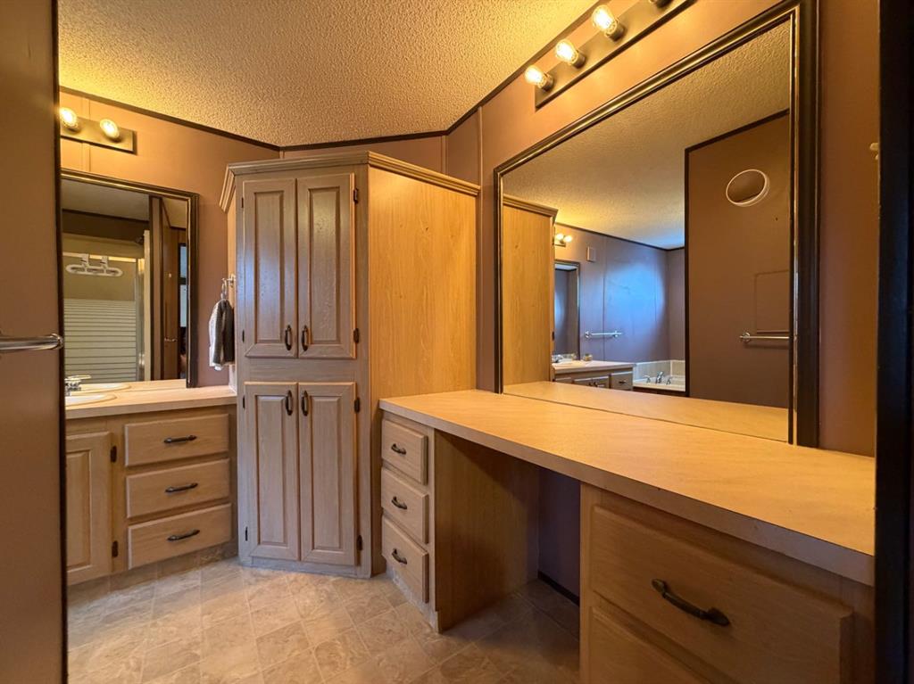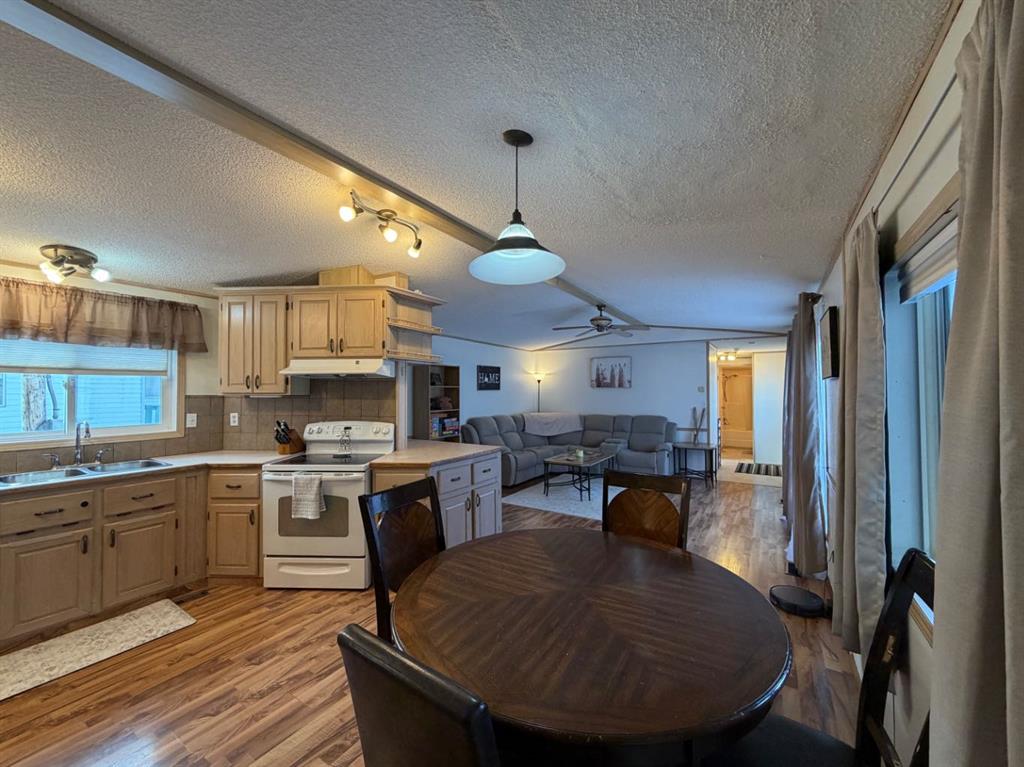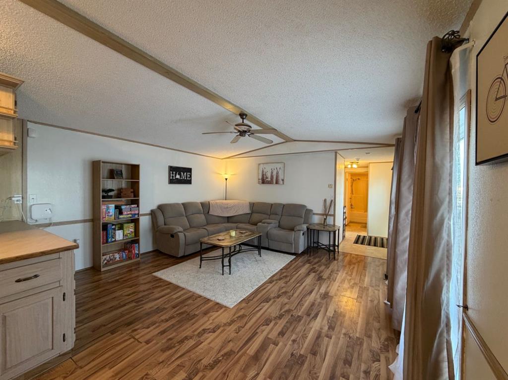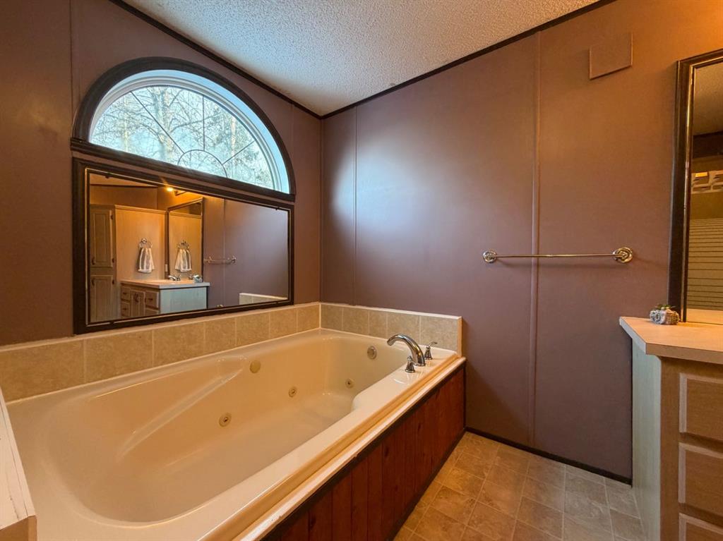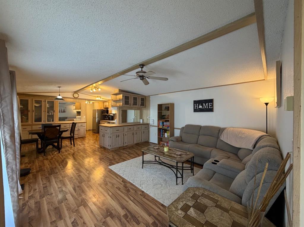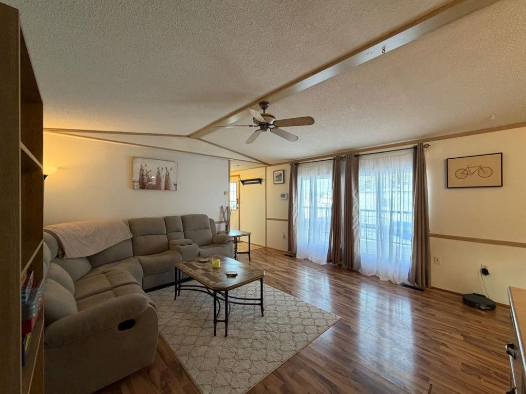 Welcome to this beautifully updated mobile home with 3 bedrooms & 2 full bathrooms, and amazing large fenced backyard backing onto a greenbelt (no neighbour behind). This bright home has an open concept living space, an abundance of cabinets and counter space in the kitchen/dining space, spacious laundry/storage room, generous primary bedroom with double closets, and a HUGE DREAM 5PC ensuite with 2 person jetted tub, with a separate shower. Additional 2 bedrooms are at the front of the home, next to the lovely 4pc main bath. Updates include: Siding, decking, deck railings, skirting, Refrigerator, Dishwasher, paint, flooring, lighting, flooring, deck/railing, gazebo secured to deck. The huge backyard is fully fenced, and offers great space for a family with kids and/or pets! Backs onto greenbelt (no neighbour behind), has huge storage shed and can store more items under the deck. Very close to schools, walking/biking trails, shopping, recreation, amenities, and more! Very affordable and priced to sell!