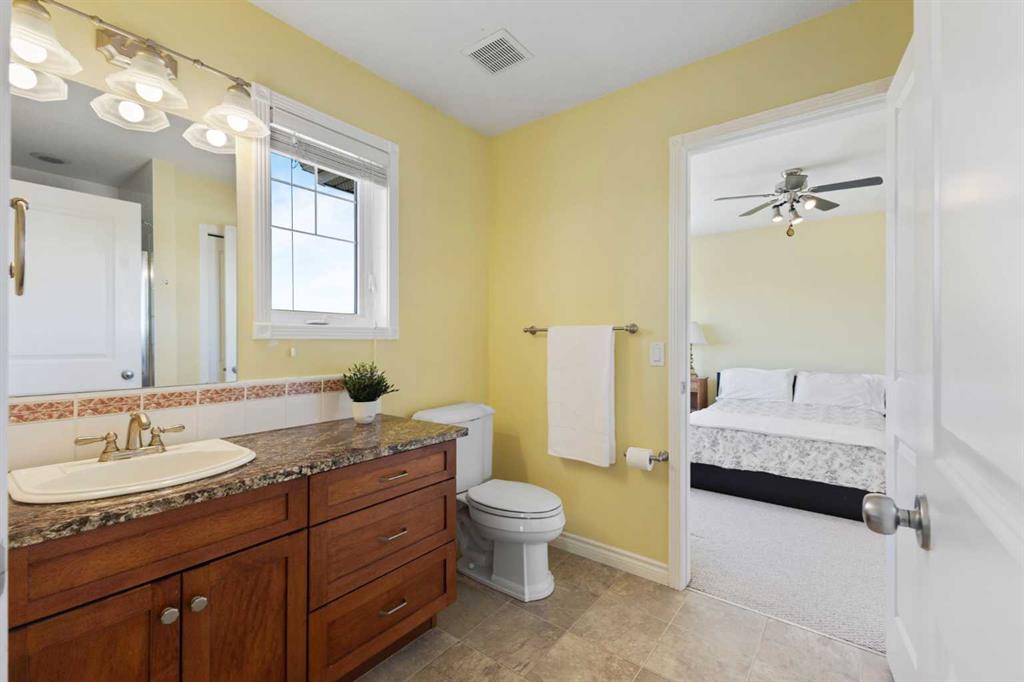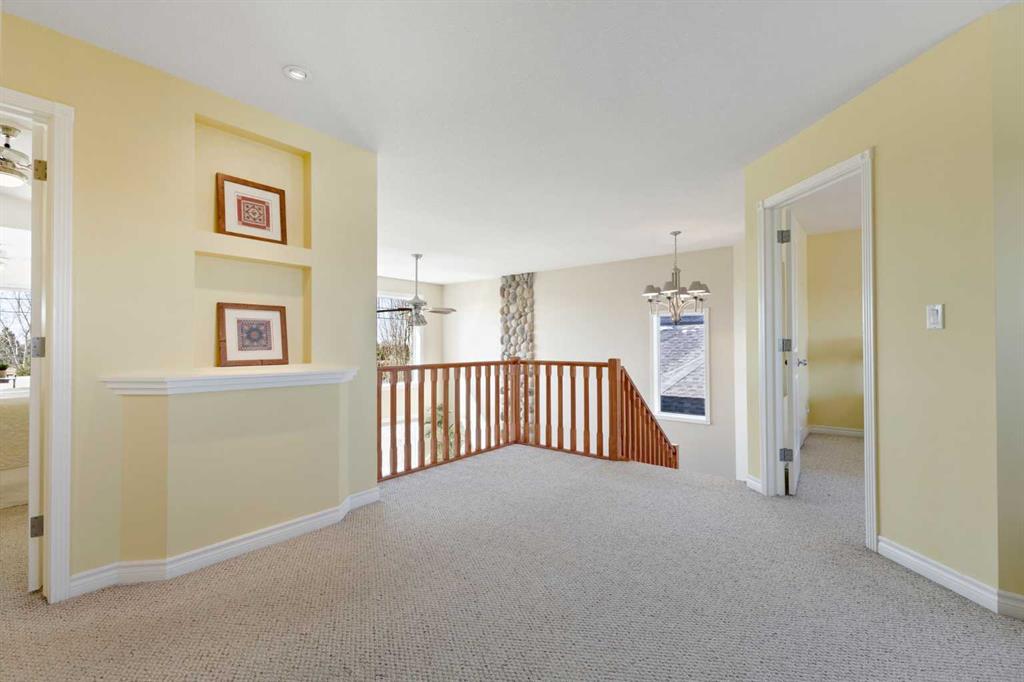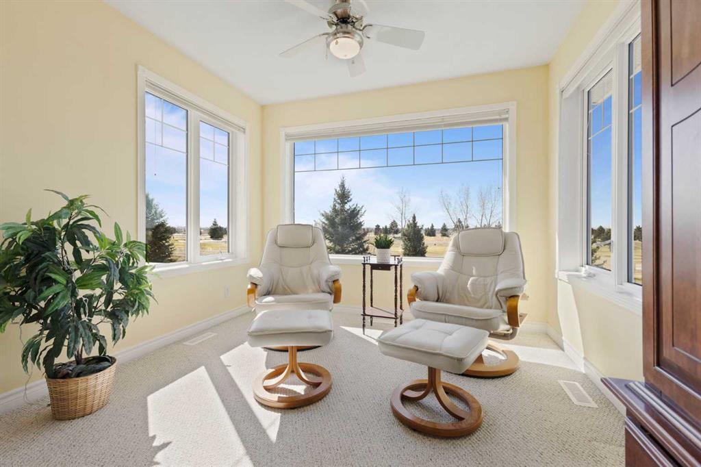 Discover refined living in this exceptional custom-built home, perfectly positioned on a sprawling lot with panoramic views of the Strathmore Golf Course. Thoughtfully designed with over 2,500 sq ft above grade and a fully developed walk-out basement, this home seamlessly blends sophistication, comfort, and practicality—ideal for both everyday living and elegant entertaining. Step inside to a breathtaking main floor where full-height vaulted ceilings and expansive windows draw in natural light and showcase the serene outdoor views. The open-concept living space is anchored by a striking rock-faced gas fireplace, while rich maple hardwood flooring and 9-foot ceilings add a touch of timeless elegance. The chef-inspired kitchen is both functional and beautiful, featuring custom maple cabinetry, a large center island with a prep sink, premium gas stove, a brand new Bosch dishwasher, and a spacious walk-in pantry. Adjacent to the kitchen, a bright breakfast nook leads to a large deck complete with a charming gazebo—an inviting space to unwind or entertain, all while overlooking the lush backyard and fairway beyond. Smart design continues throughout with main floor laundry, including a convenient laundry chute from the second floor, and abundant storage to keep your home organized with ease. Upstairs, retreat to a private primary suite boasting vaulted ceilings, a cozy sitting area with golf course views, a luxurious 5-piece ensuite, and a generous walk-in closet. Two additional bedrooms provide ample space for family or guests. The fully finished walk-out basement adds versatility with a spacious fourth bedroom, large recreation and media areas, and even more storage. Outside, the landscaped yard offers underground sprinklers, mature plantings, and plenty of space for kids, pets, or a garden oasis. To top it all off, this home is located within walking distance to the local public junior and senior high school—an unbeatable location for growing families. With brand new roof shingles and every detail meticulously maintained, this home is the total package: custom craftsmanship, an enviable setting, and thoughtful features throughout. Come experience it for yourself. Call your AWESOME REALTOR today!